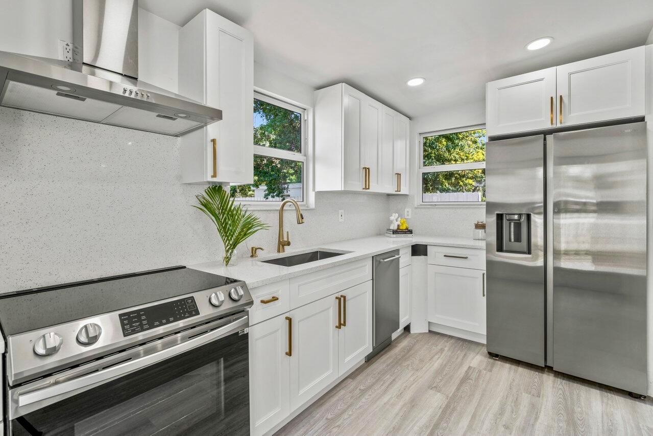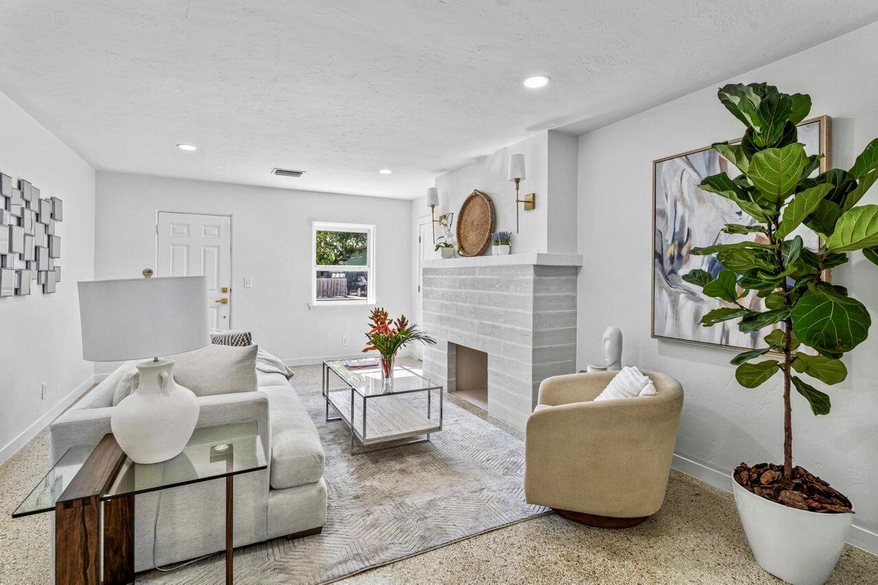 Renovated 3 beds, 1 bath with a Den/Office CBS Single Family Home in Lake Worth Beach conveniently located only minutes from the beach and 6 blocks from Lake Ave.Featuring a modern new kitchen with stainless steel appliances, brand new bathroom, original terrazzo flooring, decorative fireplace, new HVAC, updated electrical panel, electrical meter and riser.The home sits on a 50′ x 135′ lot with spacious open backyard with alley access and enough room for pool. Must see! Move-in ready!