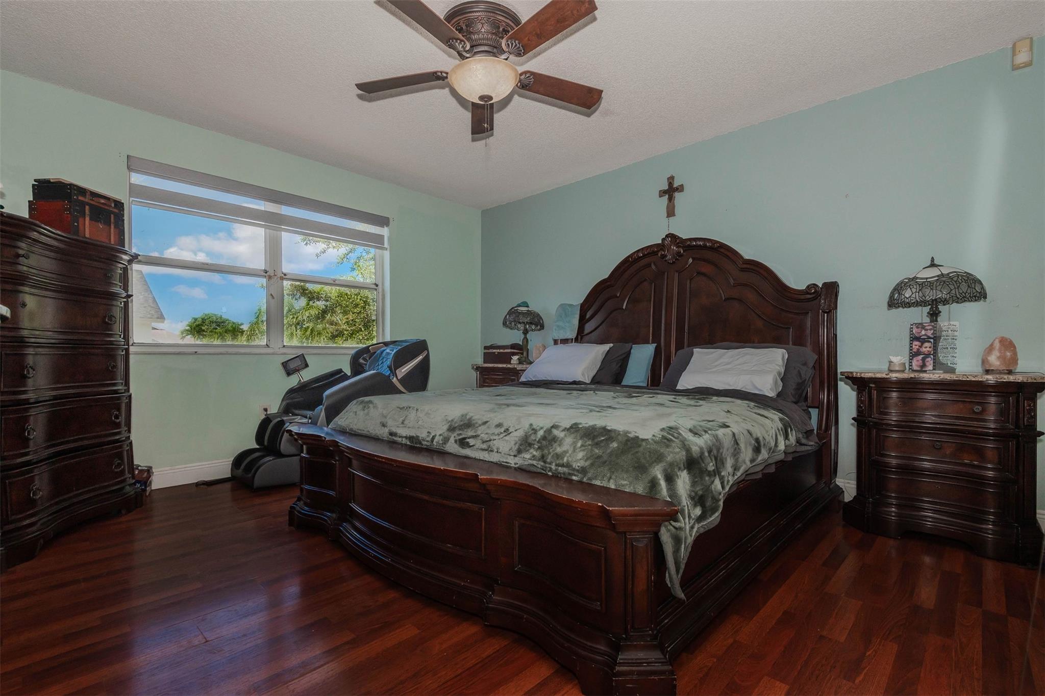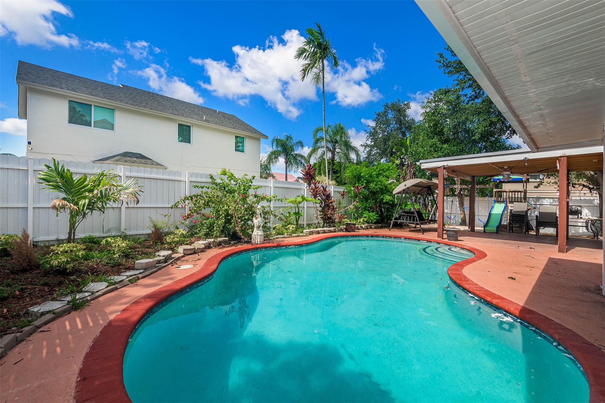 Situated on a large corner lot, this wonderful pool home boasts 4 bedrooms and 3.5 bathrooms. There is a full bathroom in the garage, which makes it easily converted into an additional bedroom. The kitchen showcases stainless steel appliances and granite countertops and offers a pleasant view of the backyard. In addition to the in-ground pool, the backyard features a covered patio perfect for entertaining. The side yard has ample space for parking a boat or RV.