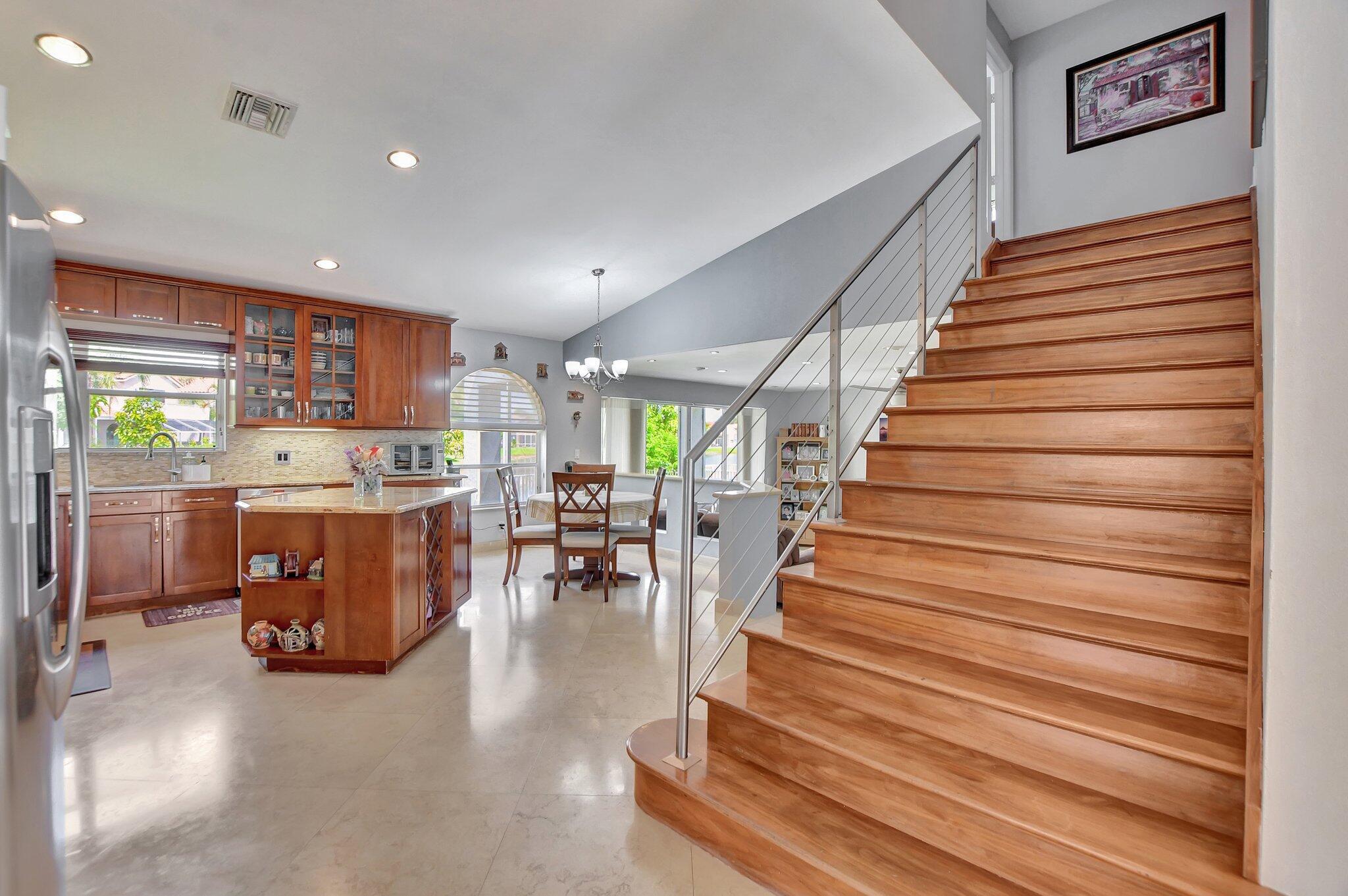 Welcome to your dream home in the prestigious community of Boca Isles North. This stunning two-story residence boasts travertine flooring throughout the first floor, 4 spacious bedrooms, 3 bathrooms, and a versatile den/office. The master suite is a true retreat, featuring an expansive walk-in closet and a serene ambiance. The gourmet kitchen is equipped with custom cabinets, gleaming granite countertops, and stainless steel appliances. Enjoy breathtaking lake views from the comfort of your home, with ample space to add a pool. The community amenities include a clubhouse, tennis courts, a sparkling pool, pickleball, and more.
