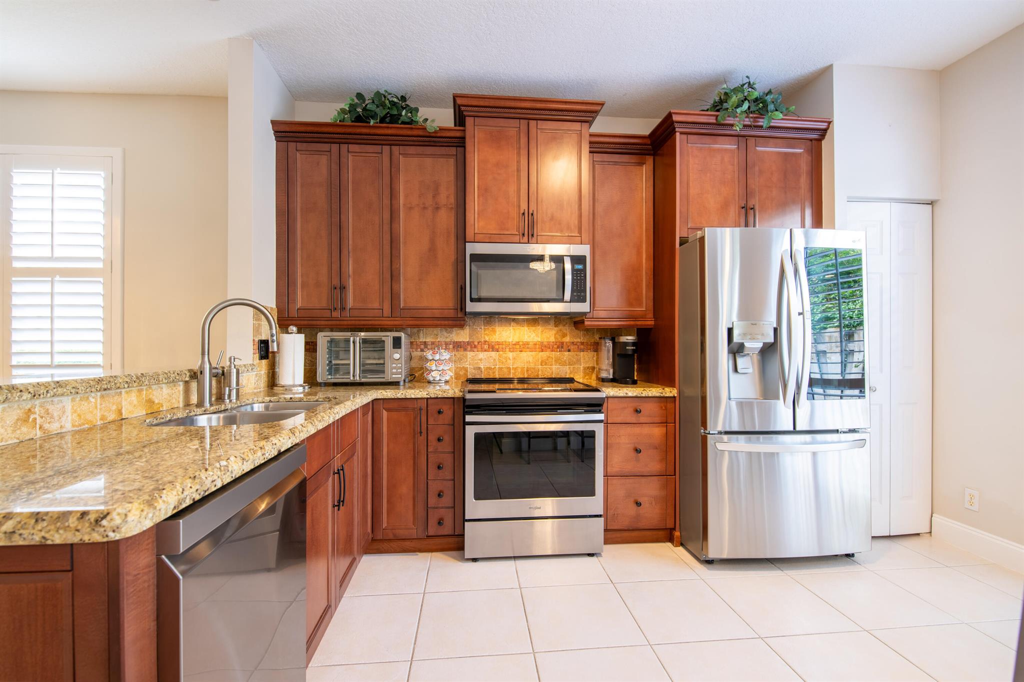 Come see this beautiful turnkey renovated home desirably located in Wellington Lakes. This very clean home has been updated and freshly painted. Enjoy a free-flowing open floor plan. A great place to entertain with a beautifully appointed kitchen with sleek cabinetry, granite counter top and new stainless steel appliances! Windows have custom Plantation Shutters and Accordion Hurricane Shutters. Brand New Screen Enclosed Patio. You will love the sense of space with generous size bedrooms and Large master walk in closet. The home has an alarm system. Low HOA includes Community Pool and playground. Minutes to the Showgrounds and Polo Fields and Wellington Green Mall.