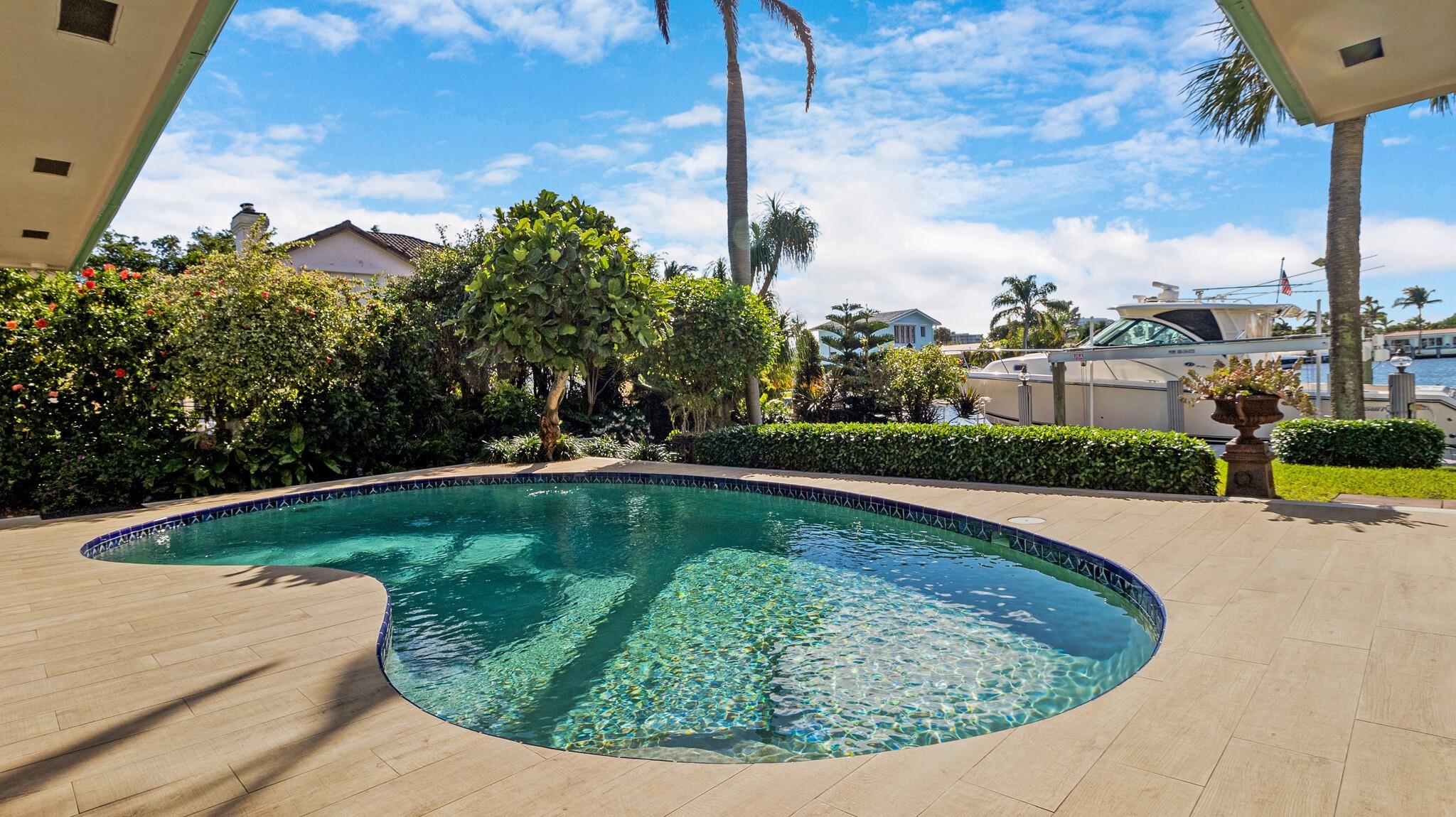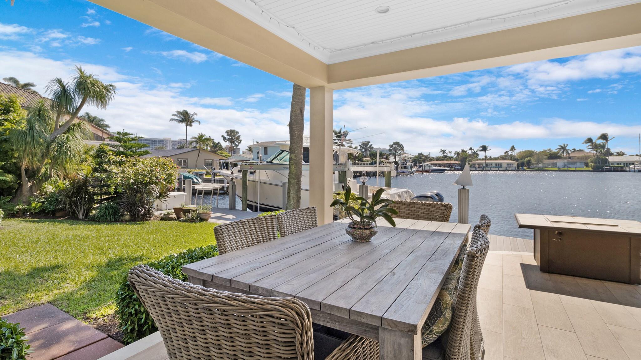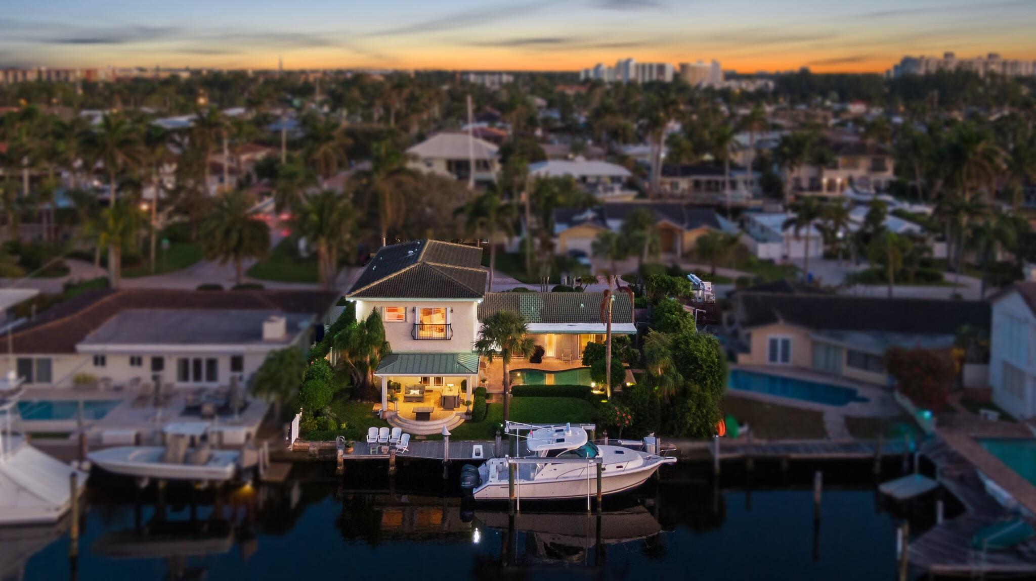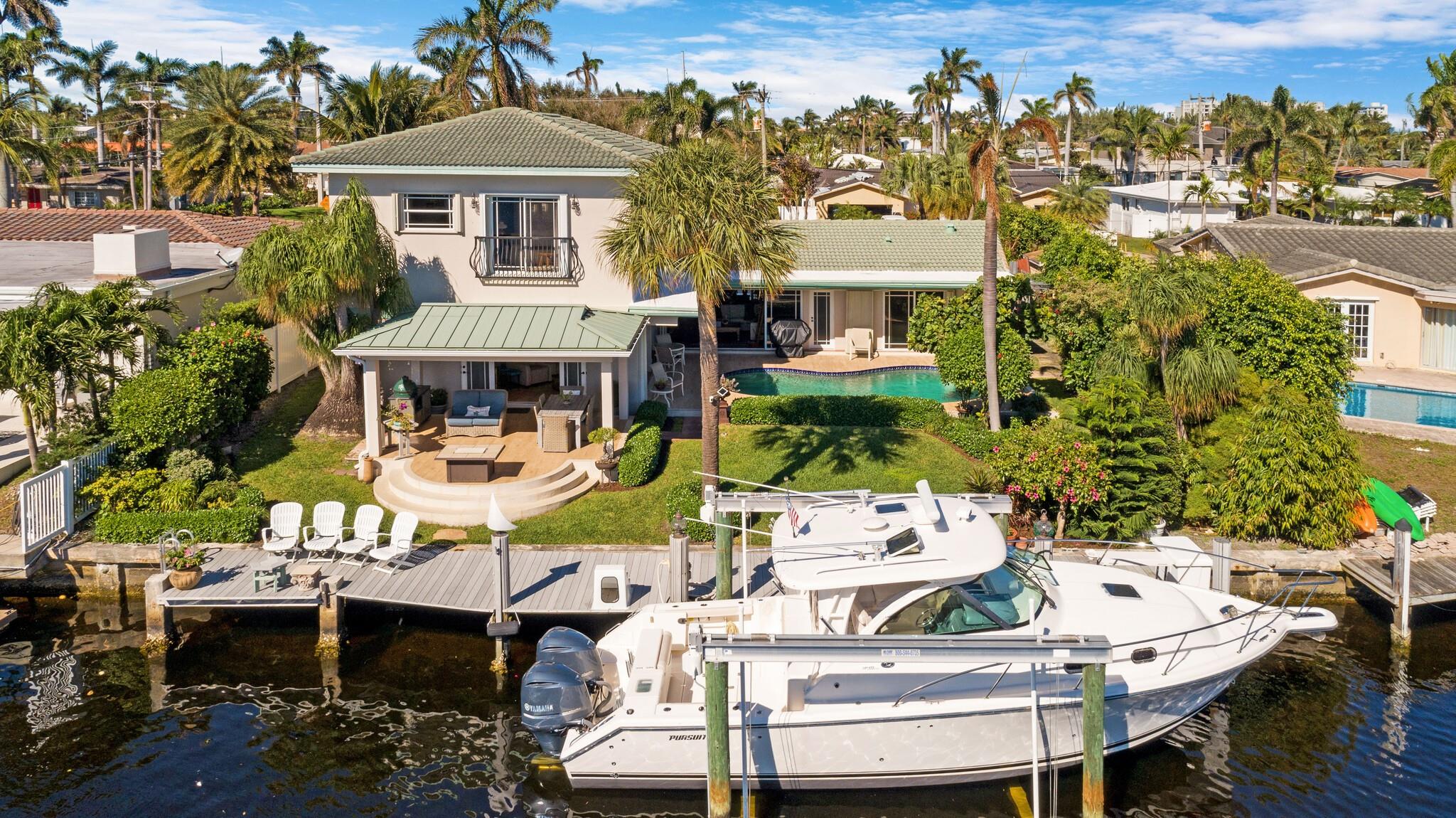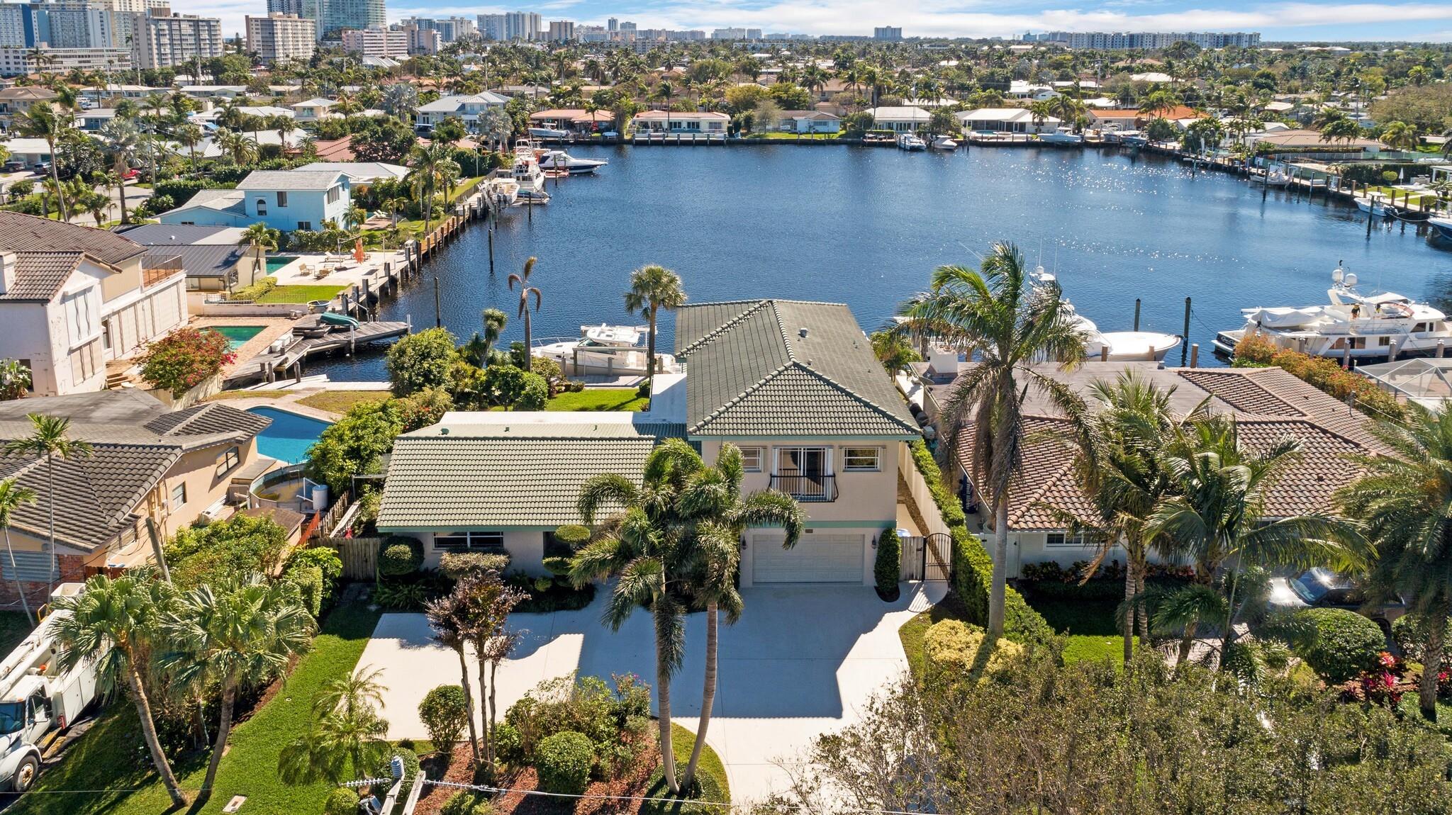 Welcome to wide WATERFRONT views in HARBOR VILAGE, East Pompano. Located on Lake Capri is a 4-bed, 4-full bath home of nearly 3200 sqft, featuring 2 XL master suites and seamless inside to outside living – ready for a new buyer to call this sanctuary home. UPDATED WHOLE HOME ELECTRICAL & PLUMBING. With 80′ on deep water, enjoy views from your thoughtfully landscaped backyard, pool, or inside from almost any room. W/ southern exposure, you can enjoy cooler summers & a great breeze. 2 car garage & room to park an RV. Just 5 minutes to Pompano Pier, it’s central to everything. Only 2 minutes to the Intracoastal with NO FIXED BRIDGES! Boasting a 24K lb boat lift, head to Hillsboro Inlet for quick ocean access. NO HOA. Quick access to major airports. AC 2019 & 2022. WH 2020. Welcome Home!