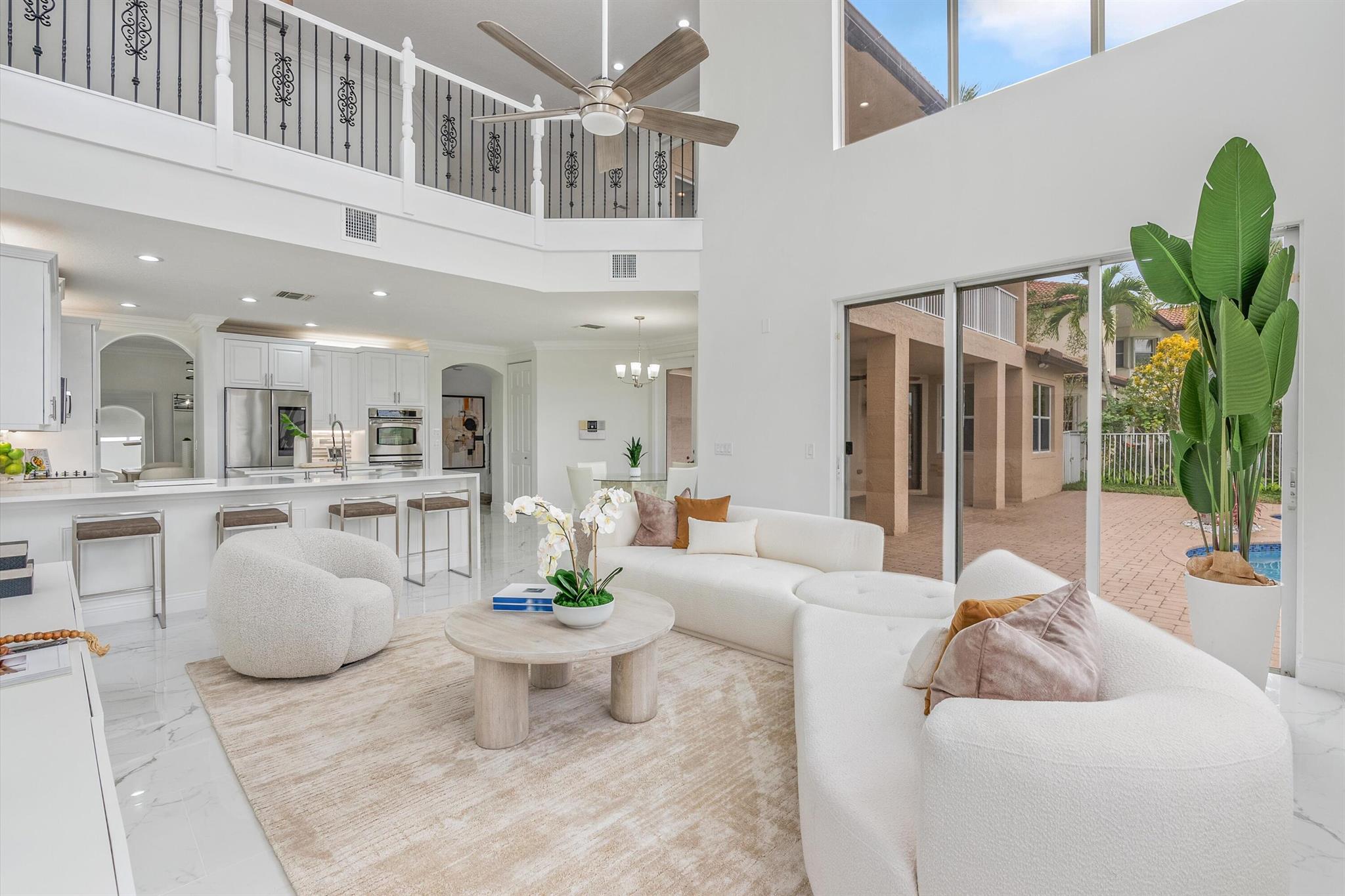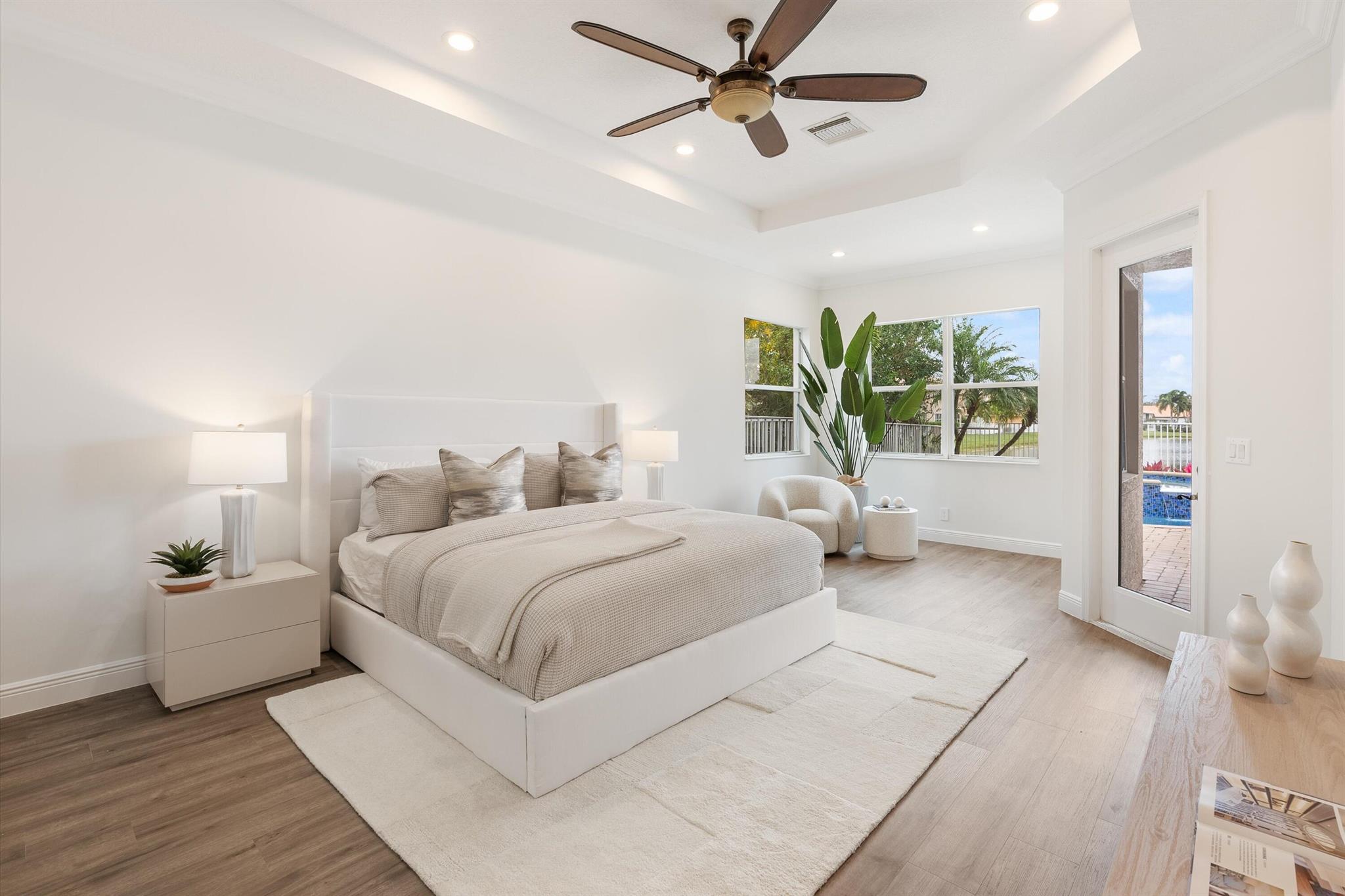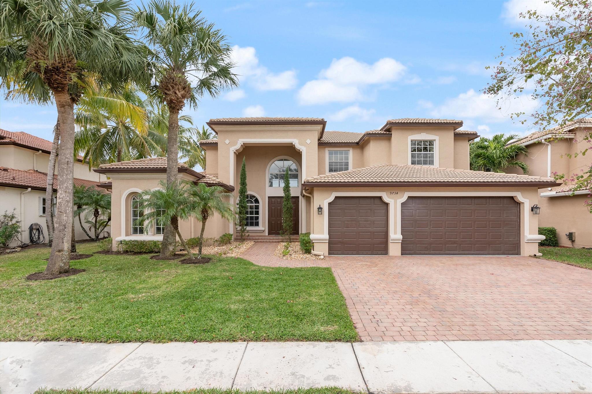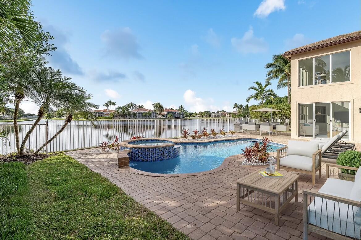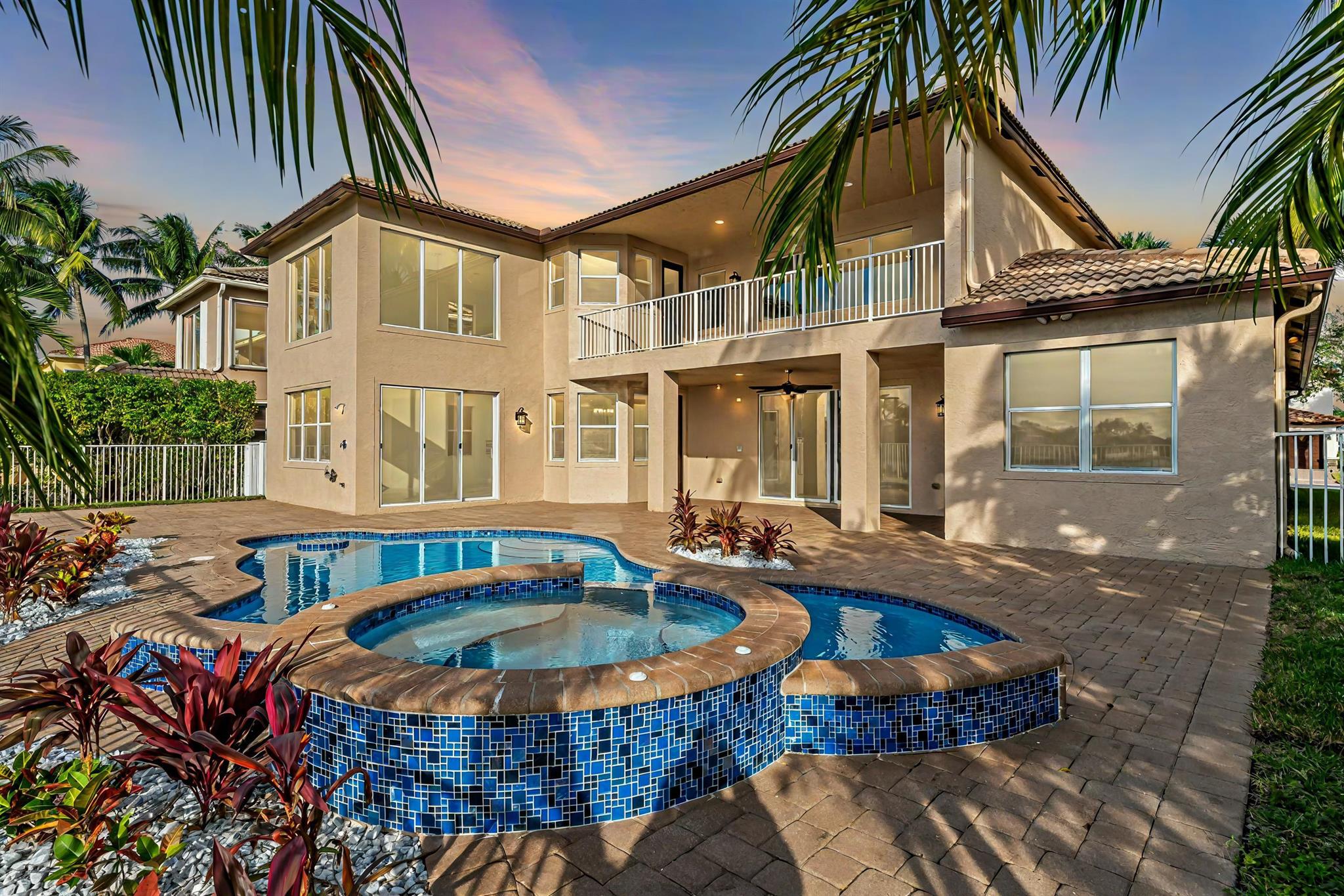 Discover luxury living in this beautiful, estate model home located in the sought-after gated community of ‘Isola Bella Estates’. This exquisite property features 5 bedrooms, 4 full baths, additional office space, and a total square footage of 5,351 sqft. This property has recently undergone extensive renovations with modern, high-end finishes throughout the home. Boasting serene lake views, salt-water chlorinated private pool & hot tub, rare oversized balcony and 20ft+ ceilings, this home offers both elegance and comfort. Enjoy the custom fireplace and luxurious kitchen with no detail spared. The first-floor primary suite has direct access to the large pool deck, providing direct lake views. You will also find updated and spacious secondary bedrooms on upper and lower levels.