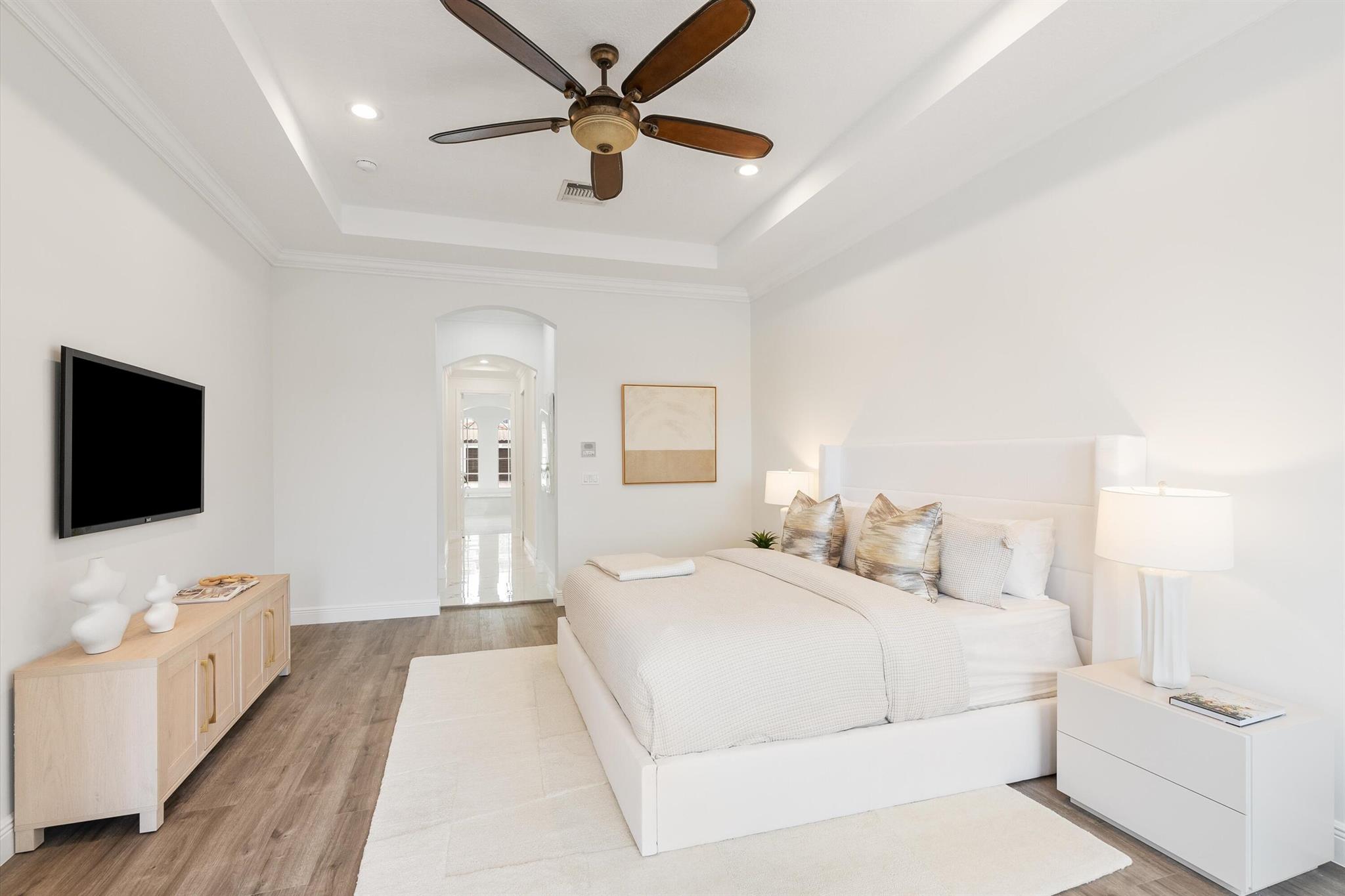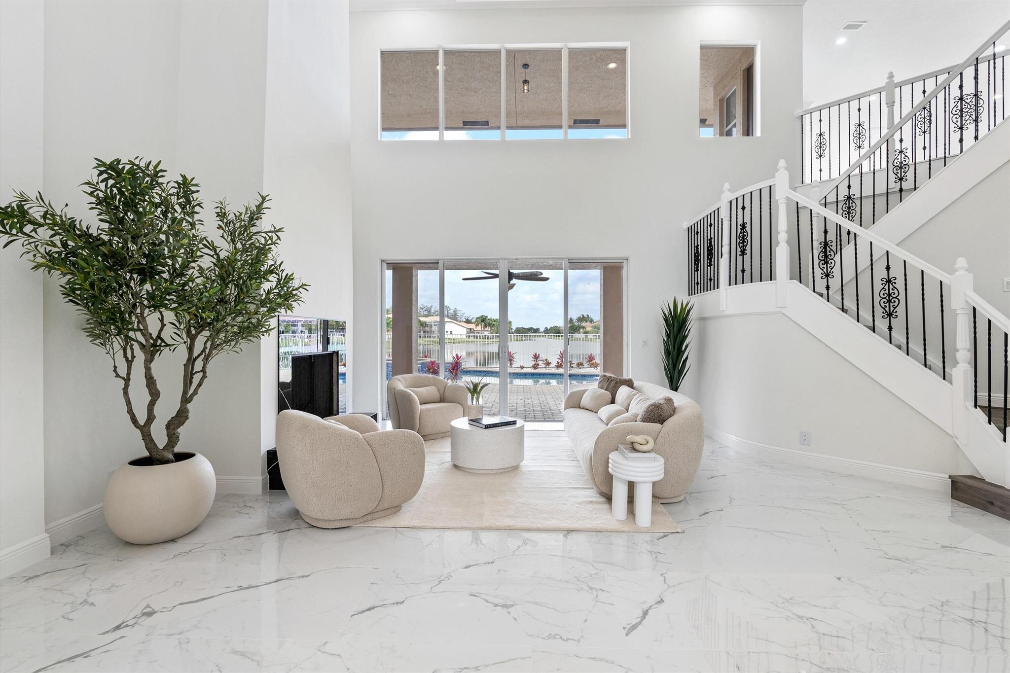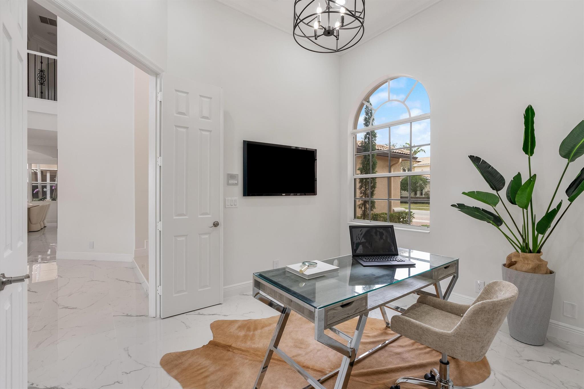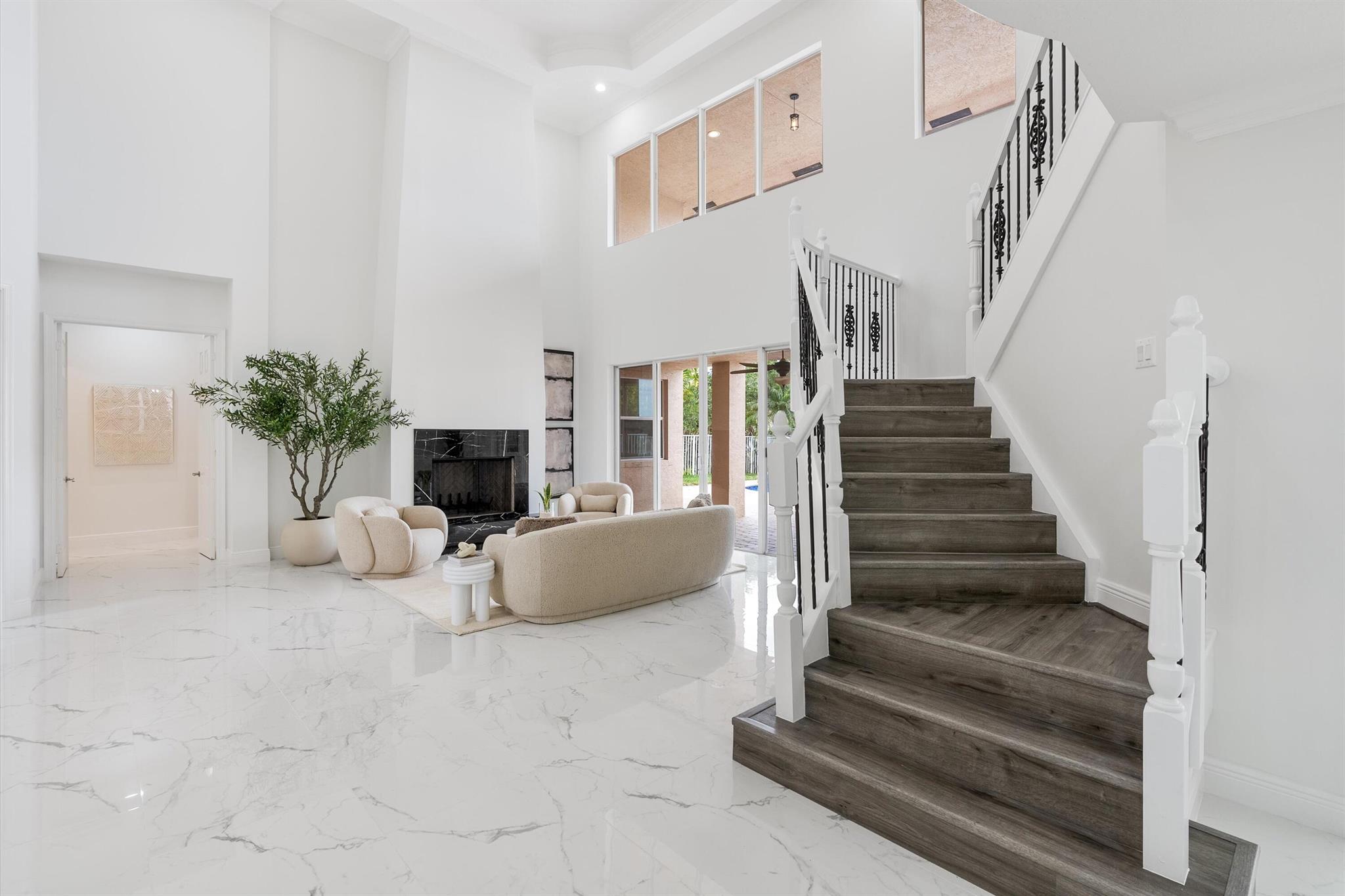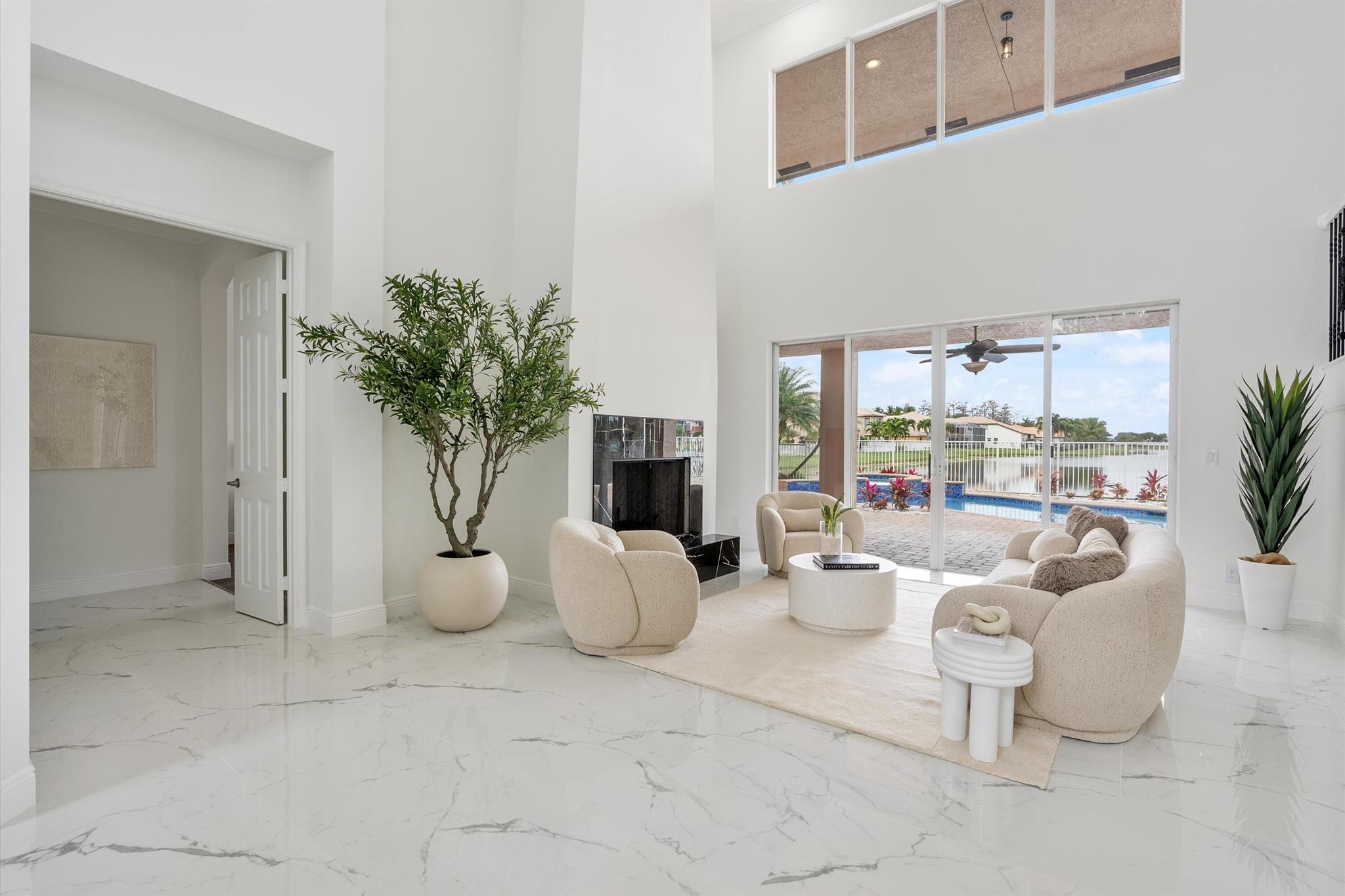 Discover luxury living in this beautiful, estate model home located in the sought-after gated community of ‘Isola Bella Estates’. This exquisite property features 5 bedrooms, 4 full baths, additional office space, and a total square footage of 5,351 sqft. This property has recently undergone extensive renovations with modern, high-end finishes throughout the home. Boasting serene lake views, salt-water chlorinated private pool & hot tub, rare oversized balcony and 20ft+ ceilings, this home offers both elegance and comfort. Enjoy the custom fireplace and luxurious kitchen with no detail spared. The first-floor primary suite has direct access to the large pool deck, providing direct lake views. You will also find updated and spacious secondary bedrooms on upper and lower levels.