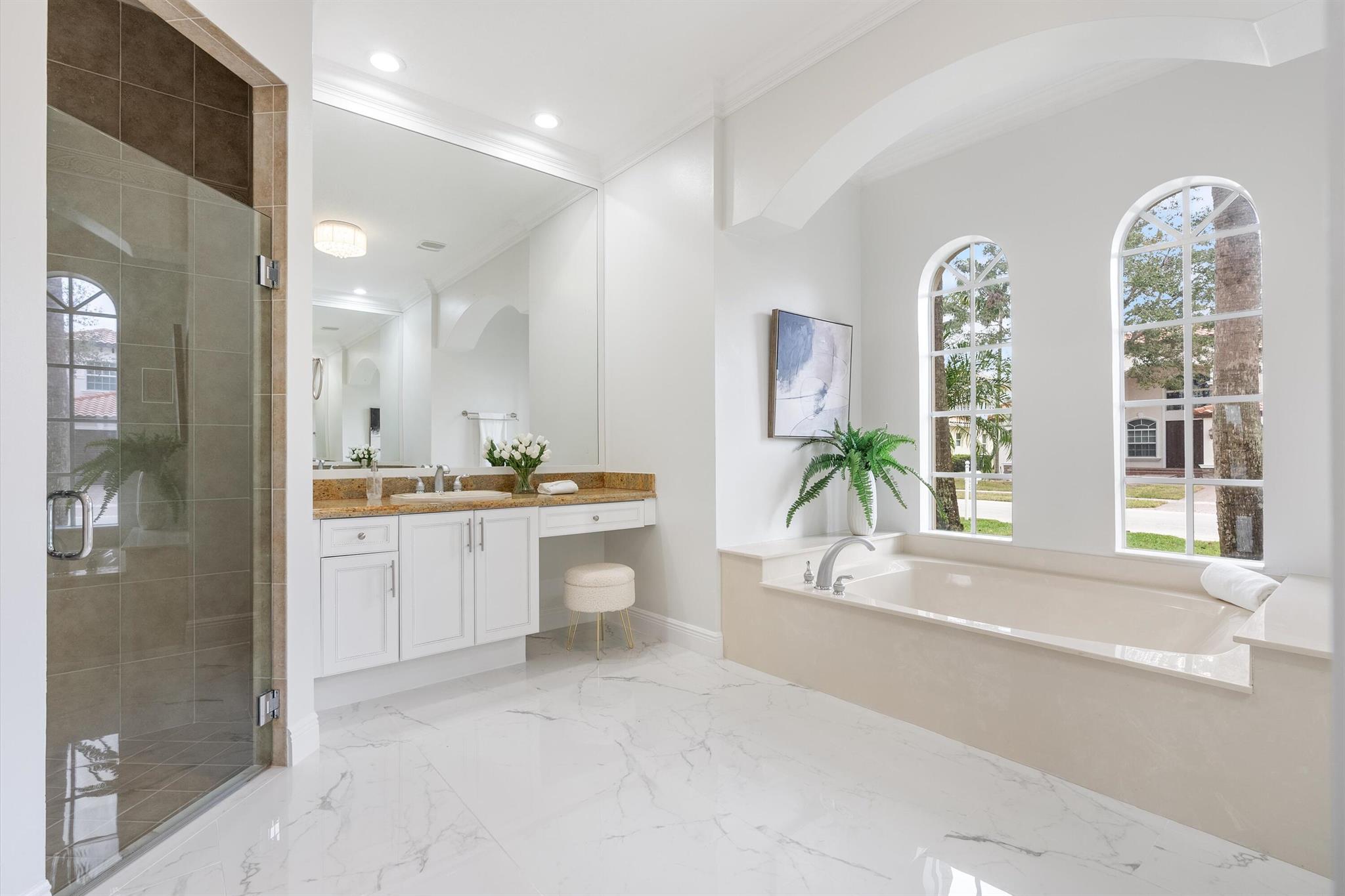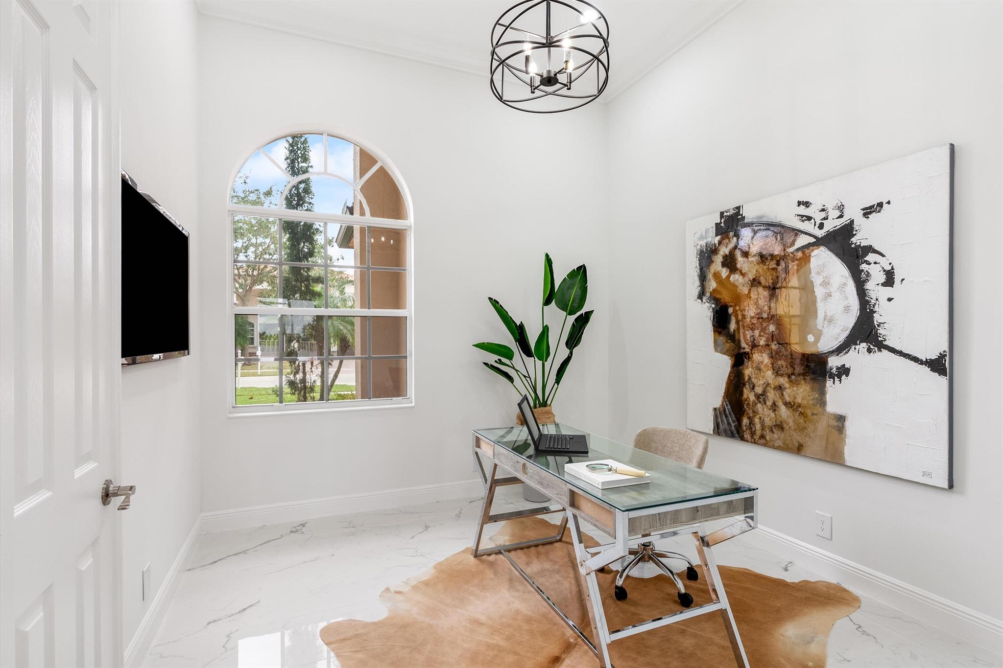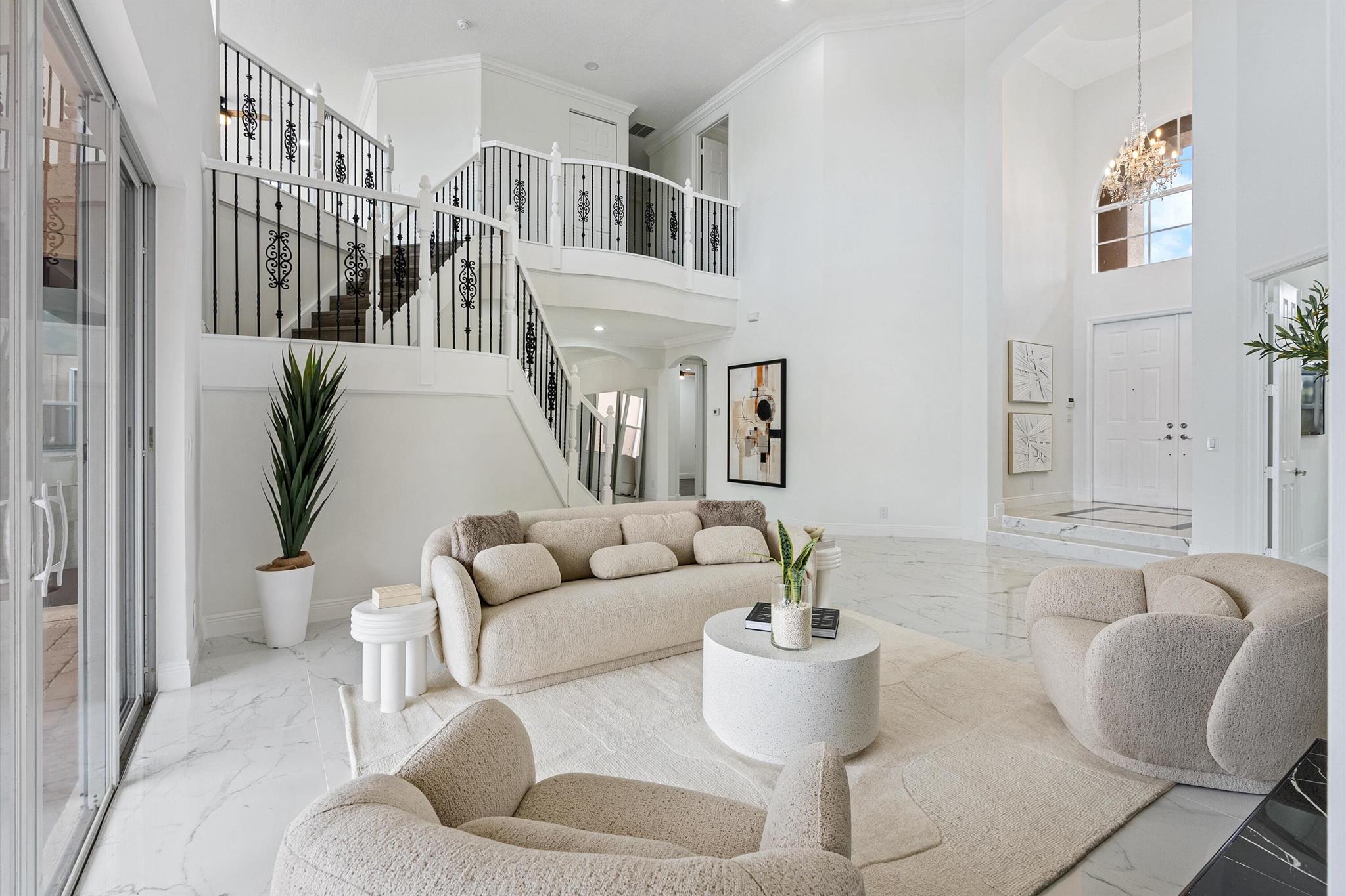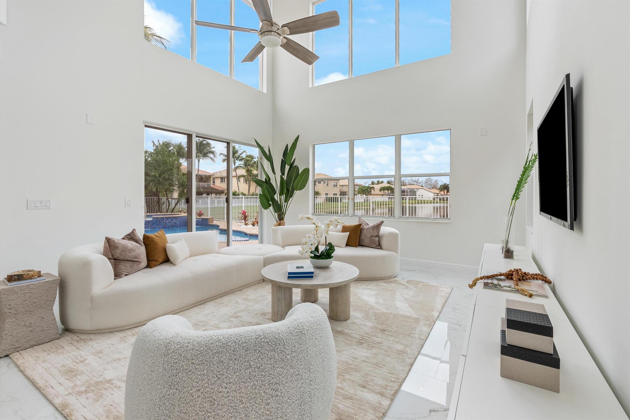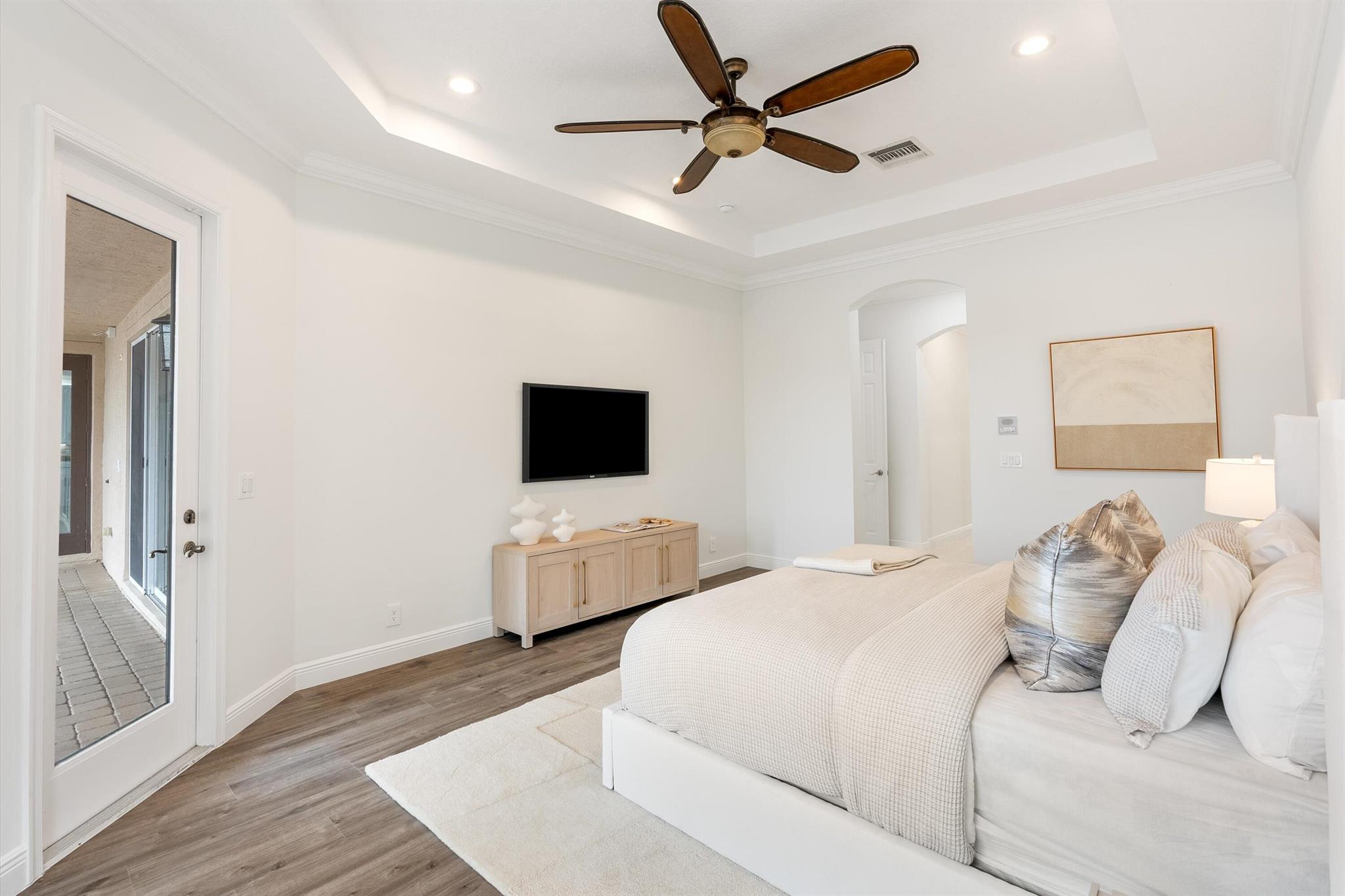 Discover luxury living in this beautiful, estate model home located in the sought-after gated community of ‘Isola Bella Estates’. This exquisite property features 5 bedrooms, 4 full baths, additional office space, and a total square footage of 5,351 sqft. This property has recently undergone extensive renovations with modern, high-end finishes throughout the home. Boasting serene lake views, salt-water chlorinated private pool & hot tub, rare oversized balcony and 20ft+ ceilings, this home offers both elegance and comfort. Enjoy the custom fireplace and luxurious kitchen with no detail spared. The first-floor primary suite has direct access to the large pool deck, providing direct lake views. You will also find updated and spacious secondary bedrooms on upper and lower levels.
