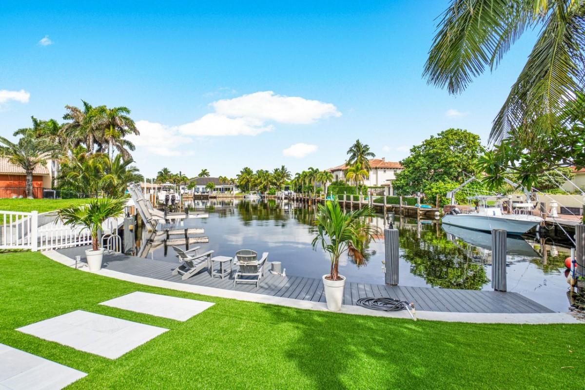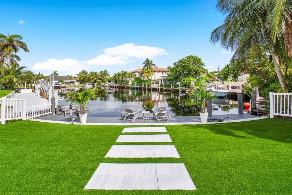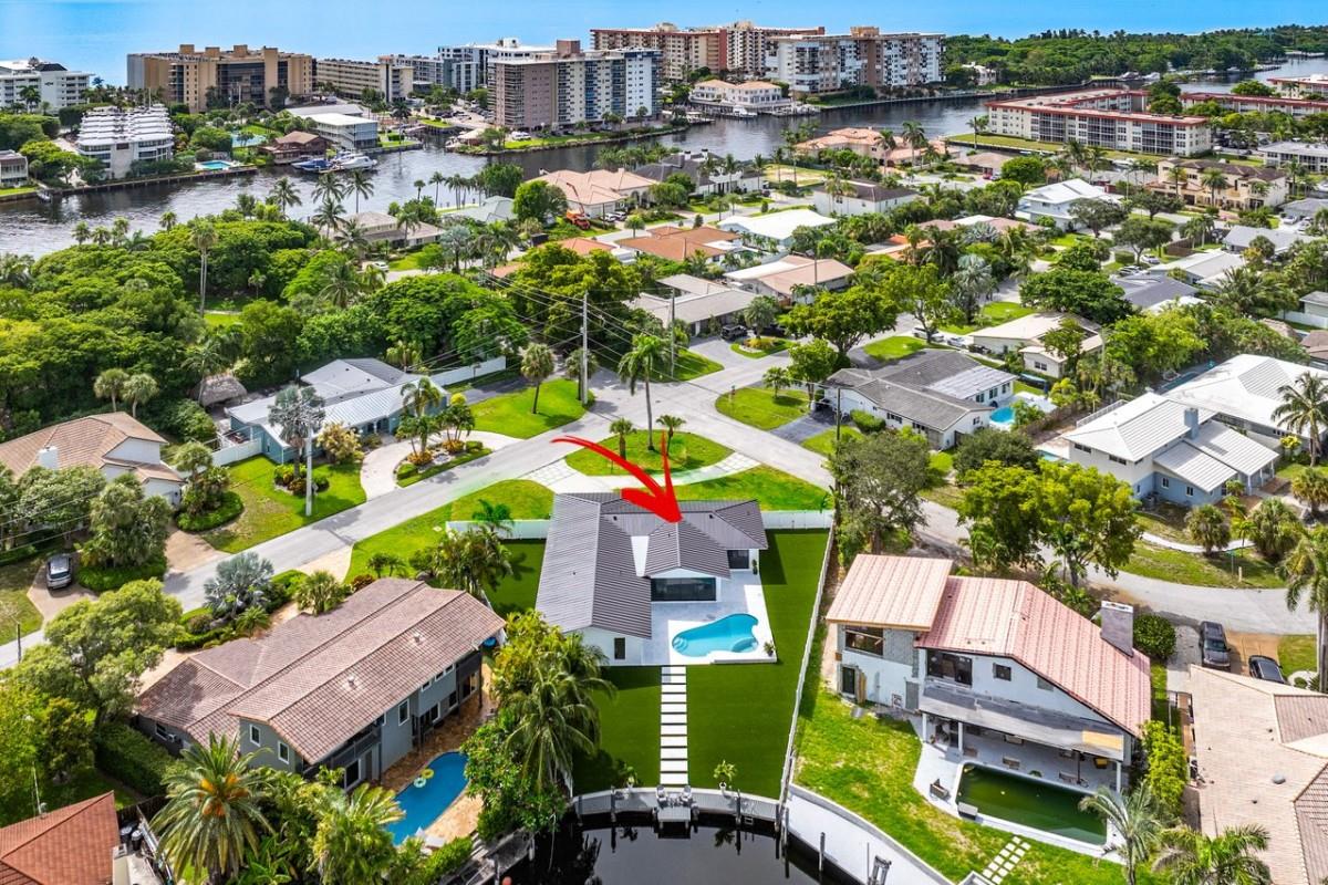 One Of A Kind Opportunity to Own This 3 bedroom/3 bathroom Turn key Home That Has Been Completely Remodeled On One Of The Largest Lots In Lighthouse Point 14,274 sq Ft With No Fixed Bridges. Split Floor Plan, Italian Porcelain Tile Floors Throughout, Bright Open Kitchen with European Flat cabinets, Quartz countertops, Brand New appliances. Huge Master Suite With 2 walk in closets, Large Freestanding Tub, and Curbless Walk in shower. Ensuite with Walk in closet & Curbless shower. Brand New Metal Roof. New AC’s. Brand New impact windows & Doors with Huge Pocket Sliders Leading Out to The Resort Style Backyard that includes A fully Remodeled Heated Pool/spa With a New Sandblasted Marble Deck. Over 5000 sq ft of New Artificial turf, 49ft composite boat-dock with water, power and lights.