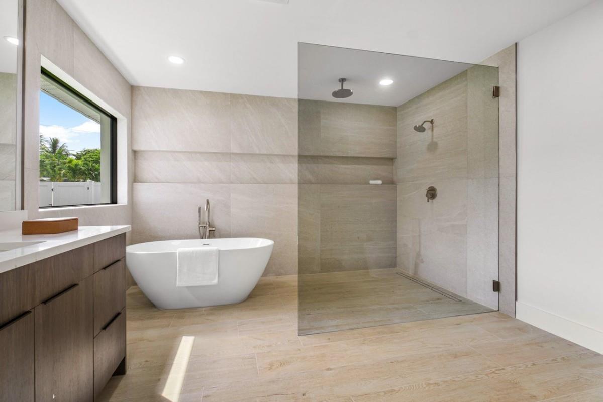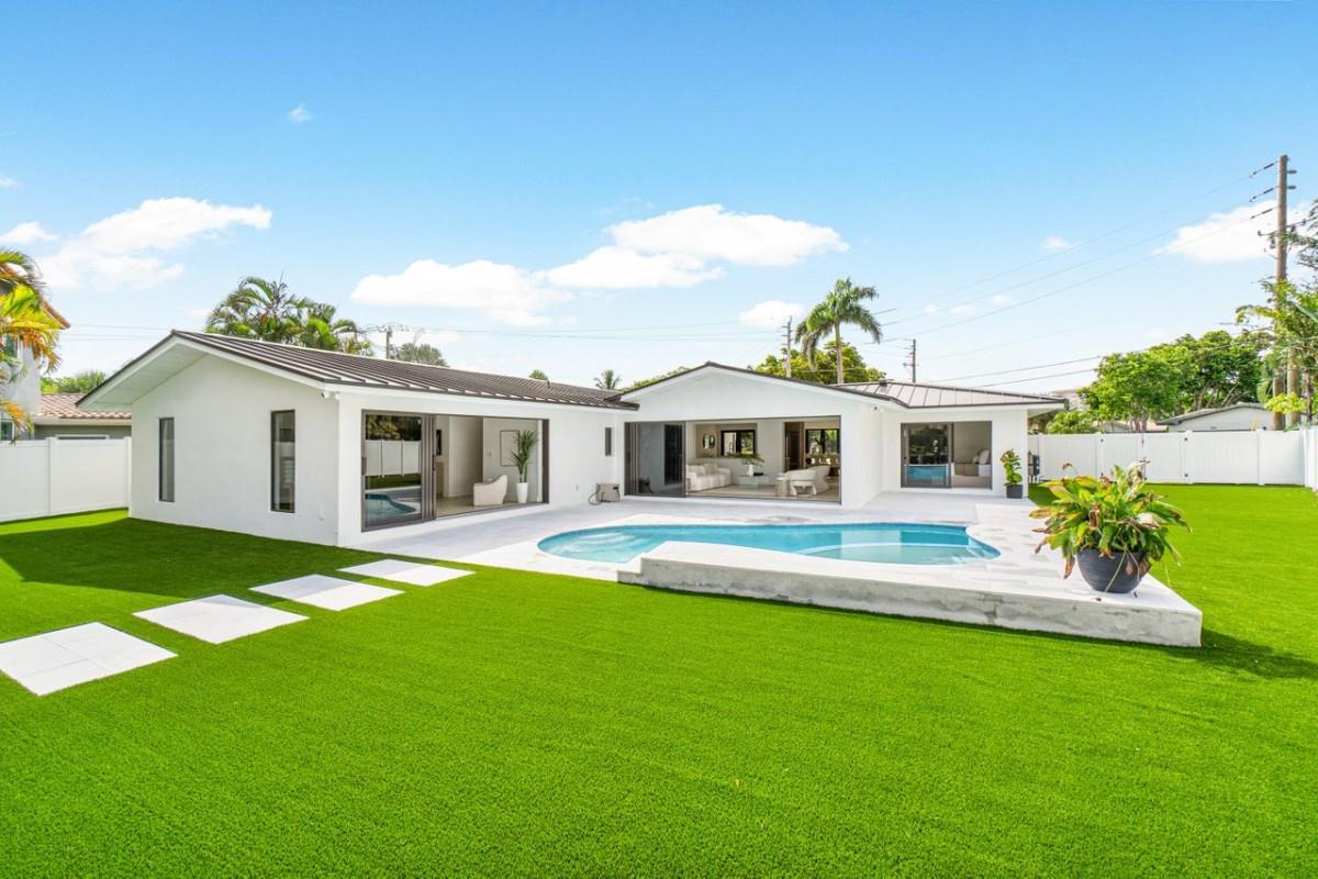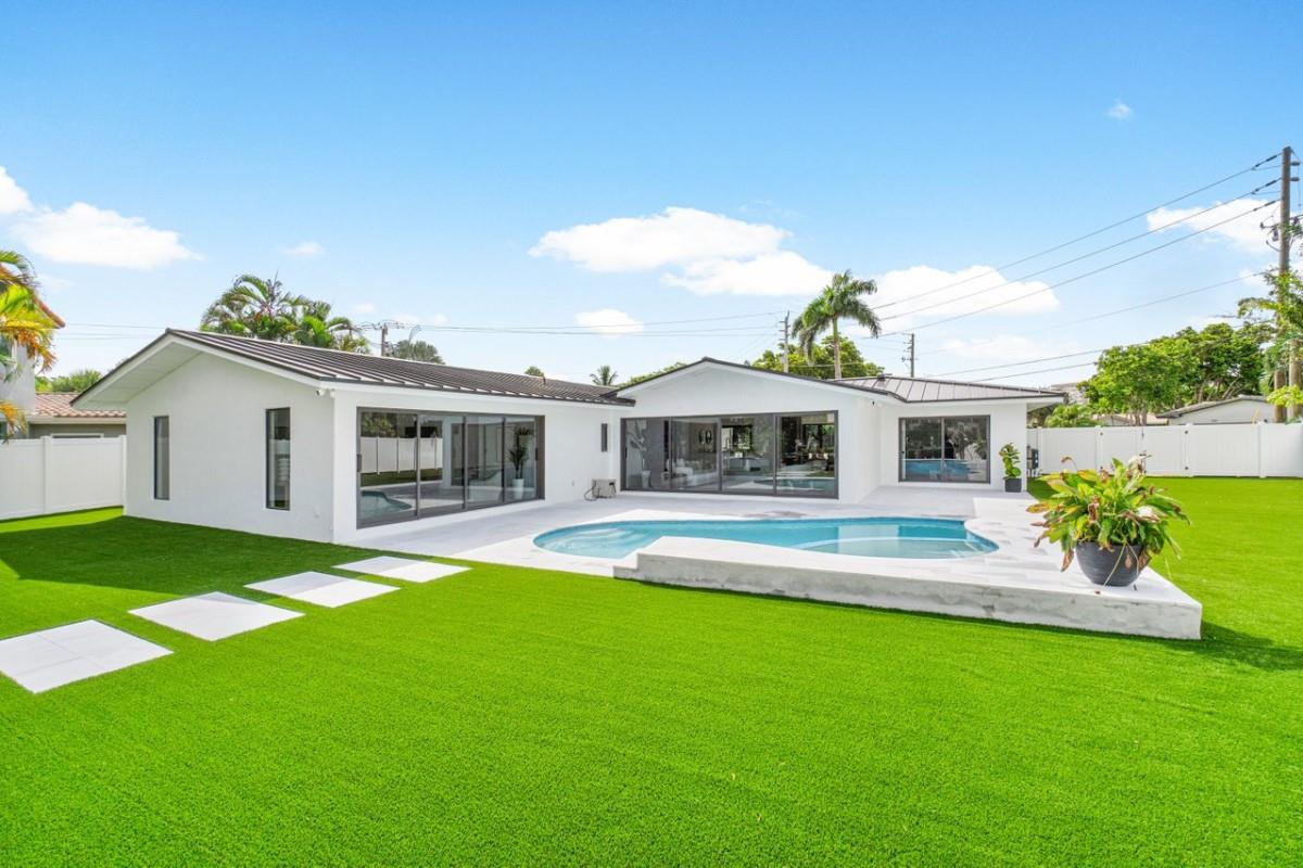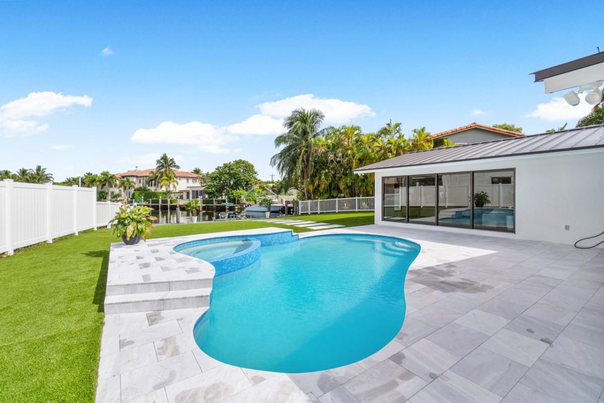 One Of A Kind Opportunity to Own This 3 bedroom/3 bathroom Turn key Home That Has Been Completely Remodeled On One Of The Largest Lots In Lighthouse Point 14,274 sq Ft With No Fixed Bridges. Split Floor Plan, Italian Porcelain Tile Floors Throughout, Bright Open Kitchen with European Flat cabinets, Quartz countertops, Brand New appliances. Huge Master Suite With 2 walk in closets, Large Freestanding Tub, and Curbless Walk in shower. Ensuite with Walk in closet & Curbless shower. Brand New Metal Roof. New AC’s. Brand New impact windows & Doors with Huge Pocket Sliders Leading Out to The Resort Style Backyard that includes A fully Remodeled Heated Pool/spa With a New Sandblasted Marble Deck. Over 5000 sq ft of New Artificial turf, 49ft composite boat-dock with water, power and lights.