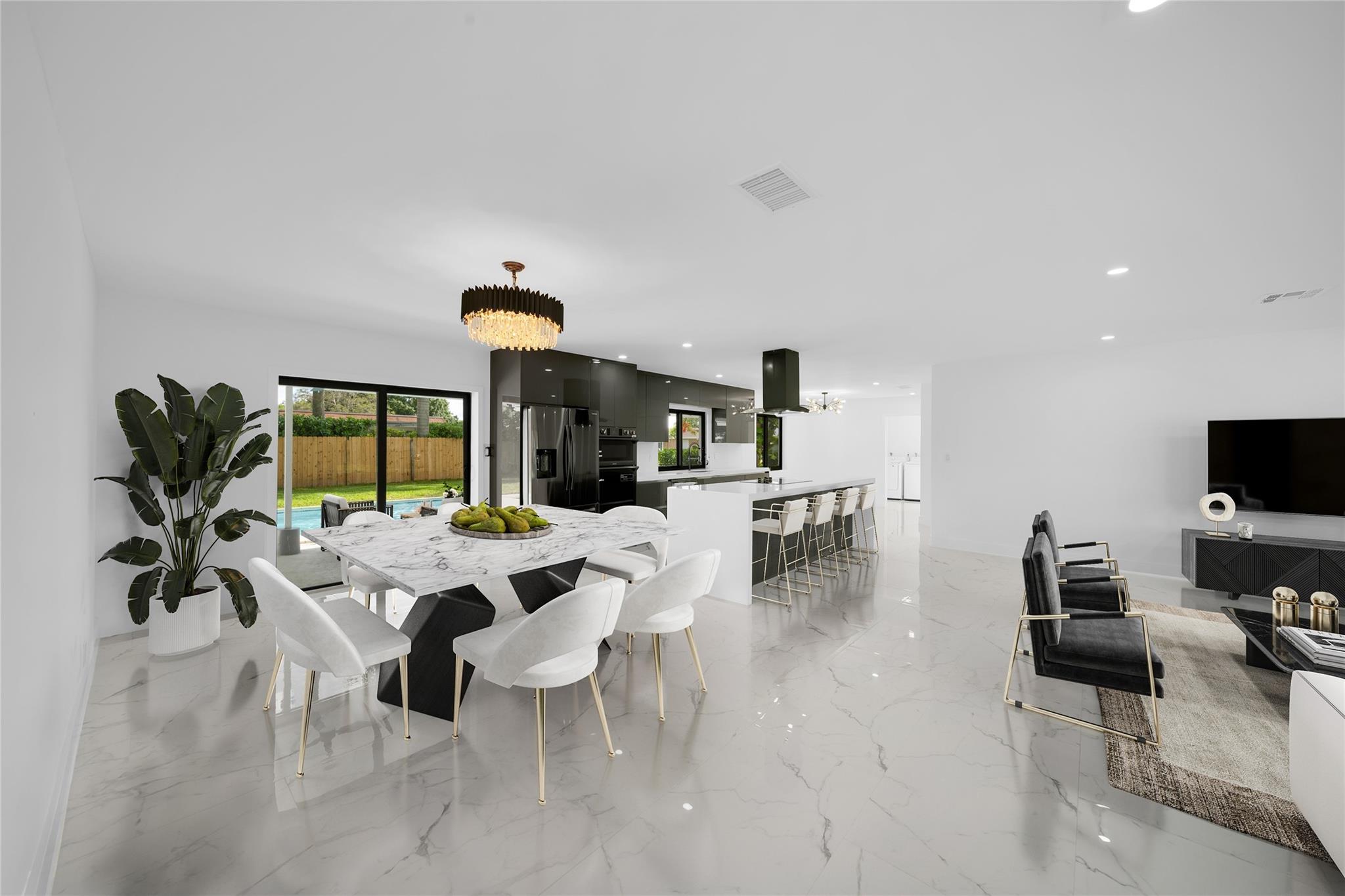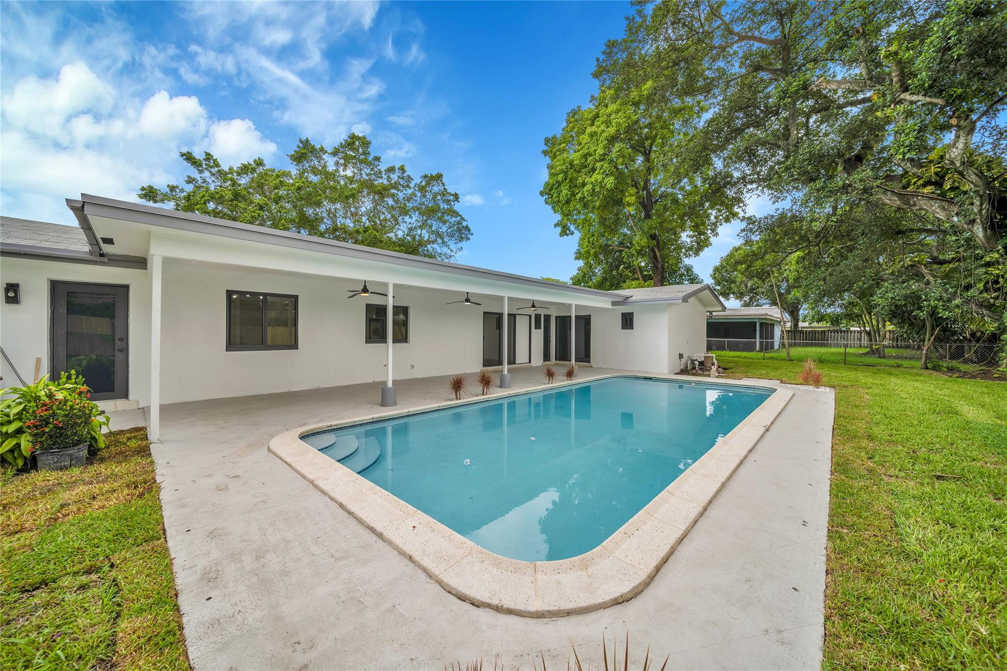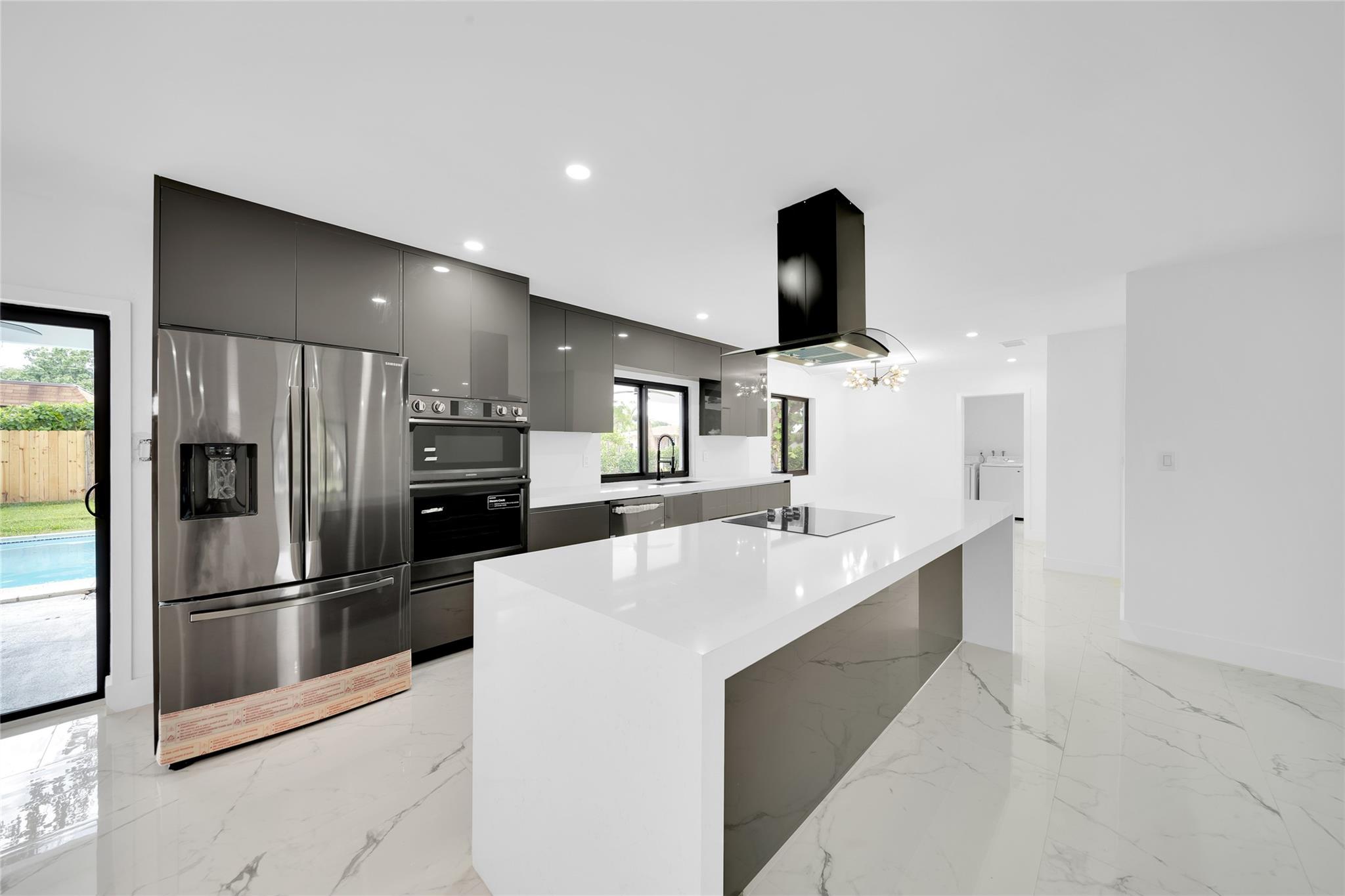 Step into modern living with this stunning 4b/2b home, offering 2,454 sq. ft. of luxury on a spacious 13,469 sq. ft. corner lot. Entertain effortlessly with a 32×14 ft. pool in the backyard. The updated kitchen features floor-to-ceiling Lava Grey cabinets, a 9 ft. long waterfall island with cooktop and Ceiling hood, elegant porcelain floors in the living areas, & luxury vinyl flooring in the bedrooms. New Appliances, including a refrigerator, microwave and oven combo, cooktop, dishwasher, and washer/dryer, complement the sleek design. Both bathrooms showcase updates with brushed gold trim in the primary bathroom and modern brushed chrome in the guest bathroom. The home also has a 2018 roof, new AC, & high-impact windows. Seller is open to contributing towards the buyer’s points buy-down.