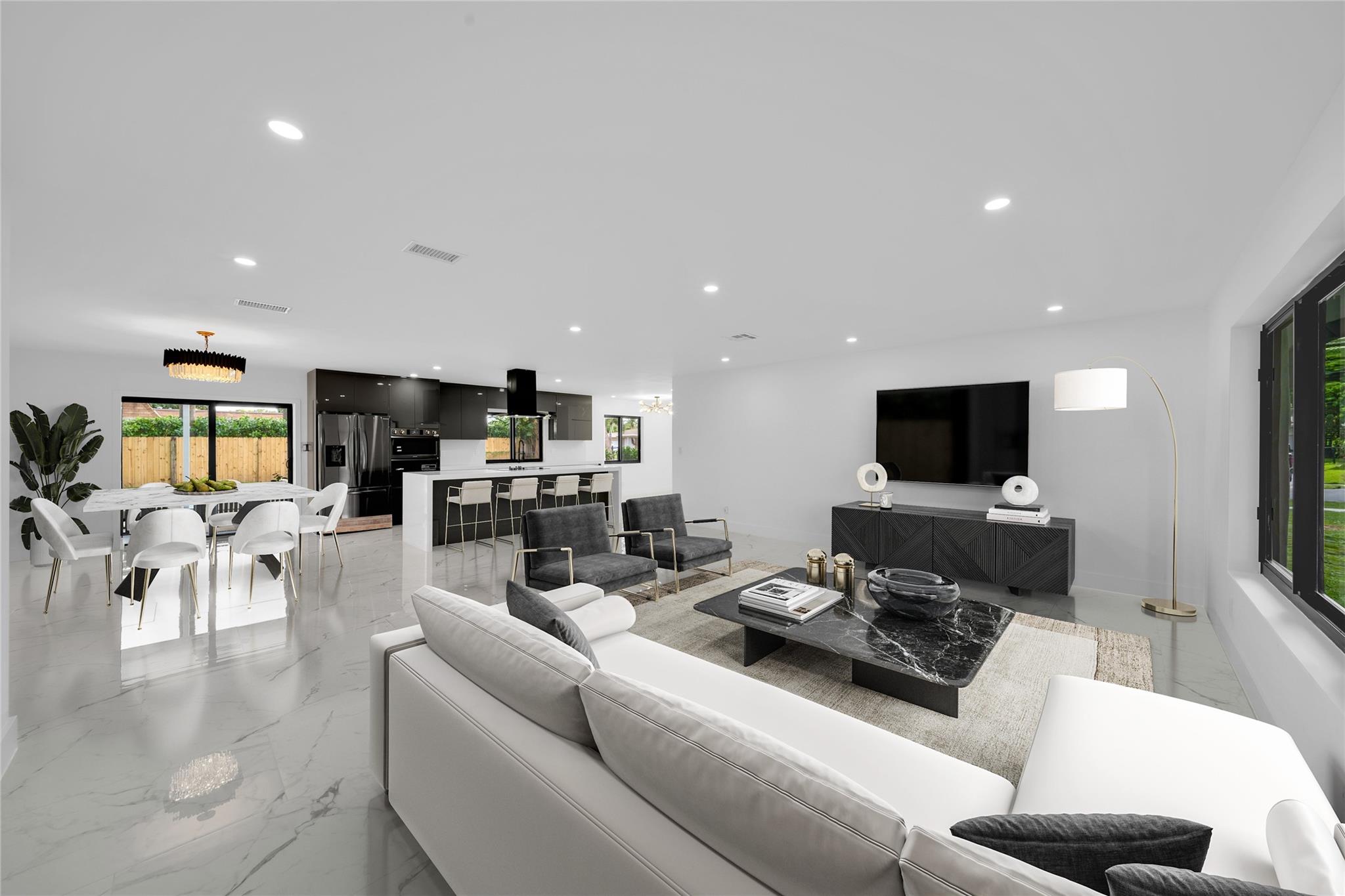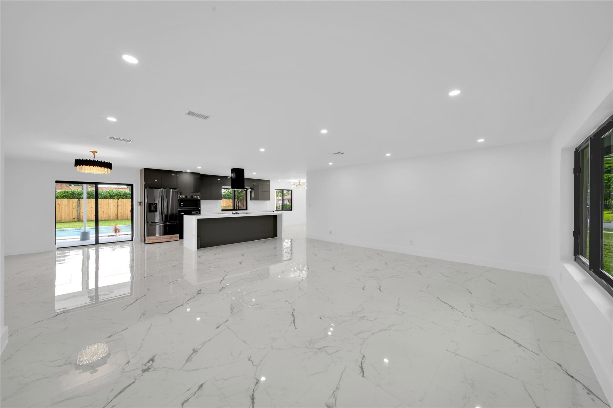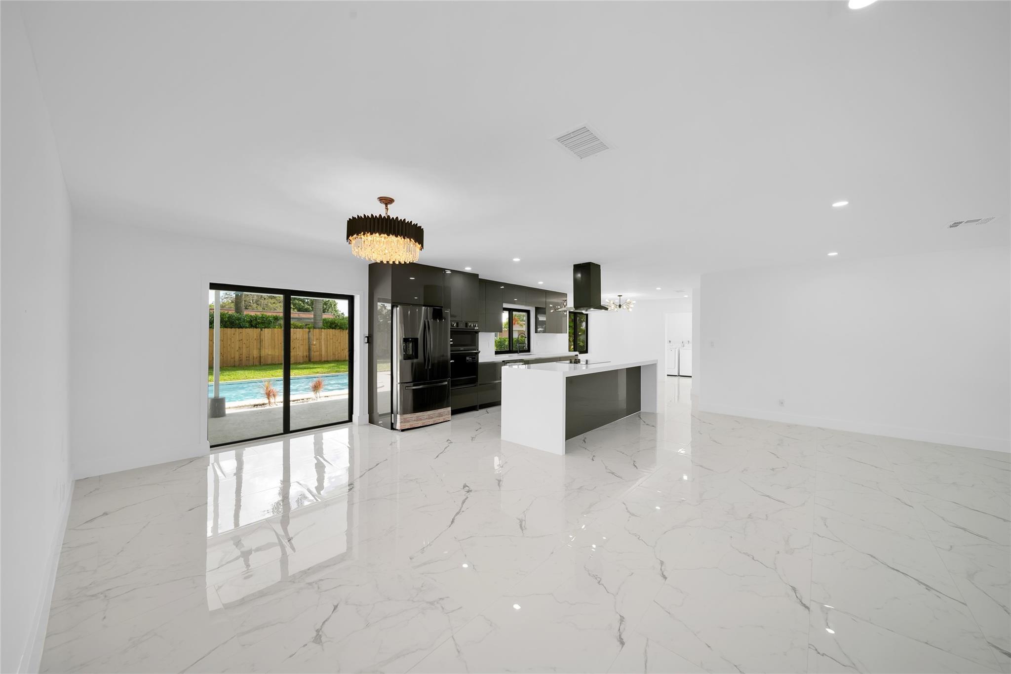 Step into modern living with this stunning 4b/2b home, offering 2,454 sq. ft. of luxury on a spacious 13,469 sq. ft. corner lot. Entertain effortlessly with a 32×14 ft. pool in the backyard. The updated kitchen features floor-to-ceiling Lava Grey cabinets, a 9 ft. long waterfall island with cooktop and Ceiling hood, elegant porcelain floors in the living areas, & luxury vinyl flooring in the bedrooms. New Appliances, including a refrigerator, microwave and oven combo, cooktop, dishwasher, and washer/dryer, complement the sleek design. Both bathrooms showcase updates with brushed gold trim in the primary bathroom and modern brushed chrome in the guest bathroom. The home also has a 2018 roof, new AC, & high-impact windows. Seller is open to contributing towards the buyer’s points buy-down.