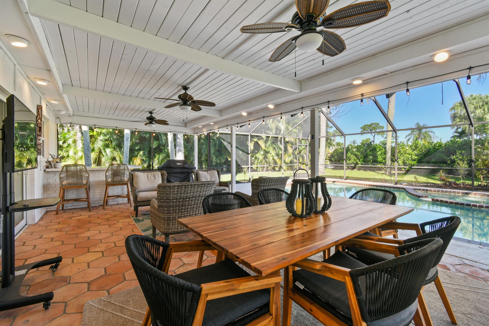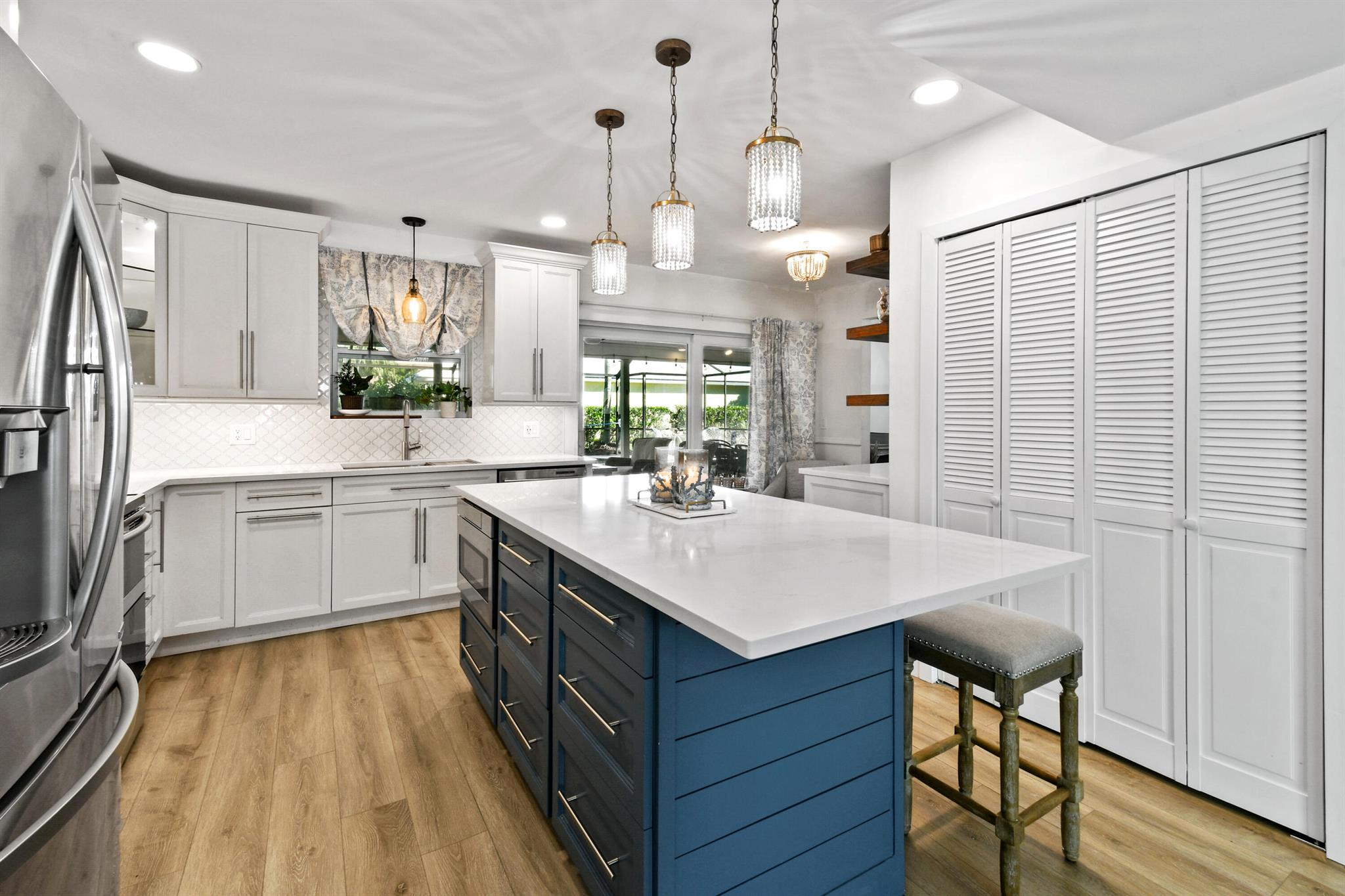 Welcome to this gorgeous, newly transformed home situated on a quiet, beautiful lot in the private community of Eastpointe Country Club. This two story home features four oversized bedrooms, which are perfect for a growing family. The new primary bath boasts a claw-foot tub and a marble vanity to add to the spa like experience.The brand new kitchen, with a large center island, is fully loaded with tons of storage.Imagine cooking for the family while looking out at the newly redone pool, through the kitchen window.The large backyard is perfect for entertaining family and hosting guests.The beautiful built-ins provide ample storage space and a touch of sophistication.This home has a new roof and full impact protection.