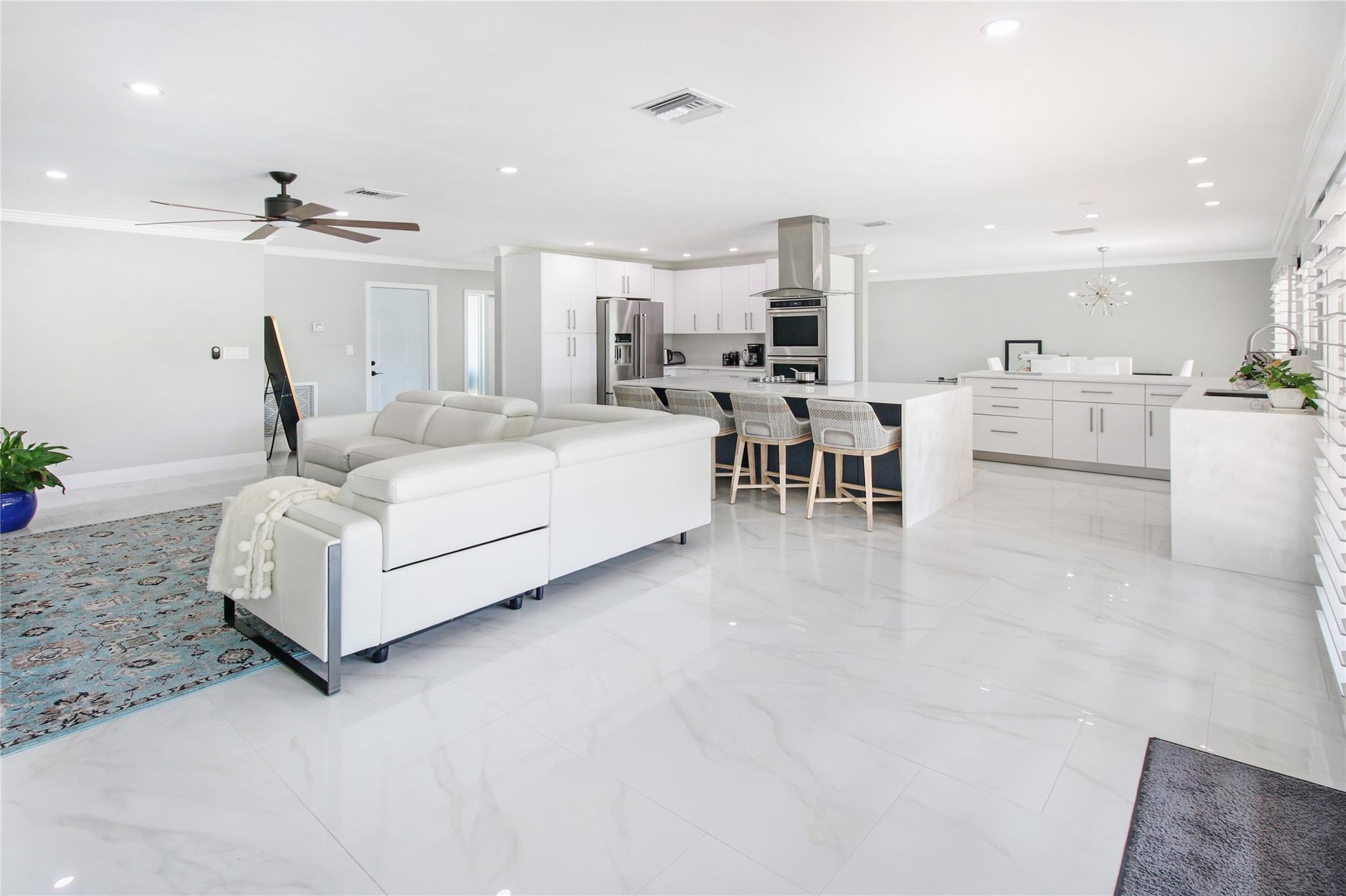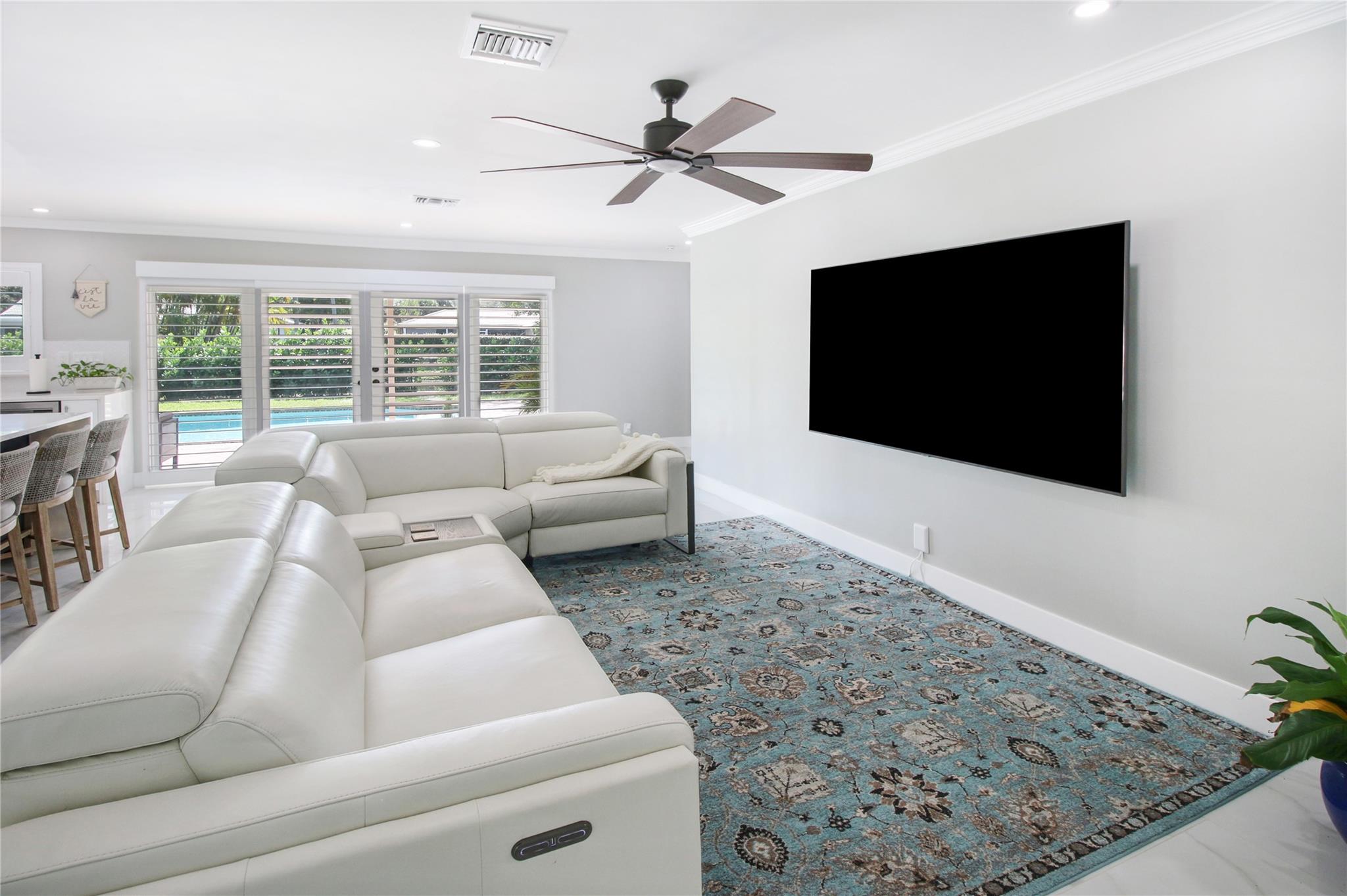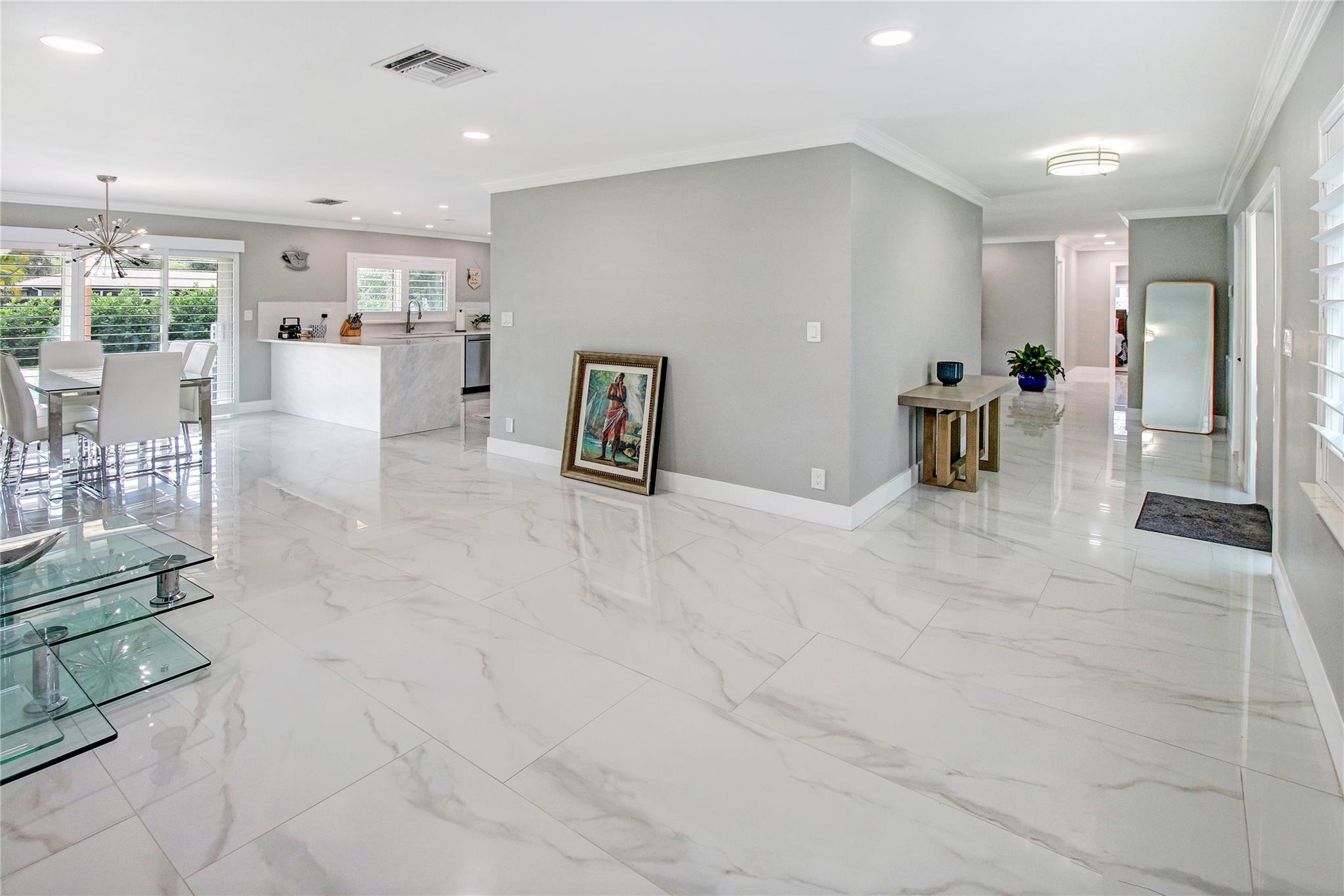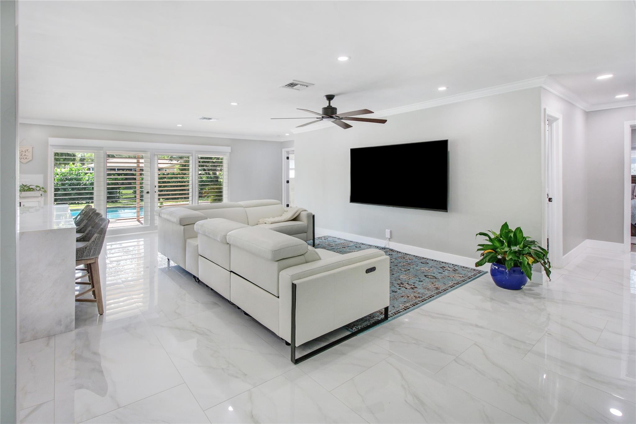 Upgraded single-family home on the serene Stranahan River. With 2,243 sq. ft. of living space, this single-story home in Shadowood features a remodeled kitchen with quartz counters, double oven, vent hood, and stainless steel appliances. Enjoy new tile floors, upgraded bathrooms, an open layout, plantation shutters, and recessed lighting. The primary bedroom includes a closet with built-in shelves and an upgraded bathroom with a double vanity, jetted tub, and shower. The interior washroom includes a washer, dryer, cabinets, utility sink, and sliding barn door. The back porch overlooks a large pool. The property also includes a white PVC fence, new roof, and tile flooring. Set on a 1/4-acre lot, it includes a 2-car garage and a paver driveway. Don’t miss this unique riverside home!