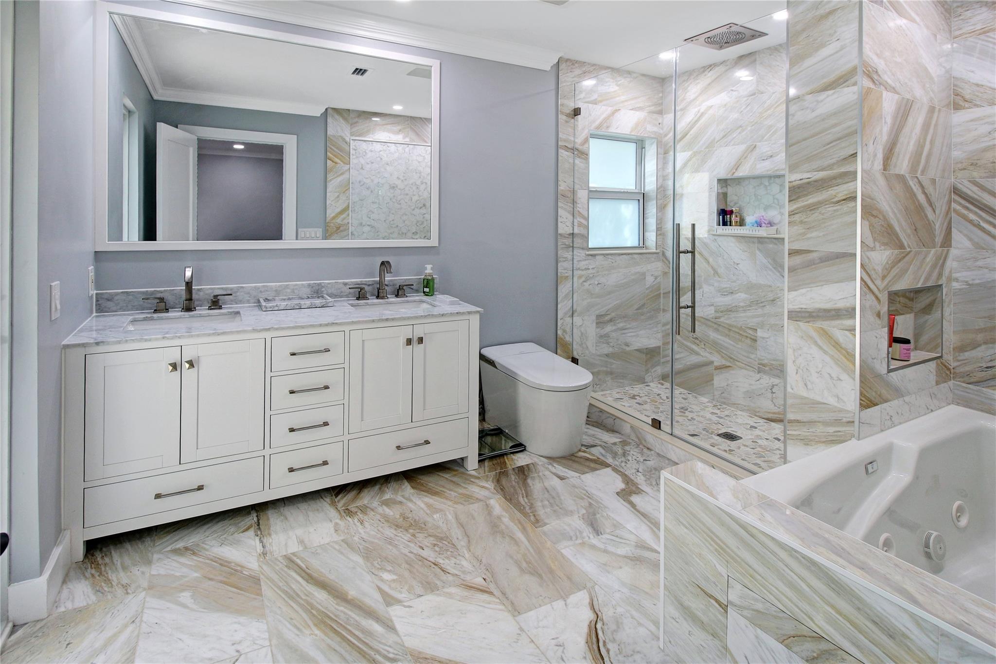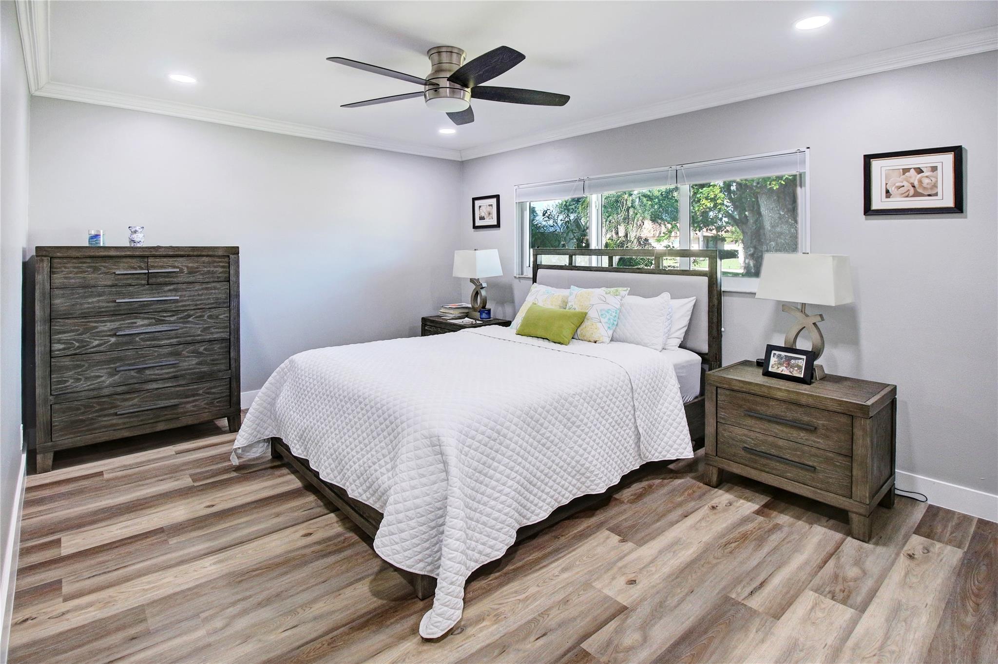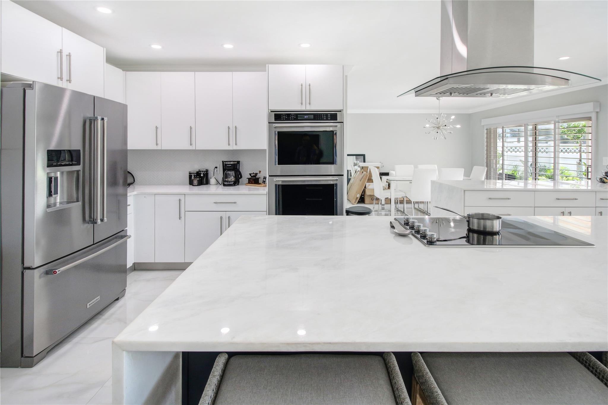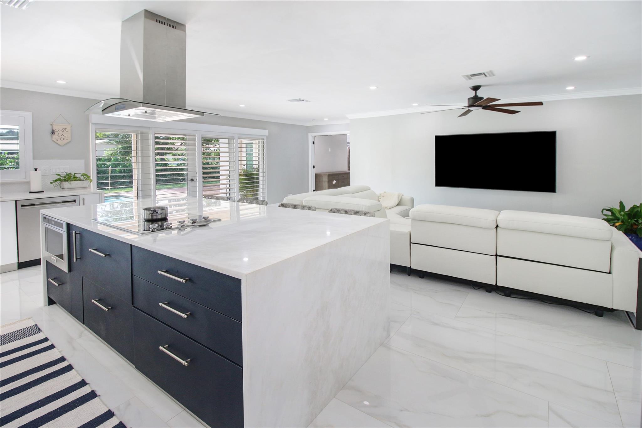 Upgraded single-family home on the serene Stranahan River. With 2,243 sq. ft. of living space, this single-story home in Shadowood features a remodeled kitchen with quartz counters, double oven, vent hood, and stainless steel appliances. Enjoy new tile floors, upgraded bathrooms, an open layout, plantation shutters, and recessed lighting. The primary bedroom includes a closet with built-in shelves and an upgraded bathroom with a double vanity, jetted tub, and shower. The interior washroom includes a washer, dryer, cabinets, utility sink, and sliding barn door. The back porch overlooks a large pool. The property also includes a white PVC fence, new roof, and tile flooring. Set on a 1/4-acre lot, it includes a 2-car garage and a paver driveway. Don’t miss this unique riverside home!