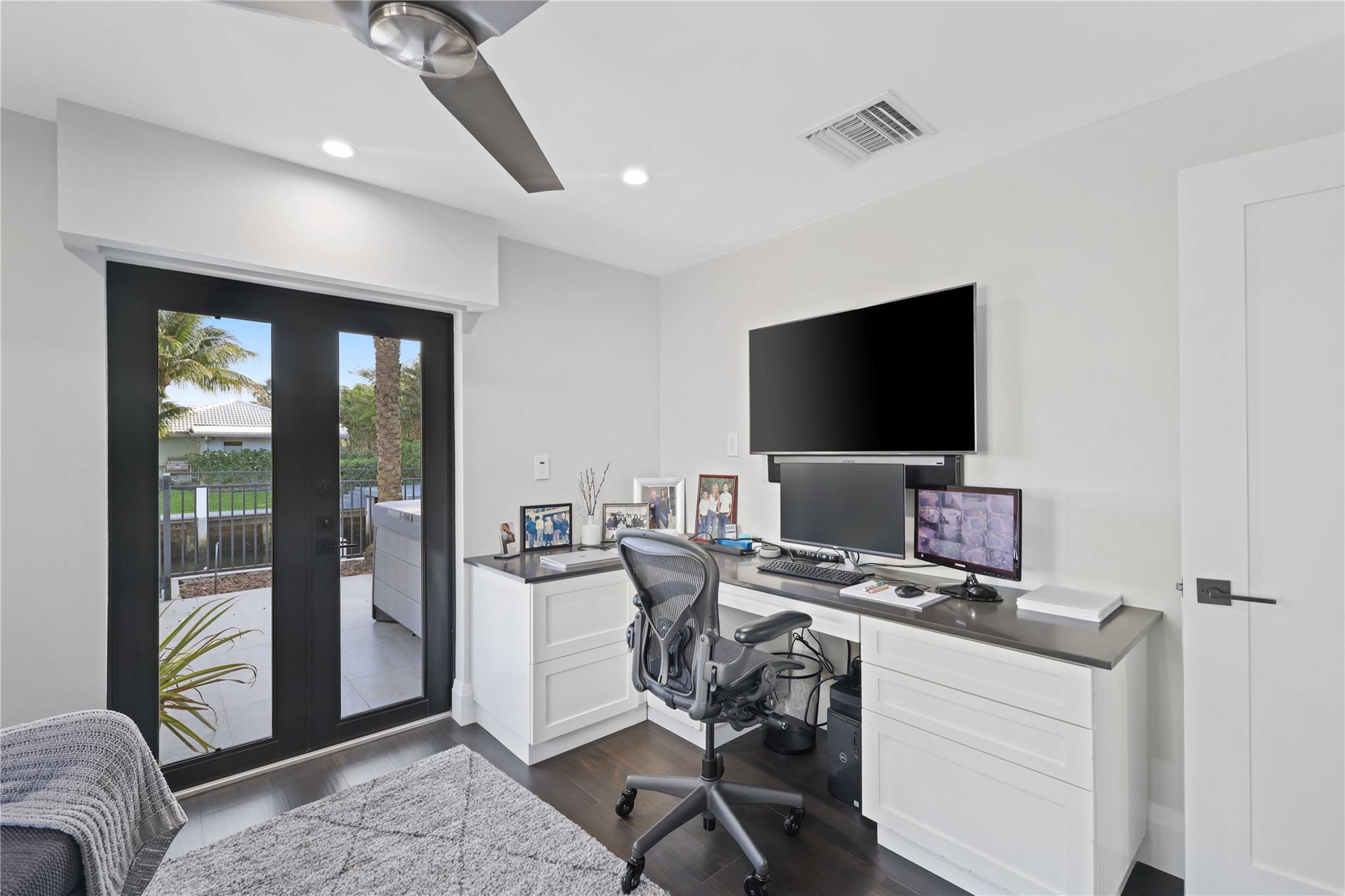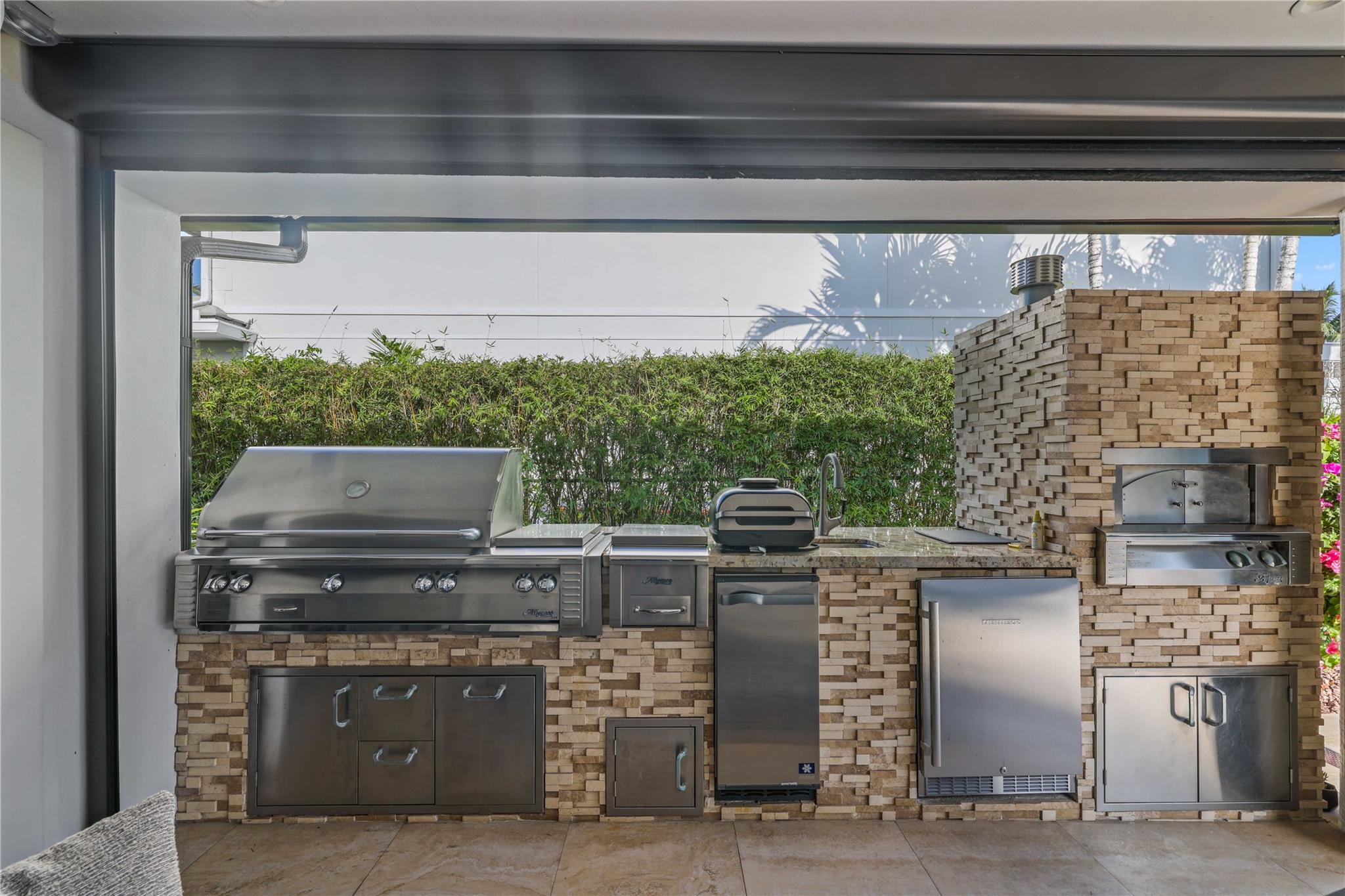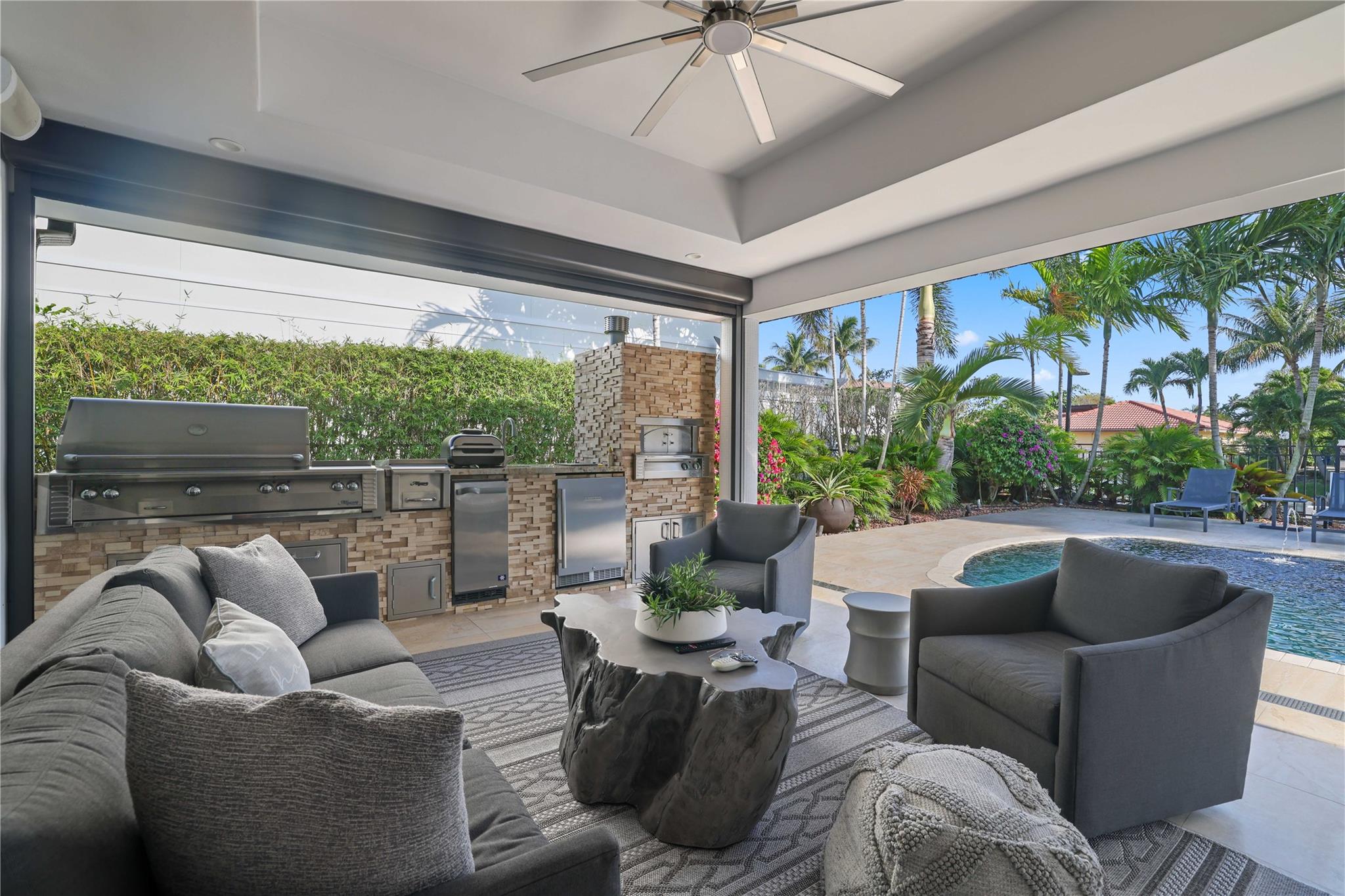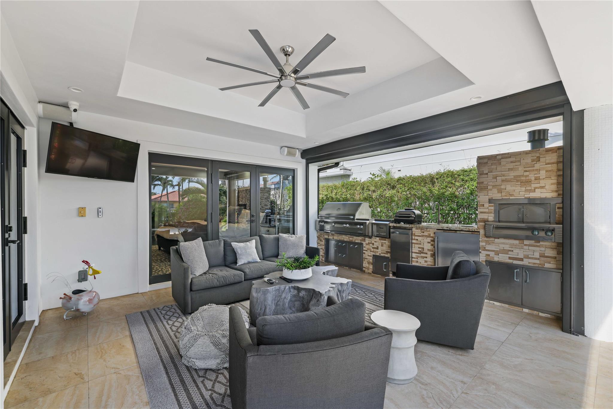A RARE FIND! Modern 1 story waterfront home in the Golden Harbour neighborhood in the heart of downtown. Modern & updated w/ direct access to the Boca Inlet with no fixed bridges. Upgraded 48×48 porcelain rectified tile throughout the main living space, modern wood plank tile in all bedrooms. An entertainer’s dream home w/ open floor plan. Gourmet kitchen w/ MIELE appliances & large covered patio w/ retractable screens for bug-free comfort. Covered outdoor kitchen including a pizza oven and ice maker. New seawall & 80′ dock w/ 30k lb. boat lift. Additional 40′ of frontage w/ views down the canal for a potential second dock. Whole home generator, heated salt water pool, foam insulation in the attic for energy efficiency. If you’ve been looking to downsize on the water you can’t miss this!
