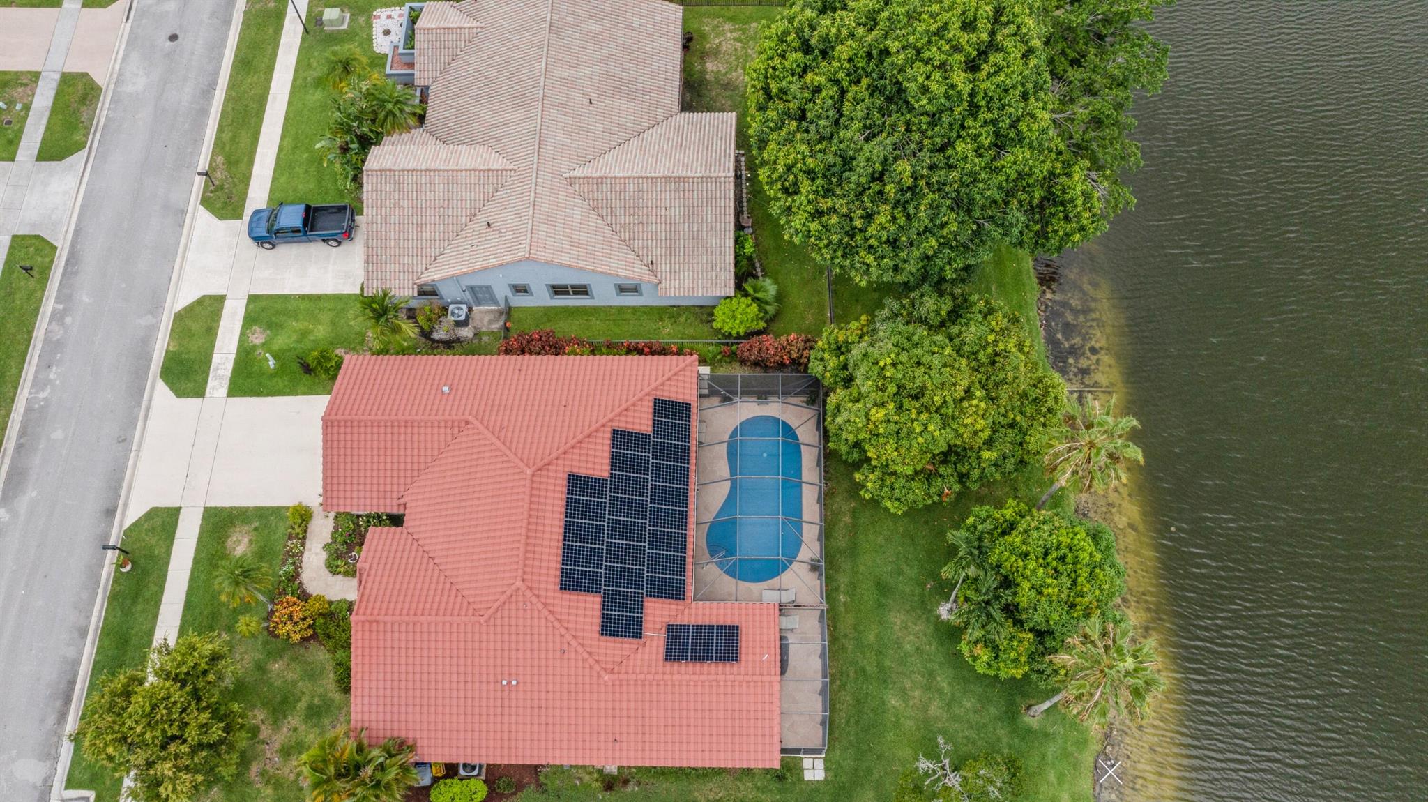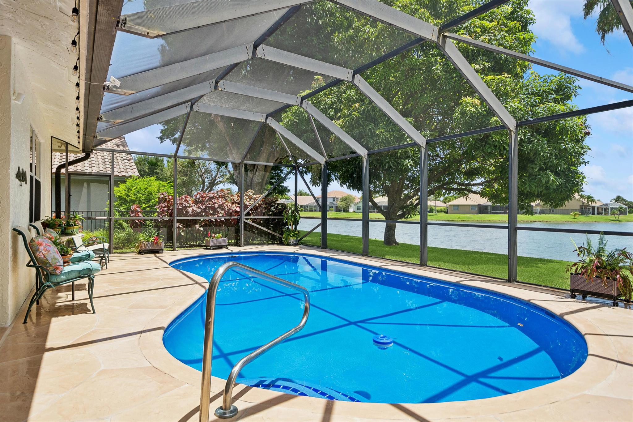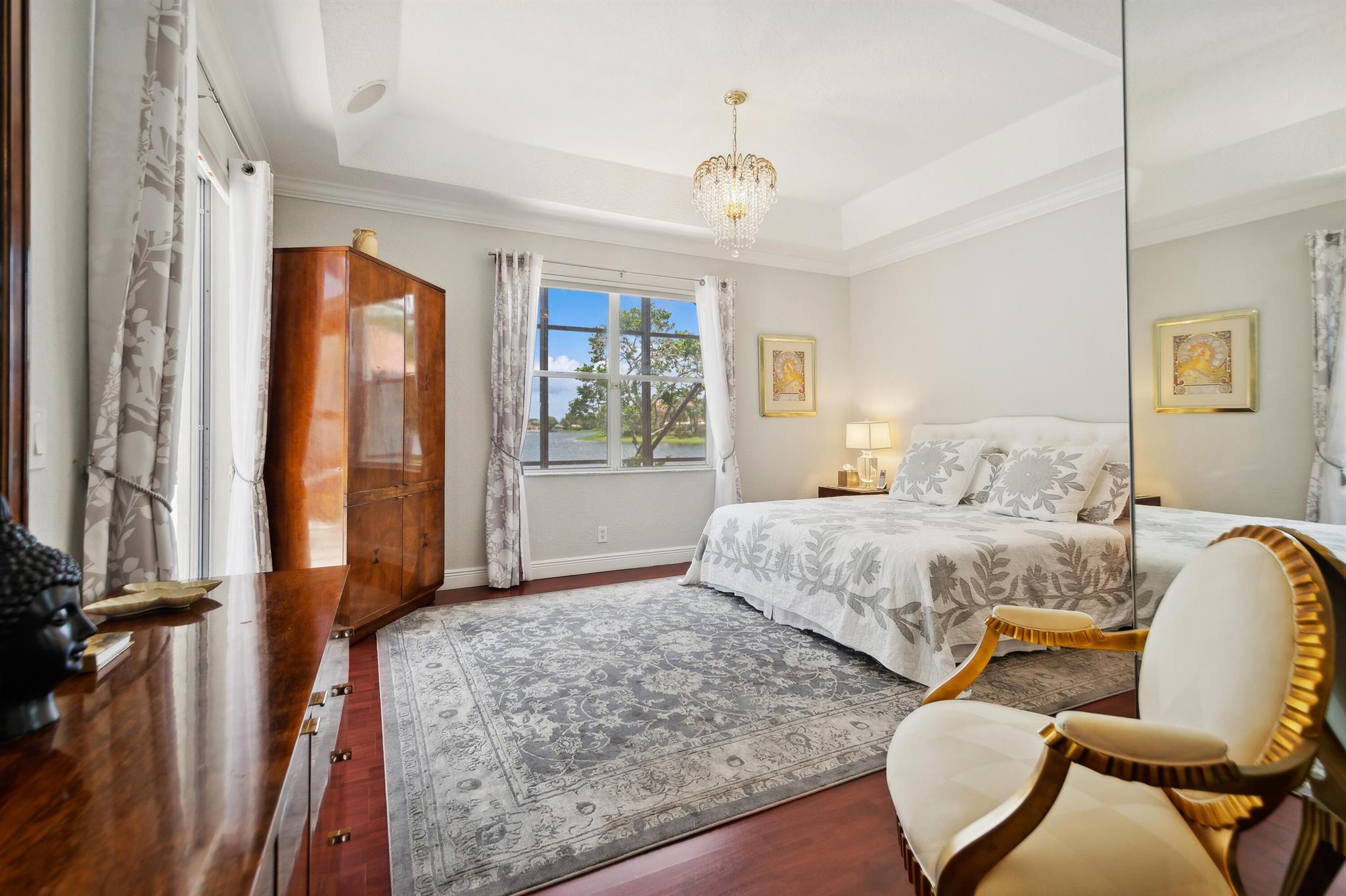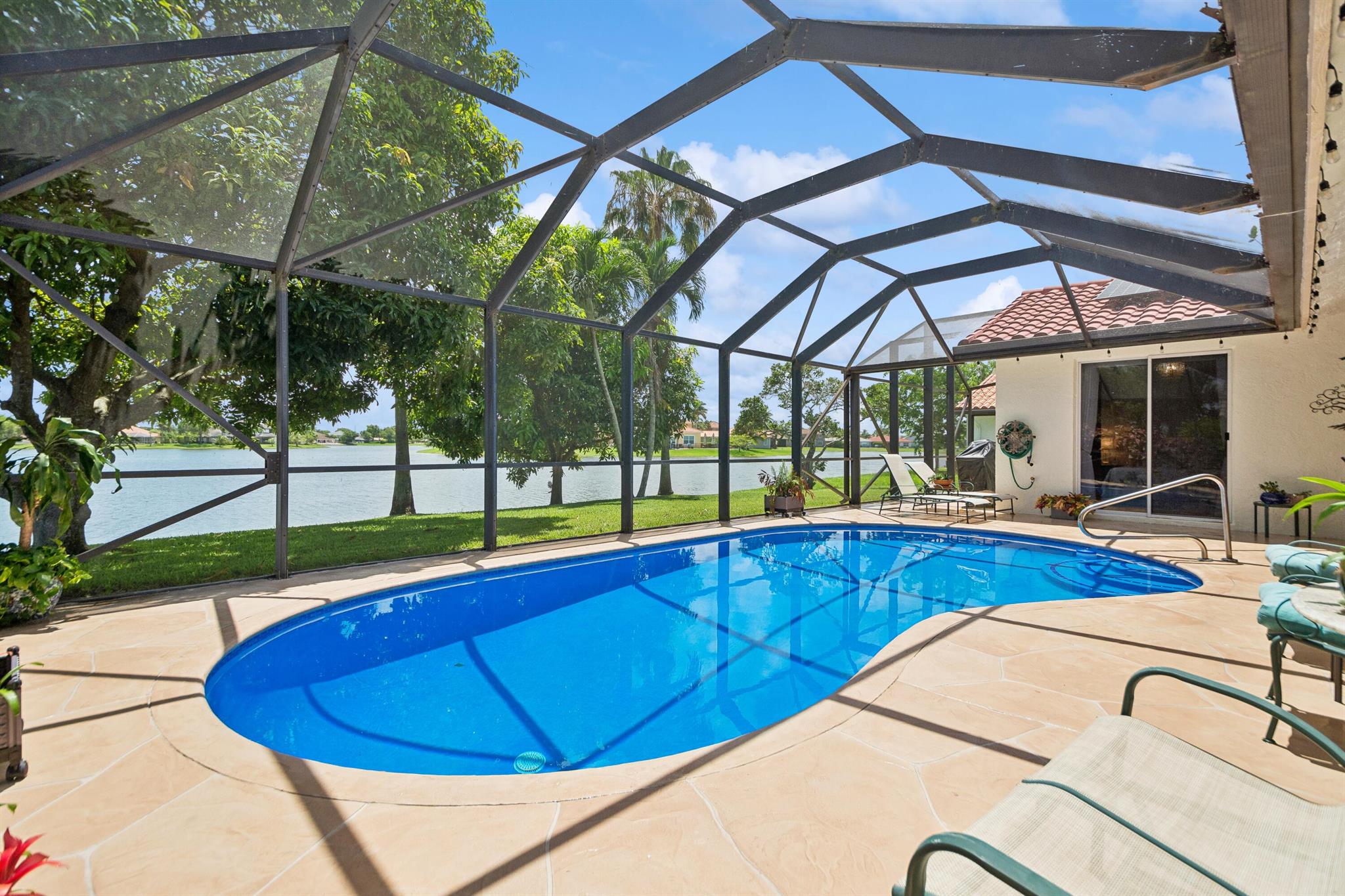 Discover luxury in this one-story, 4 bed, 2.5 bath pool home on nearly 1/4 acre, offering panoramic long lake views from the master bedroom and many other rooms. The custom kitchen features wood cabinetry, granite countertops, and Bosch appliances, complemented by elegant 24×24 marble floors. Enjoy the comfort of two newer A/C units and hydrotherapy showers. This home also boasts ample storage, a new pool liner, resurfaced pool deck, and Rhino-protected windows. Make this exceptional home yours today. Solar Panels are $185 monthly plus tax. Chandelier in Bedroom and Tiffany light in Hallway do not convey.Seller will make Concessions towards solar panels and roof with an acceptable offer. Opportunity to purchase below appraised Value (870K)Easy to Finance.