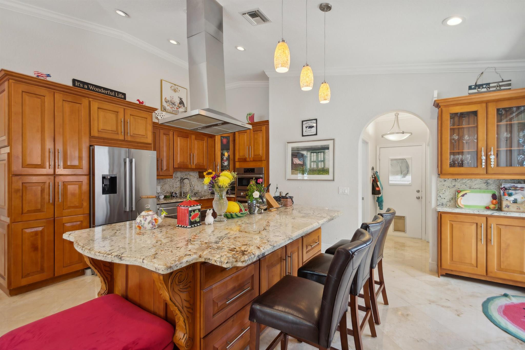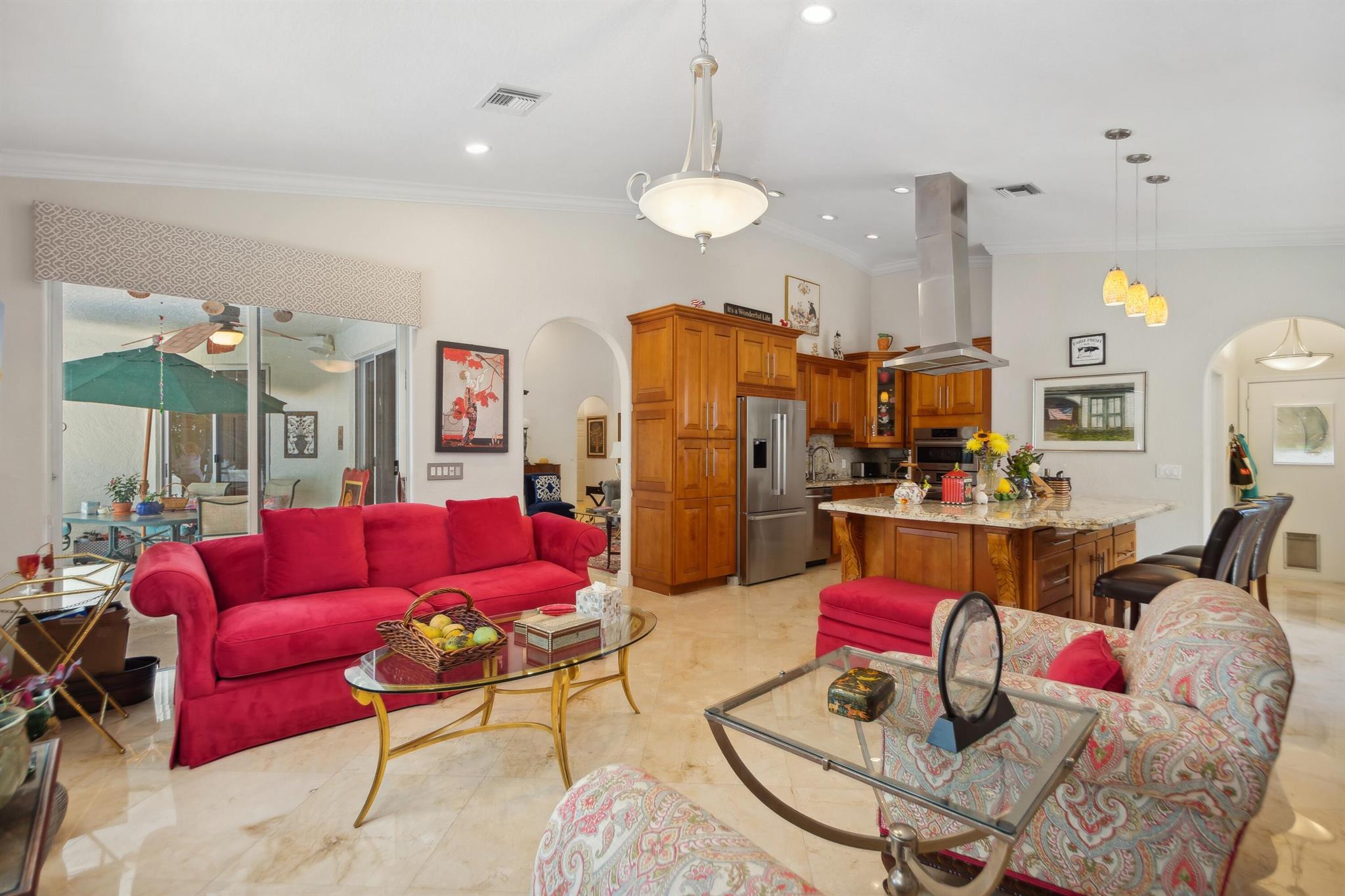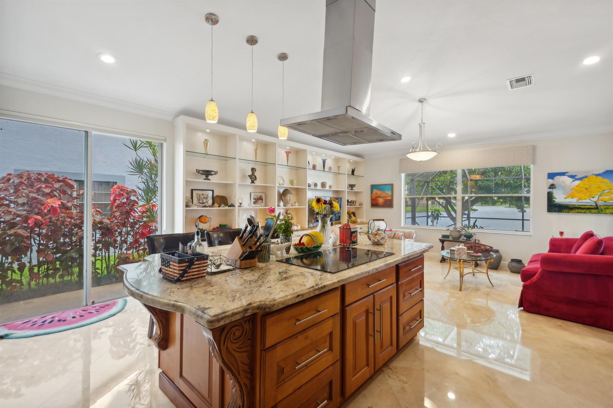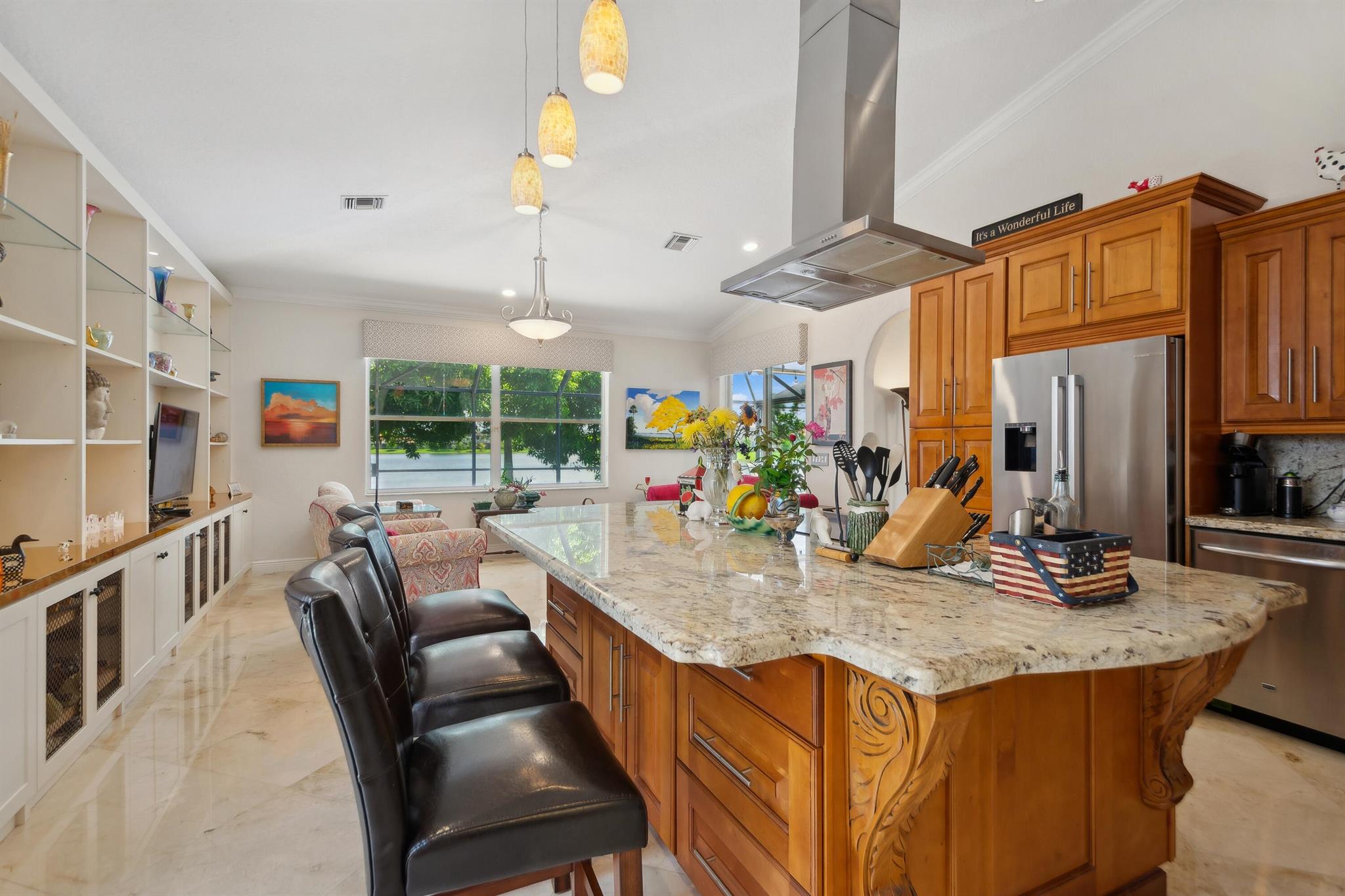 Discover luxury in this one-story, 4 bed, 2.5 bath pool home on nearly 1/4 acre, offering panoramic long lake views from the master bedroom and many other rooms. The custom kitchen features wood cabinetry, granite countertops, and Bosch appliances, complemented by elegant 24×24 marble floors. Enjoy the comfort of two newer A/C units and hydrotherapy showers. This home also boasts ample storage, a new pool liner, resurfaced pool deck, and Rhino-protected windows. Make this exceptional home yours today. Solar Panels are $185 monthly plus tax. Chandelier in Bedroom and Tiffany light in Hallway do not convey.Seller will make Concessions towards solar panels and roof with an acceptable offer. Opportunity to purchase below appraised Value (870K)Easy to Finance.