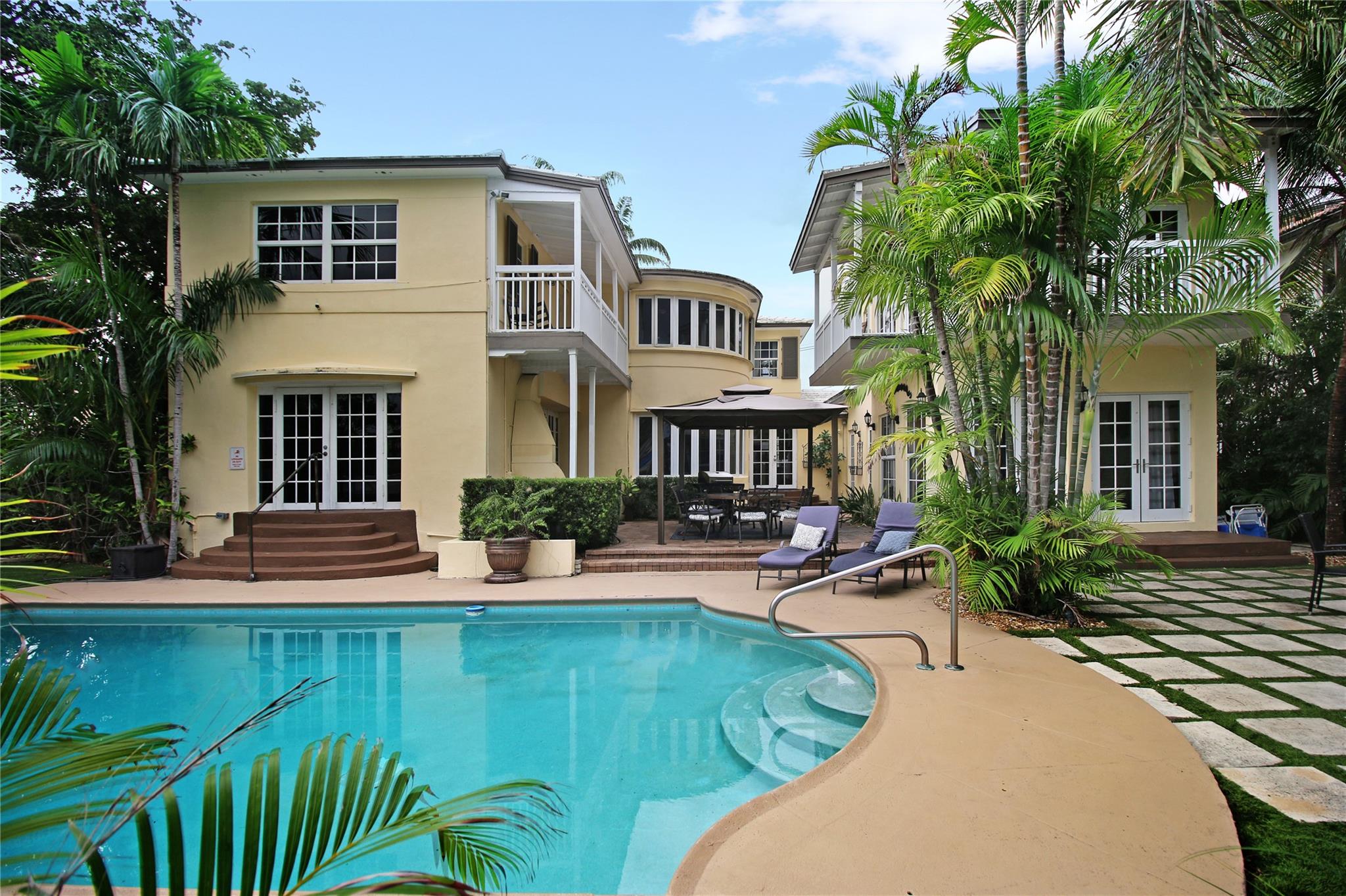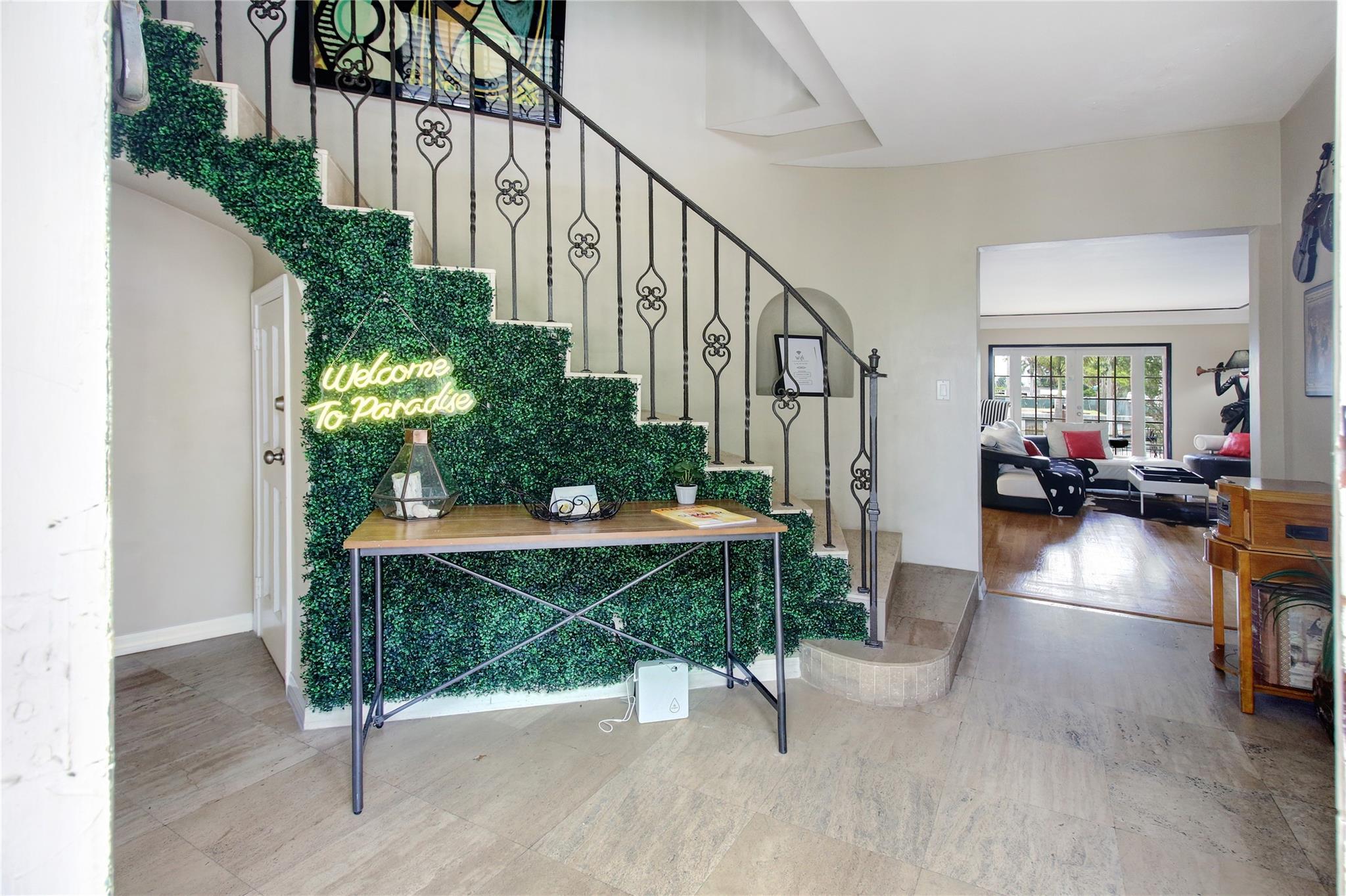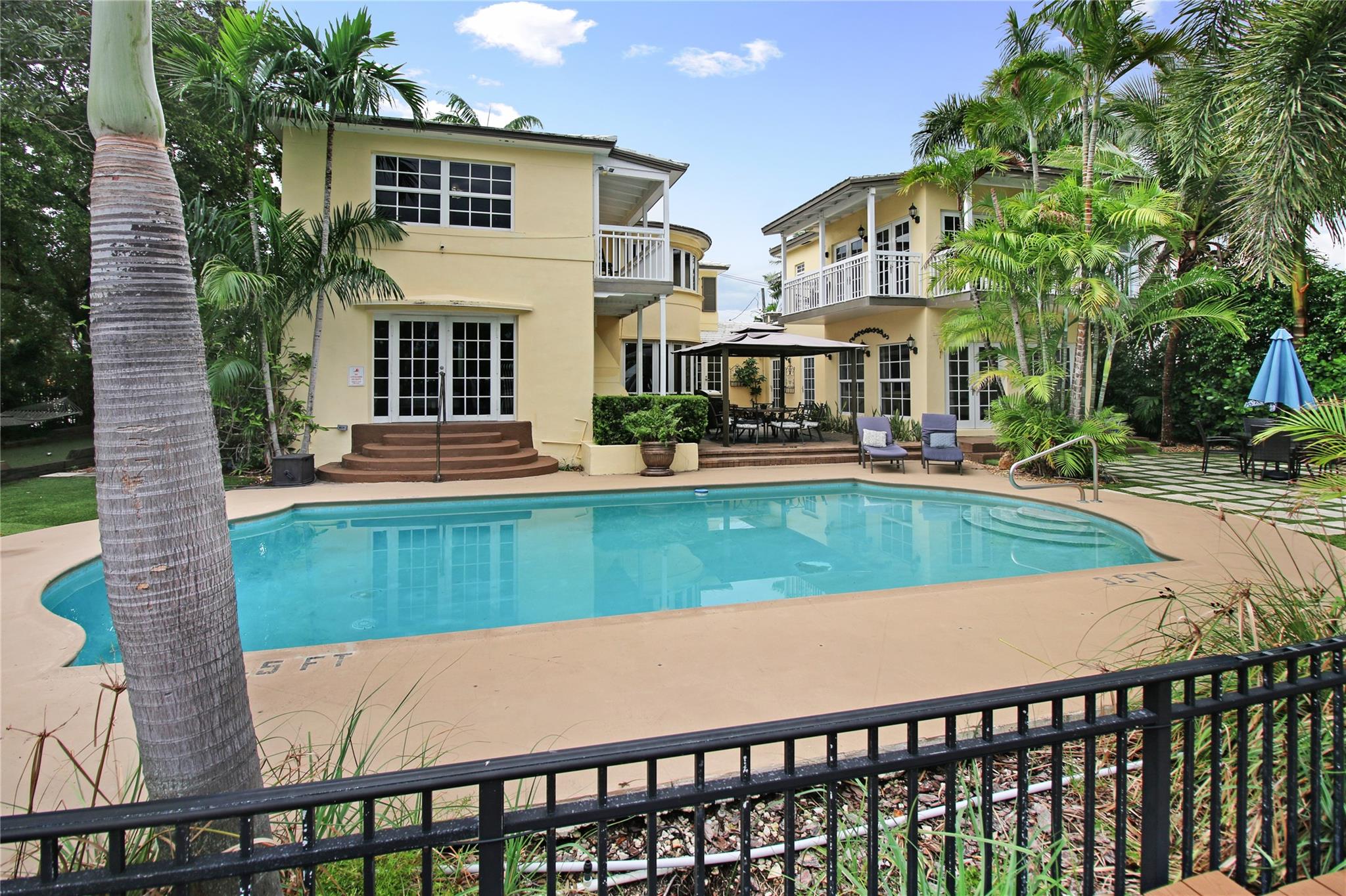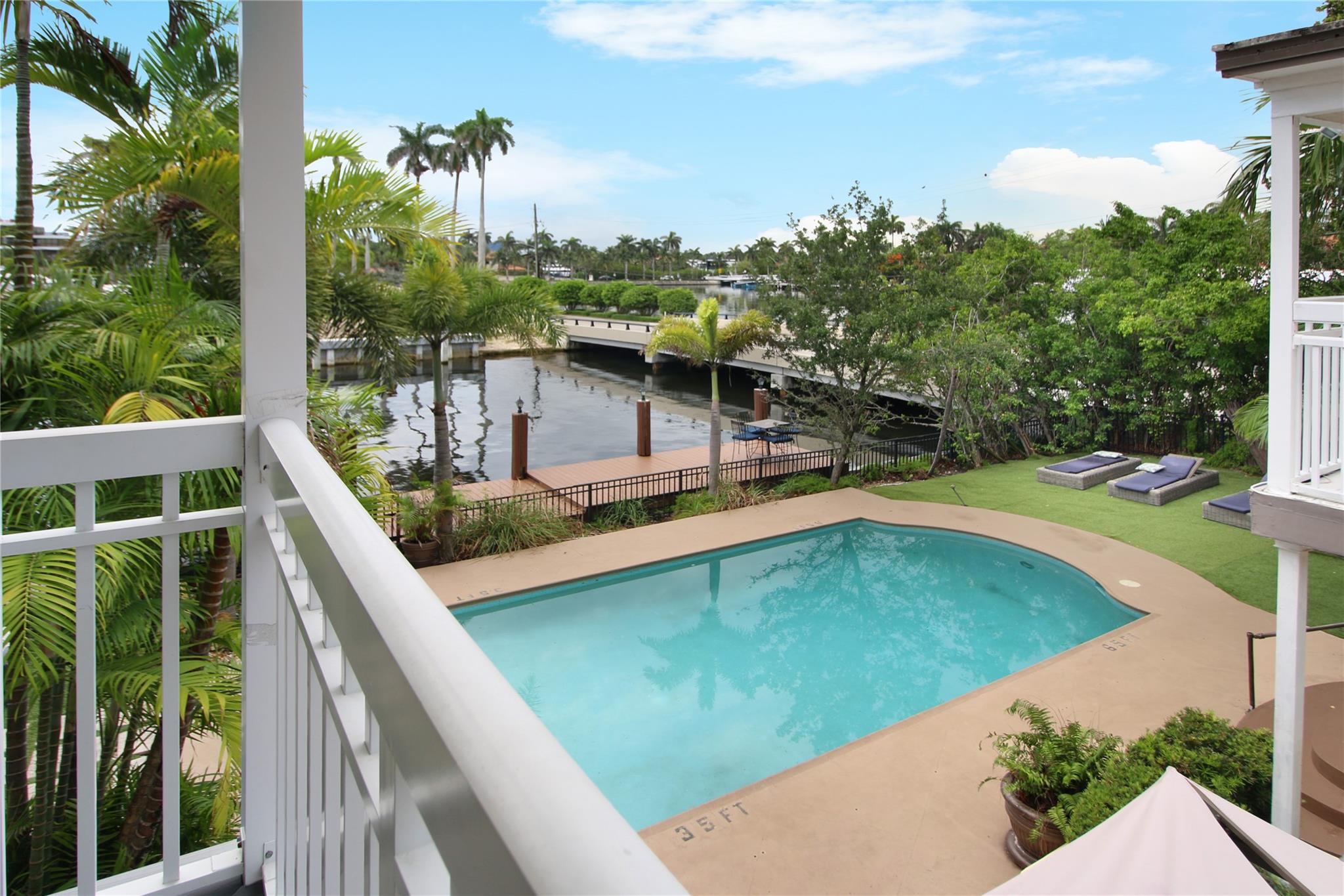 Two story elegant waterfront home, with exceptional indoor/outdoor amenities. 6 bedroom, 5.5 bathrooms, on corner lot. 5 Bedrooms with full en-suite bathrooms. Beautiful hardwood floors throughout. Impact Glass windows and doors and shutters. Private backyard with pool and tropical paradise. 75′ Waterfront. The spacious design is perfect for entertaining, featuring a game room, outdoor patio, and turfed lounge area overlooking the serene waterfront setting. This property is currently a successful AirBnb and presents a unique opportunity for lucrative cash flow.