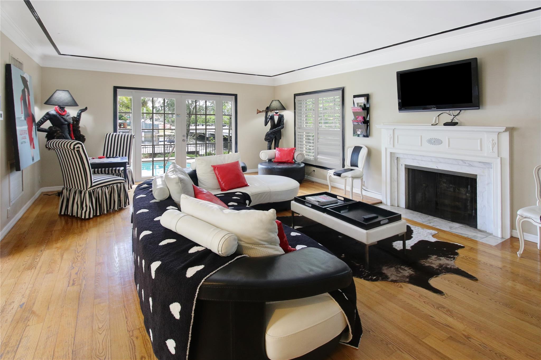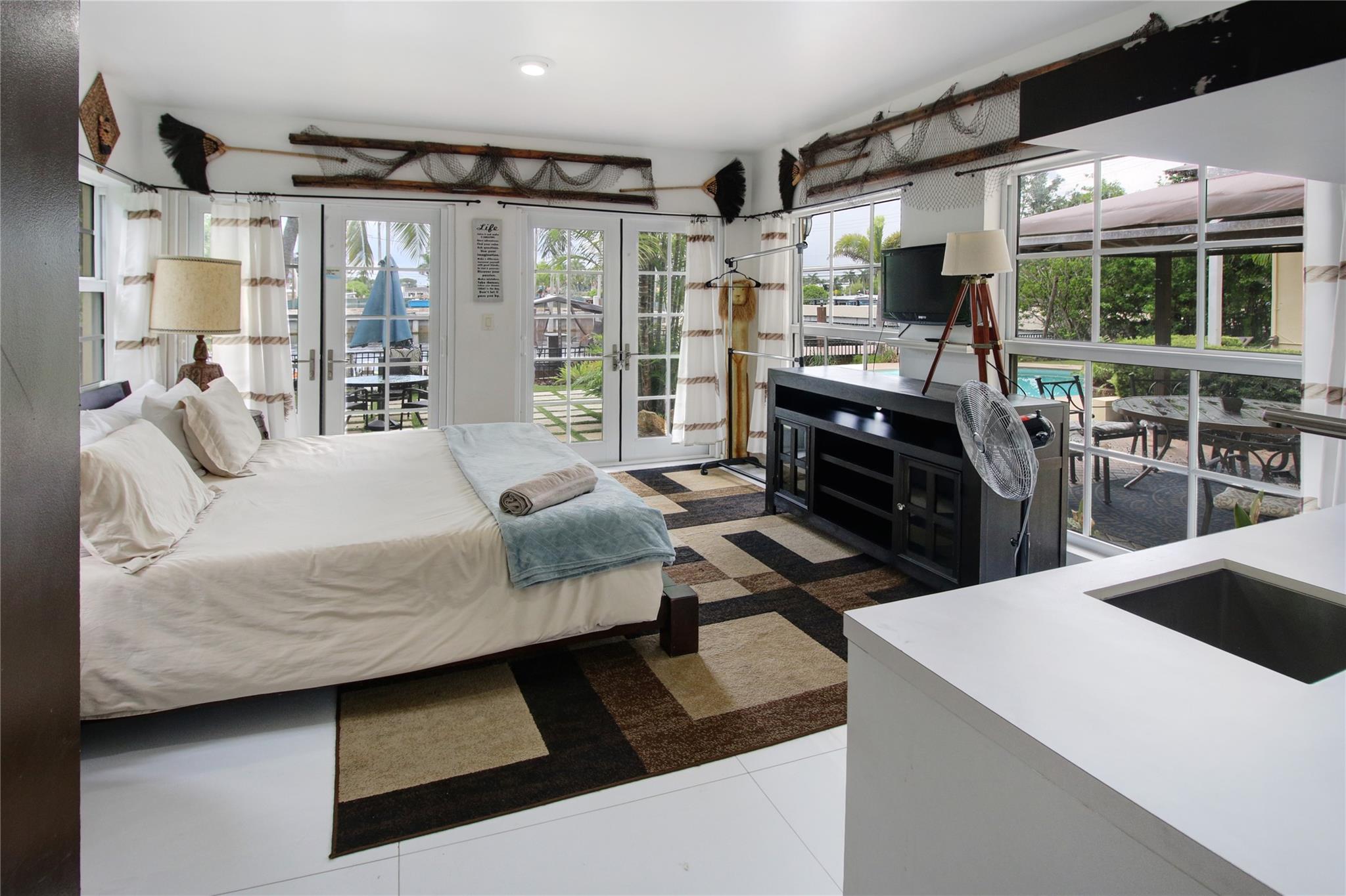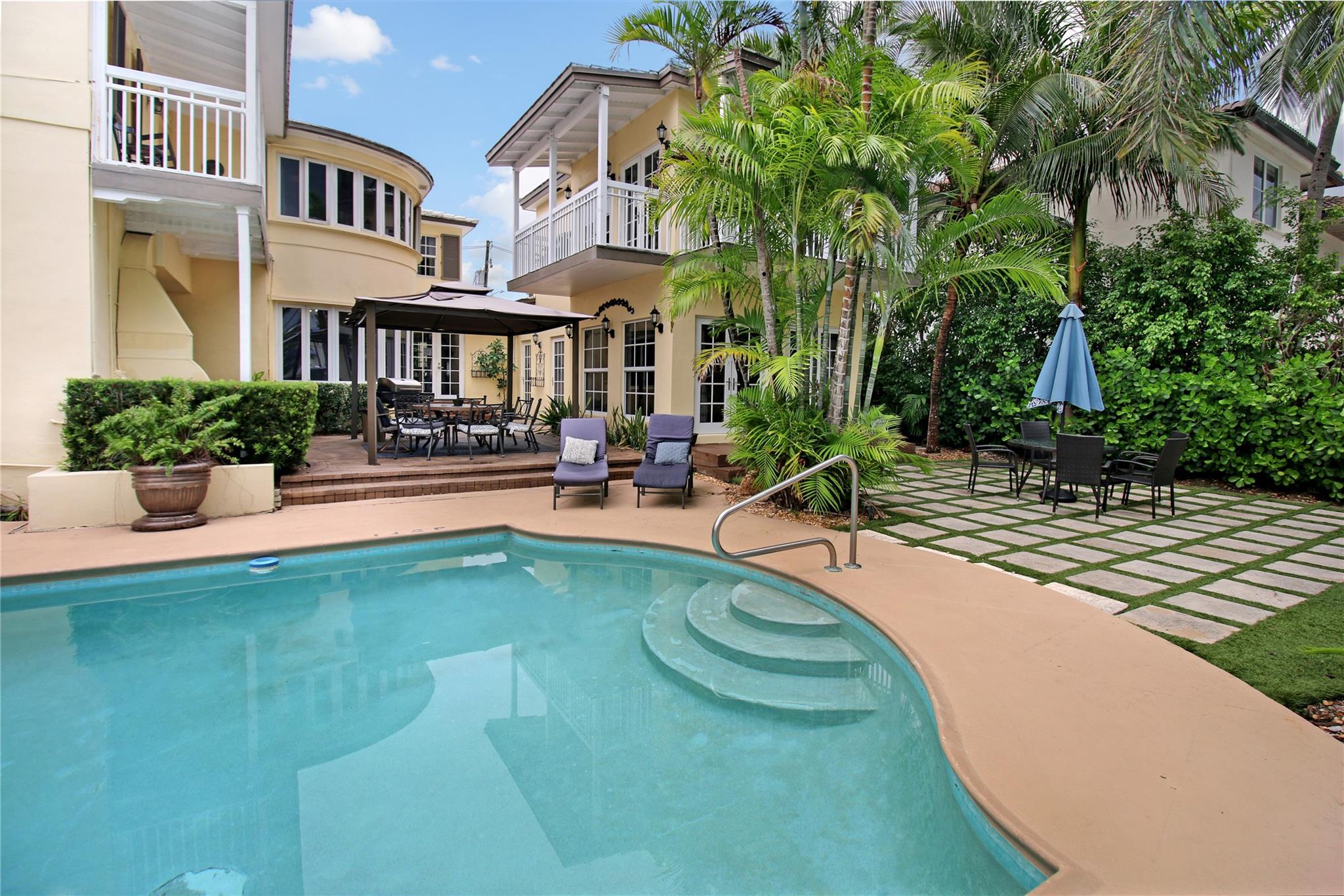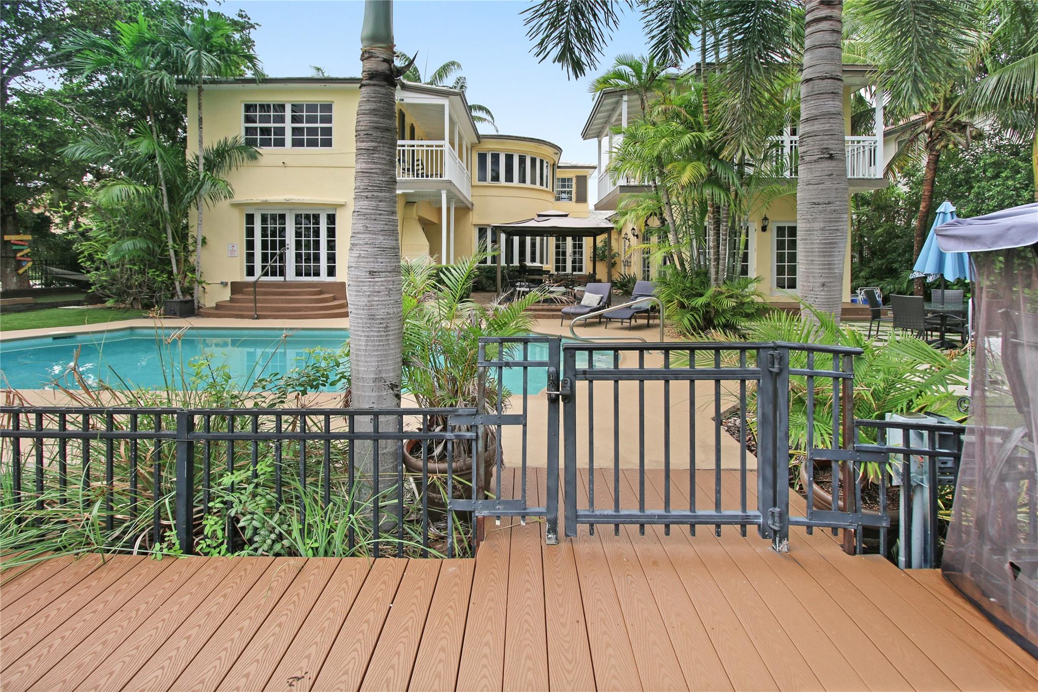 Two story elegant waterfront home, with exceptional indoor/outdoor amenities. 6 bedroom, 5.5 bathrooms, on corner lot. 5 Bedrooms with full en-suite bathrooms. Beautiful hardwood floors throughout. Impact Glass windows and doors and shutters. Private backyard with pool and tropical paradise. 75′ Waterfront. The spacious design is perfect for entertaining, featuring a game room, outdoor patio, and turfed lounge area overlooking the serene waterfront setting. This property is currently a successful AirBnb and presents a unique opportunity for lucrative cash flow.
