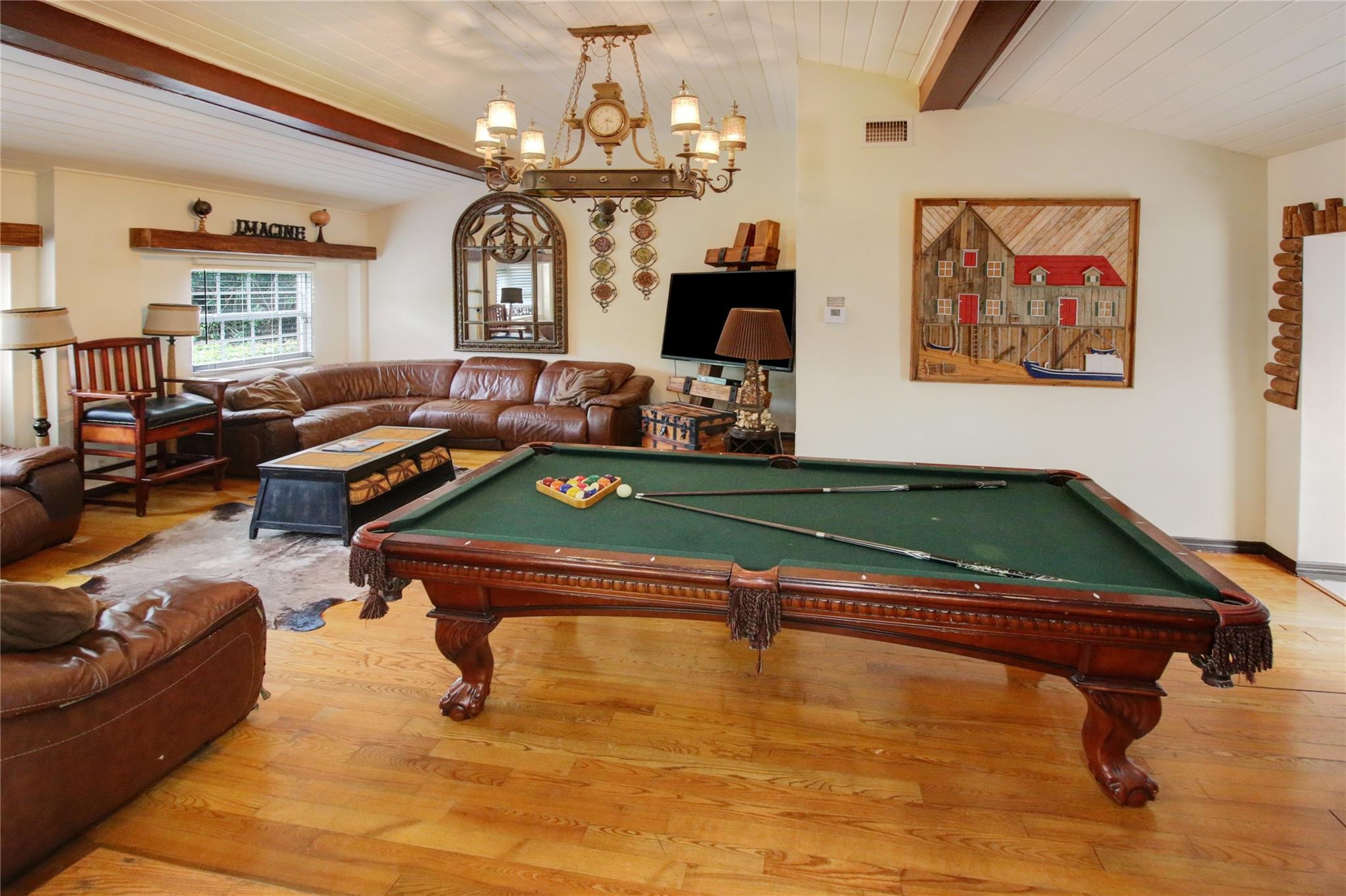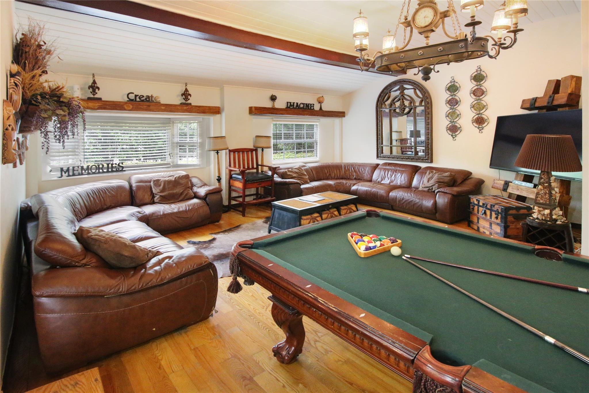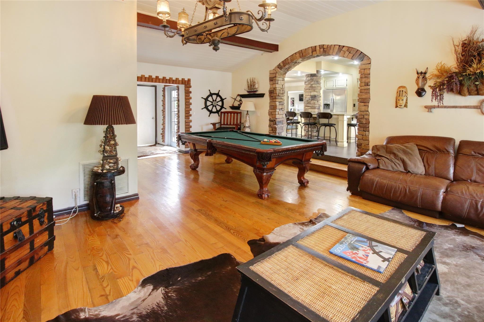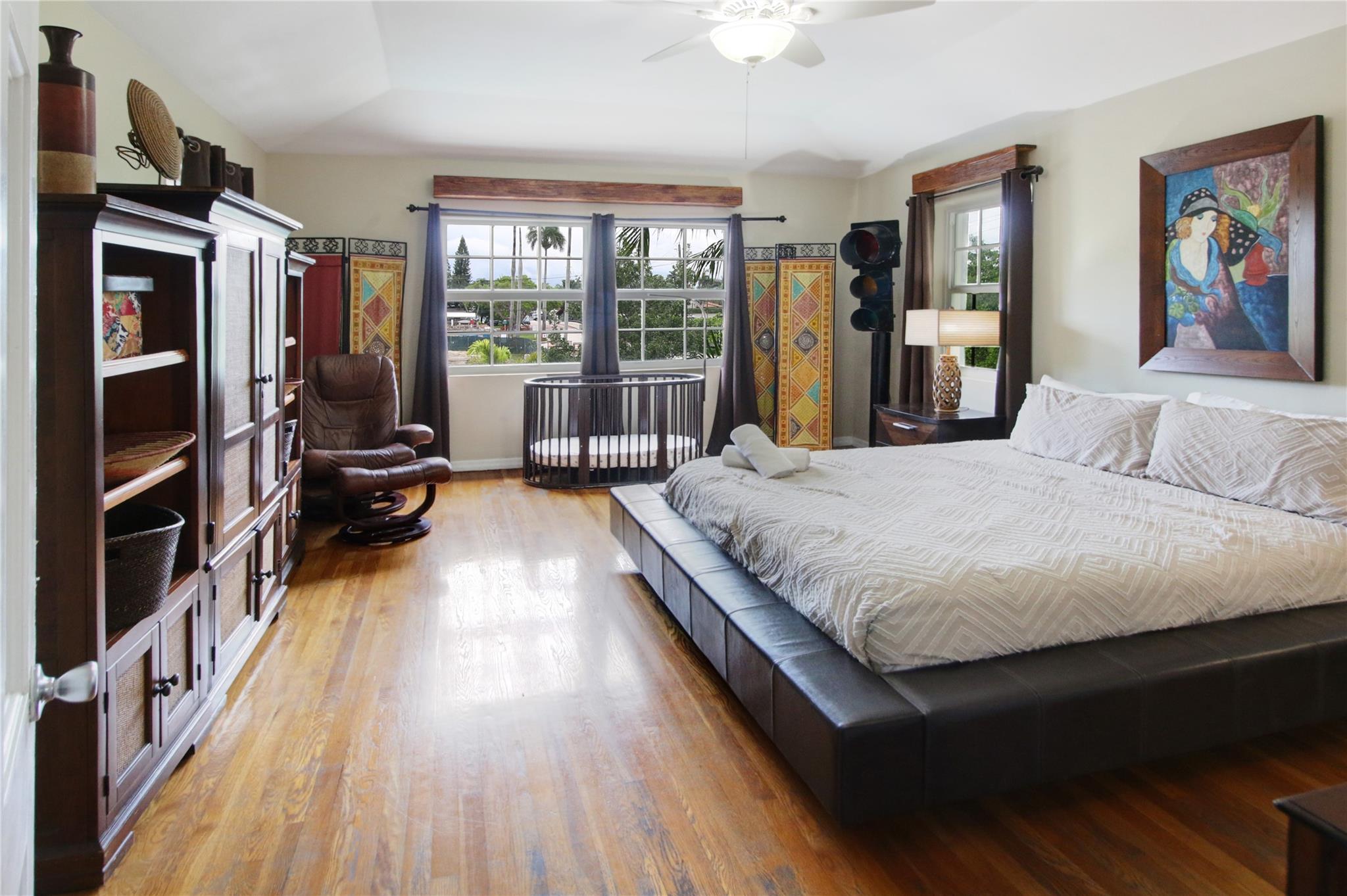 Two story elegant waterfront home, with exceptional indoor/outdoor amenities. 6 bedroom, 5.5 bathrooms, on corner lot. 5 Bedrooms with full en-suite bathrooms. Beautiful hardwood floors throughout. Impact Glass windows and doors and shutters. Private backyard with pool and tropical paradise. 75′ Waterfront. The spacious design is perfect for entertaining, featuring a game room, outdoor patio, and turfed lounge area overlooking the serene waterfront setting. This property is currently a successful AirBnb and presents a unique opportunity for lucrative cash flow.