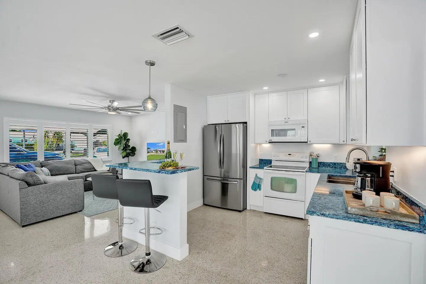 Welcome to your dream home in Deerfield Beach! This stunning three-bedroom, two-bathroom residence is just minutes from the beach and within walking distance to shopping. Completely renovated from top to bottom, the home features a modern kitchen with white shaker cabinetry and elegant quartz countertops. Enjoy the large, fenced-in backyard perfect for outdoor activities, and relax in the screened-in porch. The spacious family room offers picturesque views of the backyard, ideal for family gatherings and entertaining. With a convenient circular driveway, this home combines comfort, style, and location. Don’t miss out on this gem in Deerfield Beach!