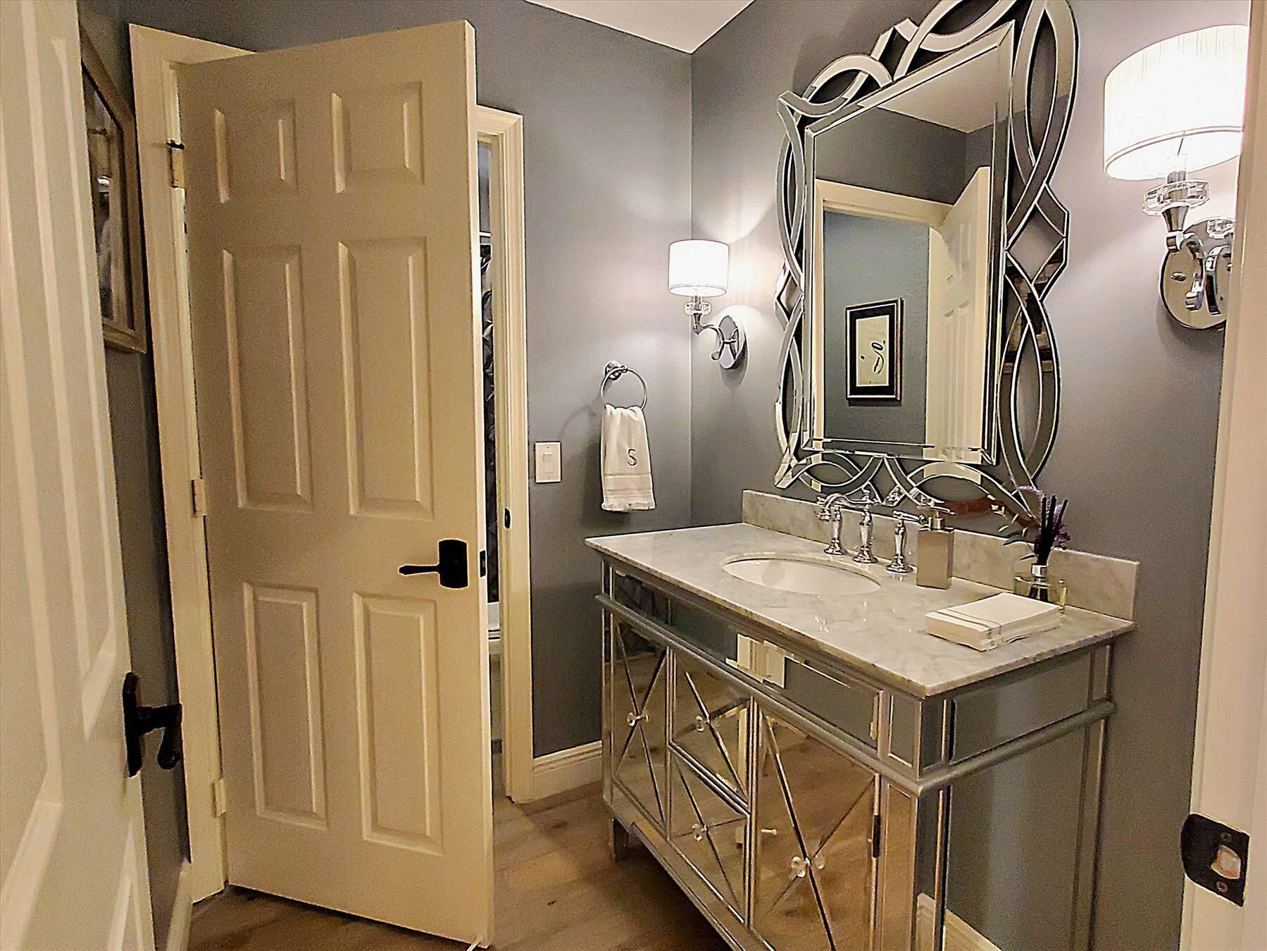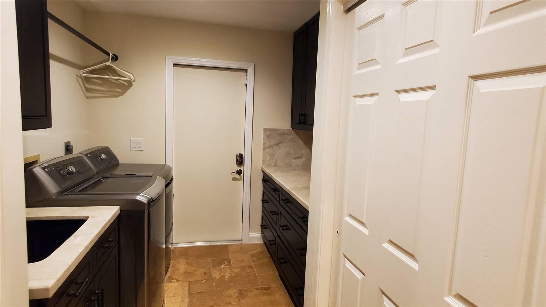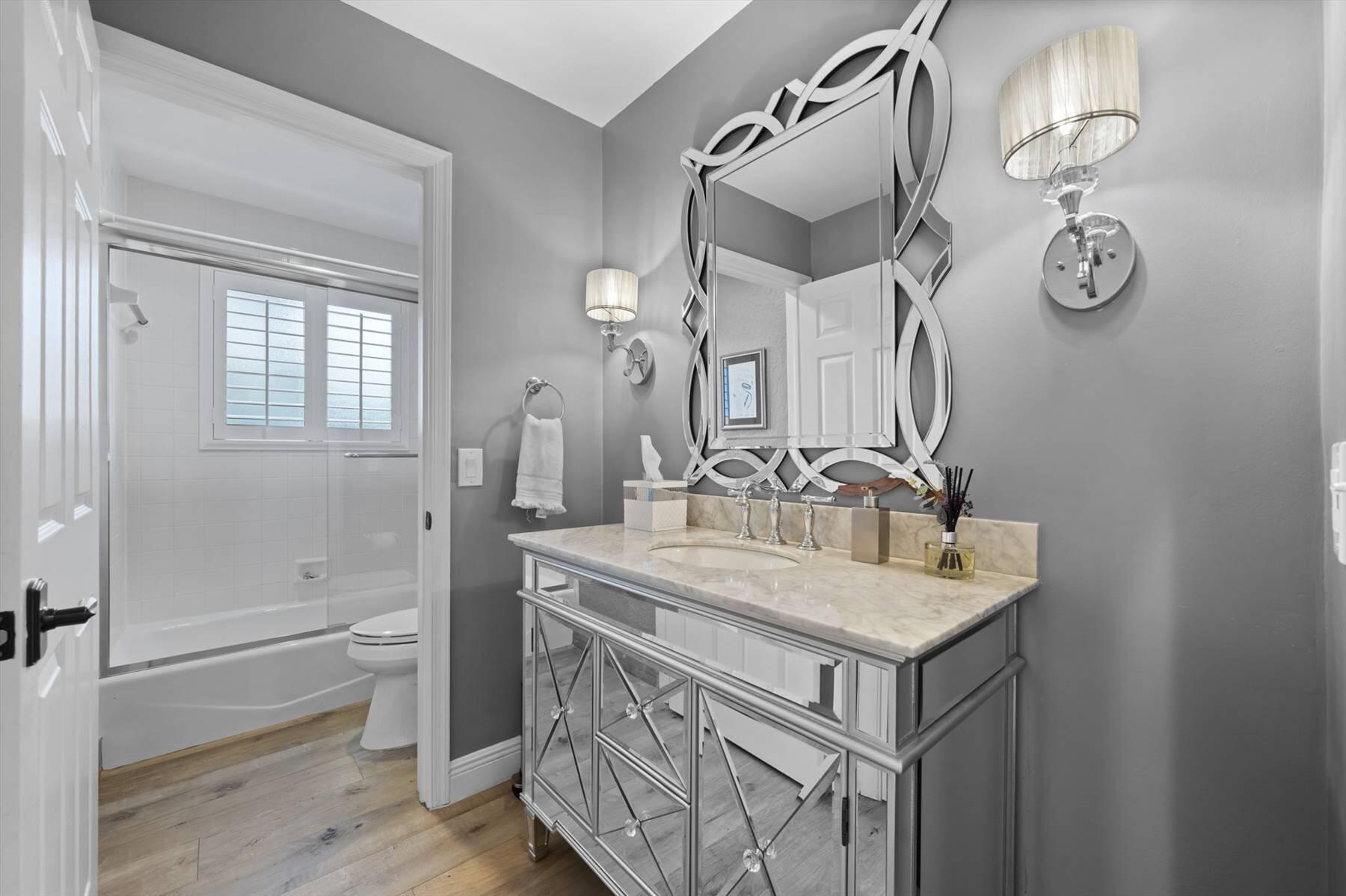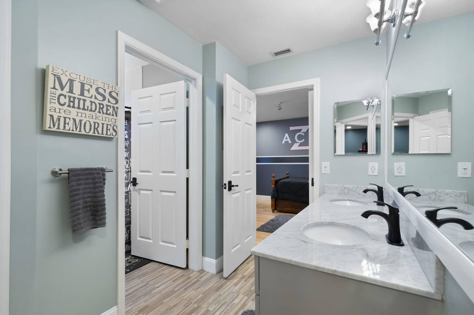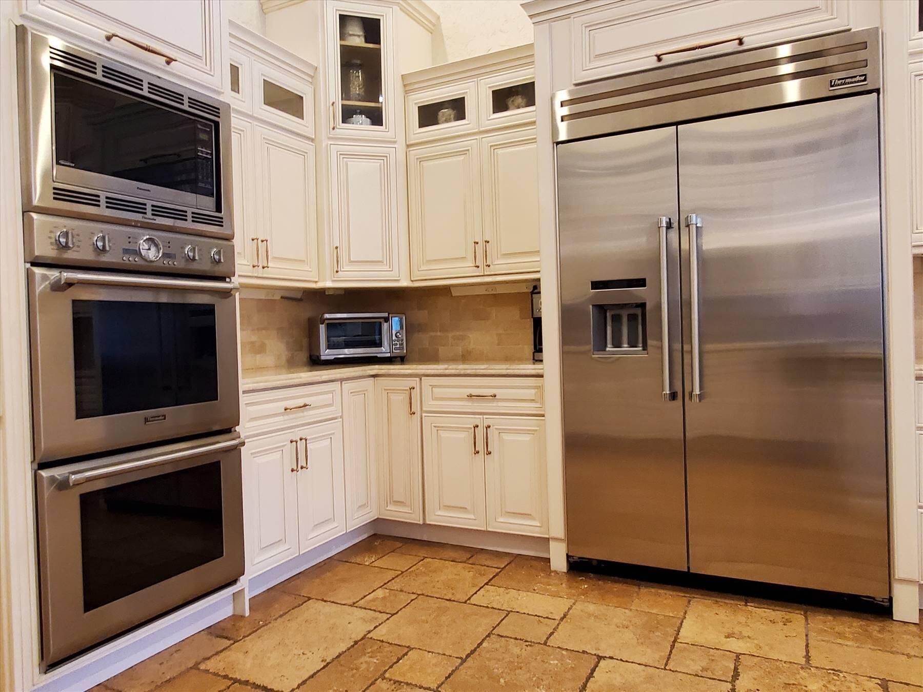 Luxurious 5BR 4BA single story residence in highly sought after Palm Island! This stunning, updated home sits on a large private corner lot with a fully fenced yard w/pool w/new salt system, new pool pump, newer travertine deck, a newly resurfaced basketball court, a dog run and generous covered patio, perfect for outdoor entertaining. Newly painted French doors and walls, exquisite travertine marble flooring in living areas, gorgeous high-end eat-in kitchen w/bench seating, upgraded solid wood cabinetry, stainless steel Thermador appliances, quartzite countertops and generous walk-in pantry. The primary bathroom has marble flooring and a large shower w/endless hot water from new tankless systems. Cabana bathroom, tons of storage throughout w/ closet organizers and easy access attic.