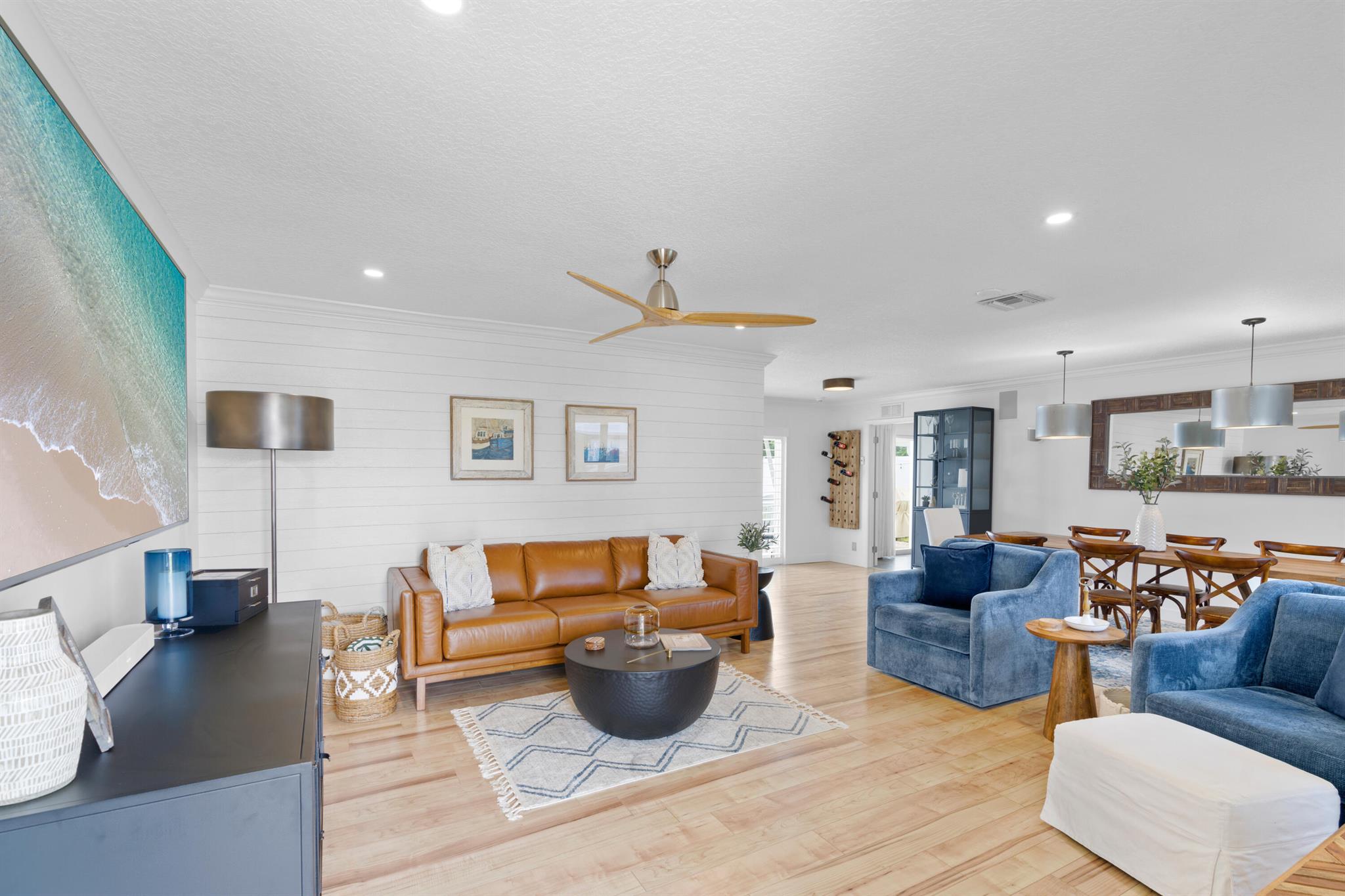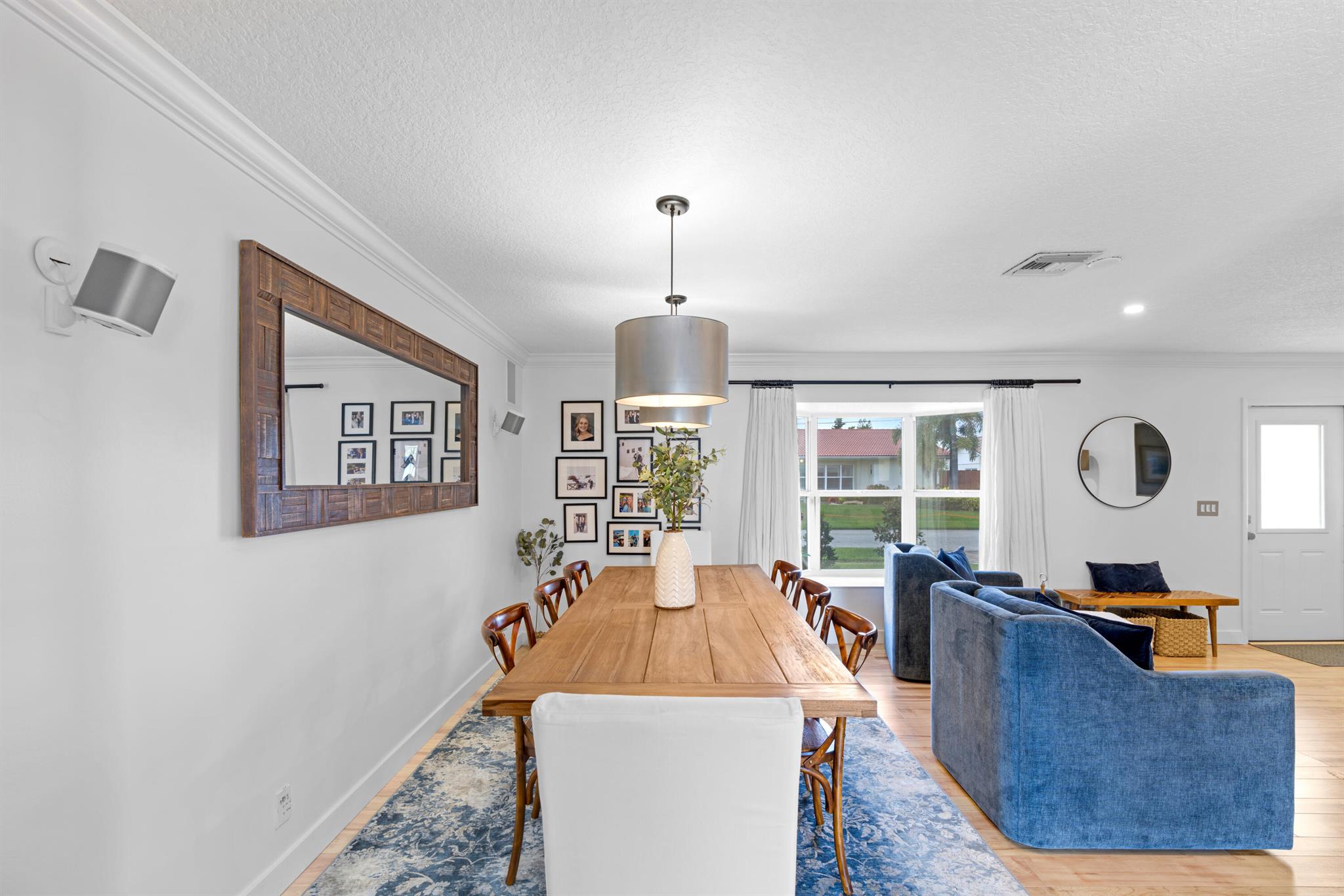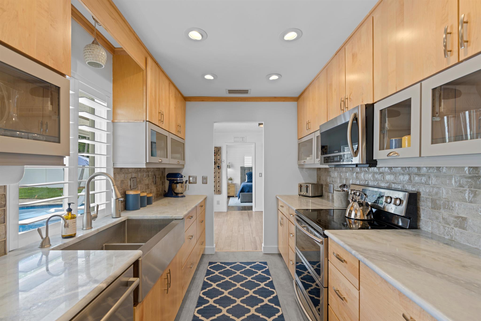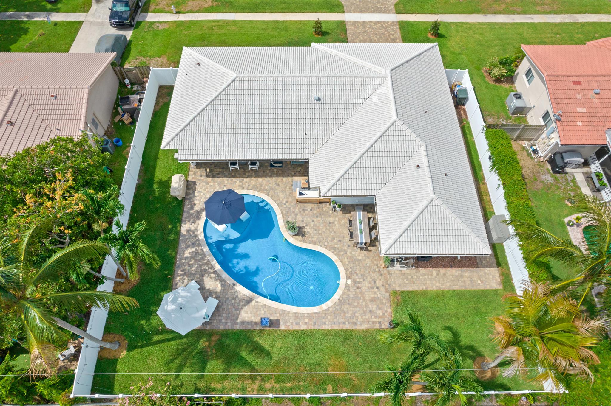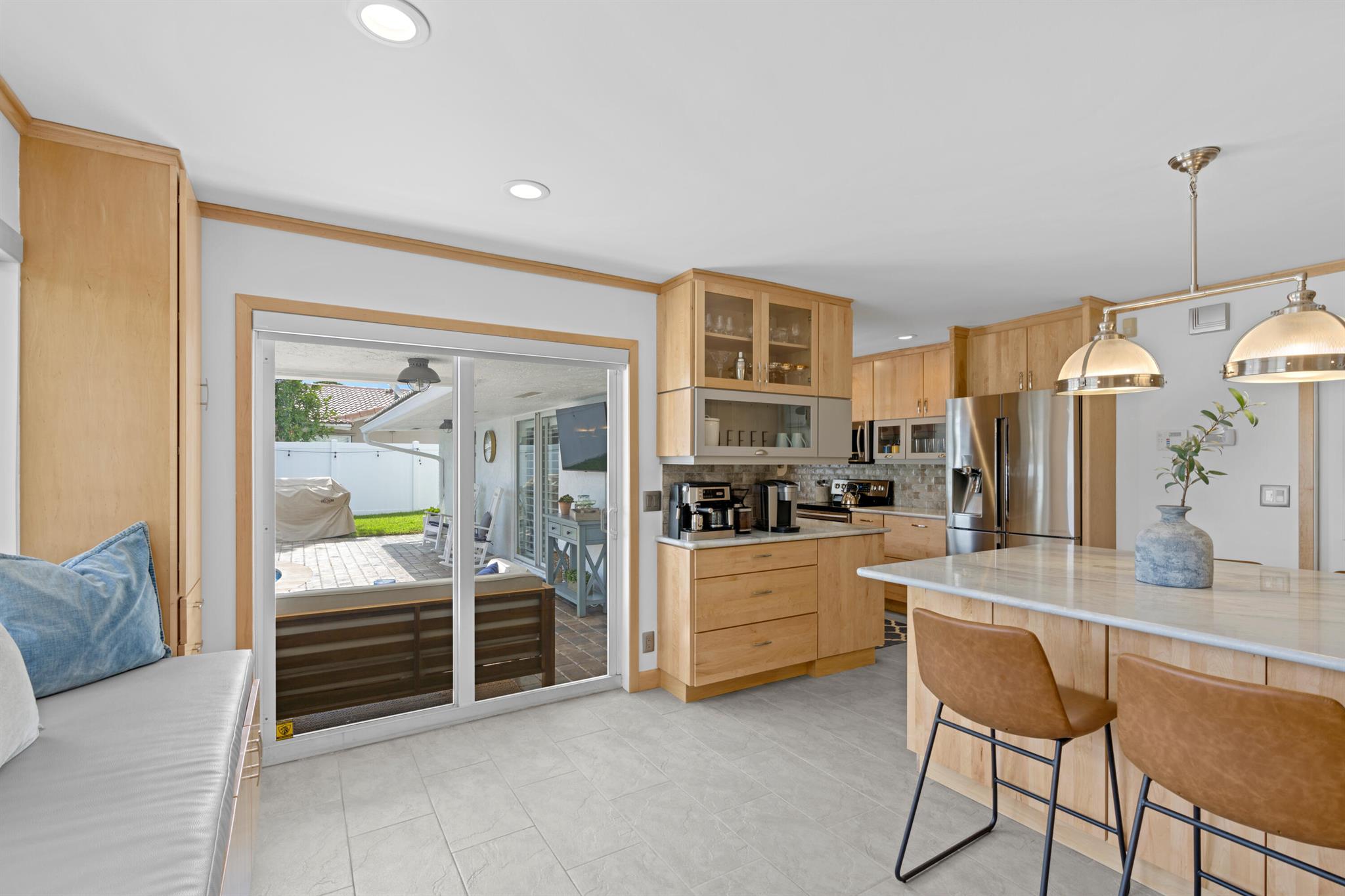 Gorgeous turnkey pool home in east Boca Raton with a completely fenced in yard on a large lot. This 3/2 home has been updated with a new primary bedroom and bathroom, custom barn doors, a walk-in closet with custom built-ins and all new flooring (2021). The primary bath was completely renovated with double sinks, quartz countertops, shiplap and separate walk-in shower with a custom quartz built-in bench. The interior has been freshly painted with new moldings, baseboards, new ceiling fans throughout, all new a/c ducts (2023), new hardware throughout, new flooring in all the bedrooms and a new full-size washer/dryer inside. Water softener system (2021) and new AC (2019). The updated large extended eat-in kitchen with granite countertops, an oversized island, custom maple cabinetry with
