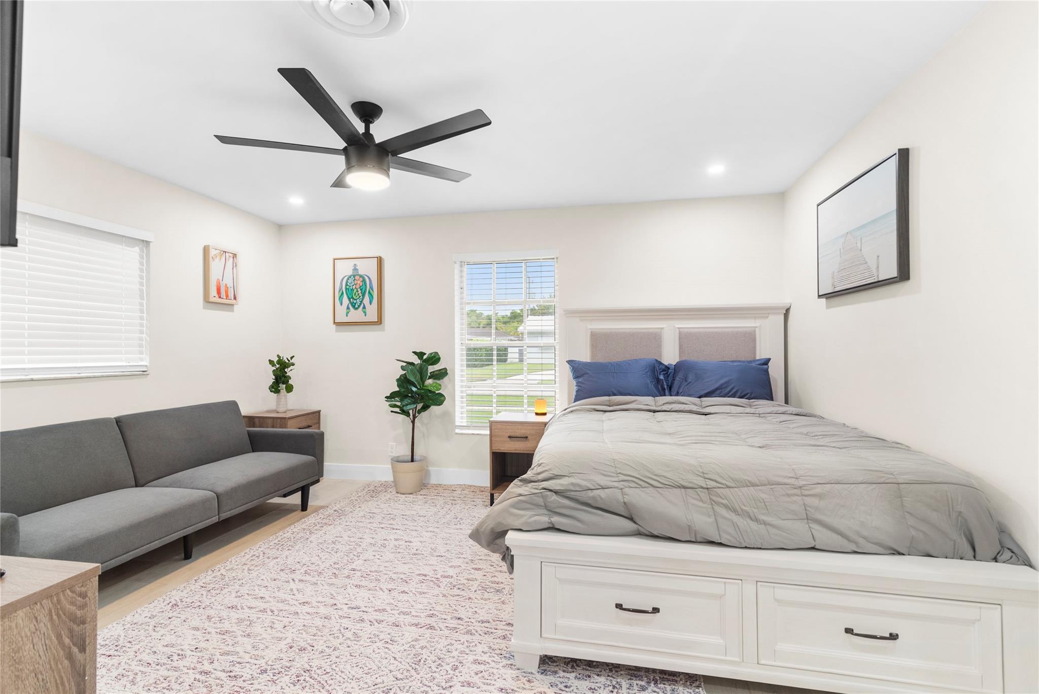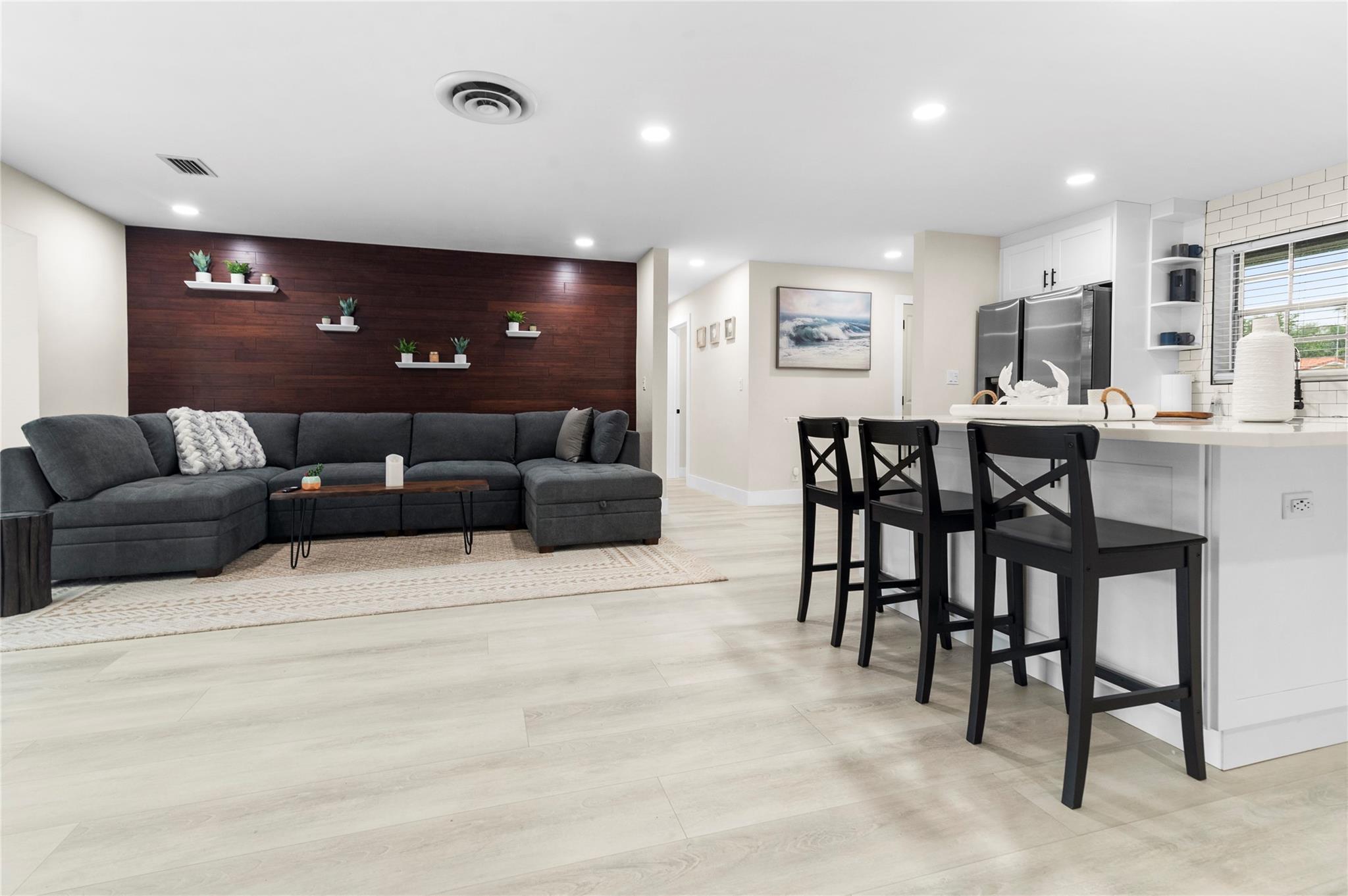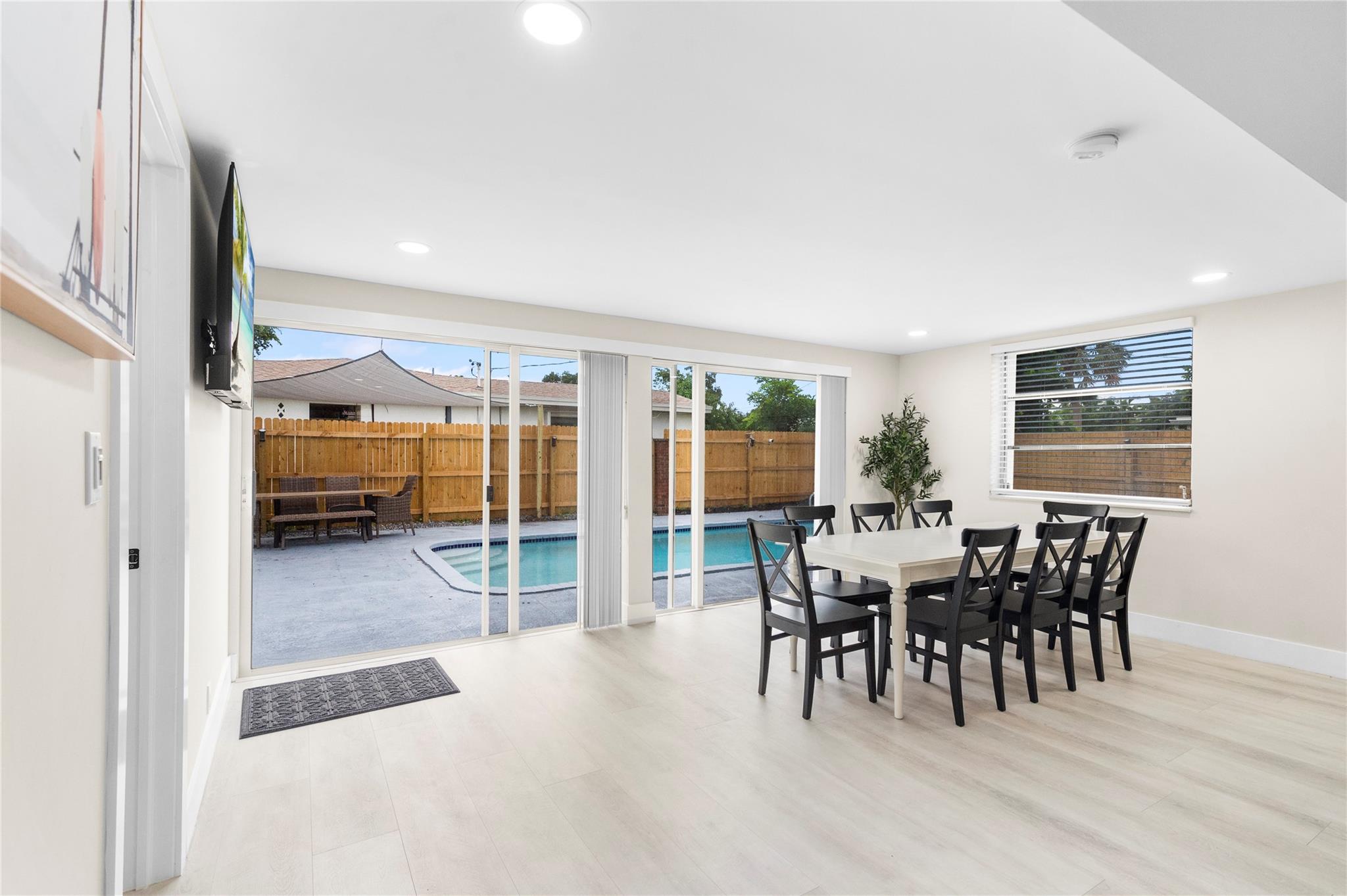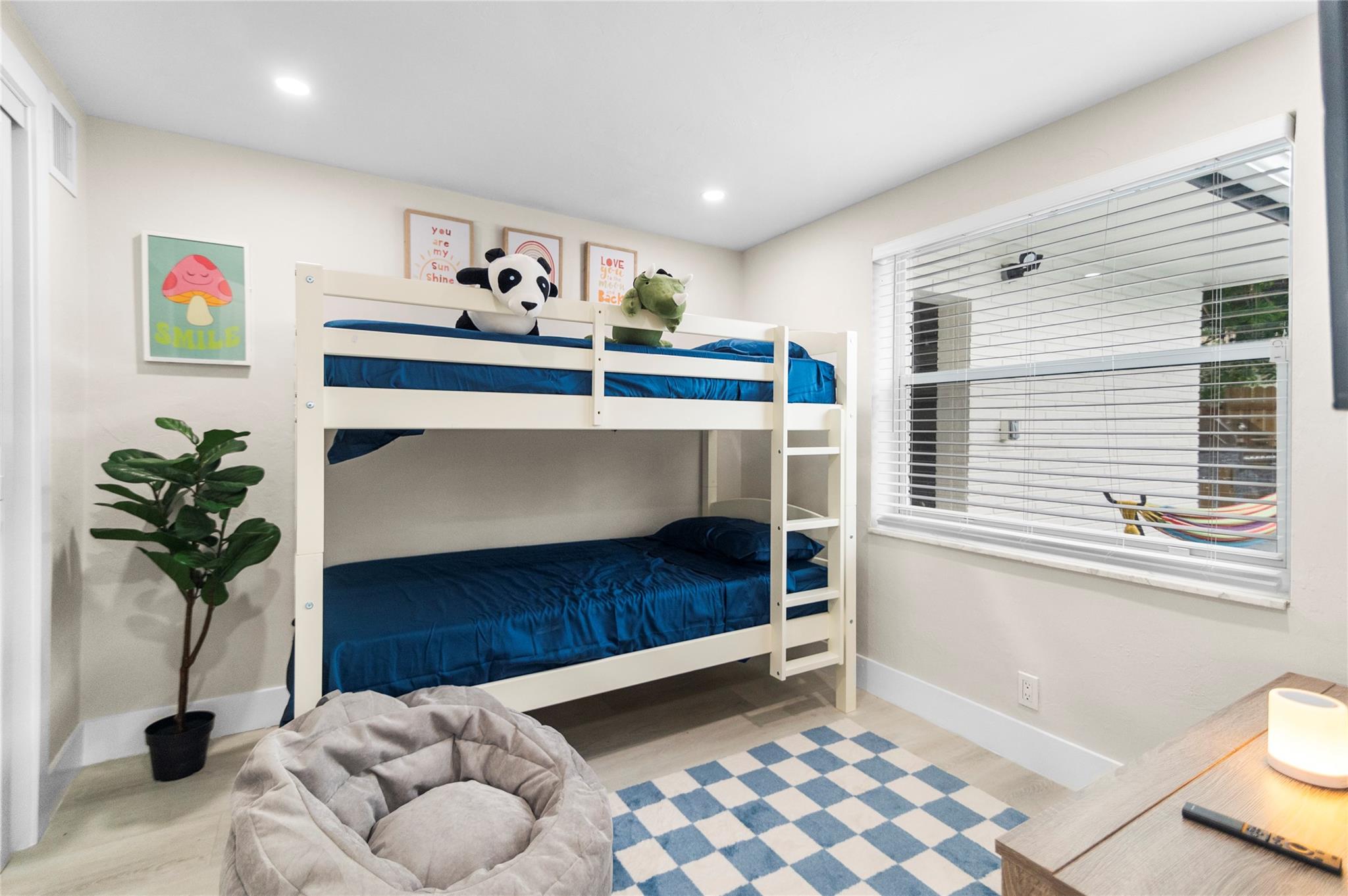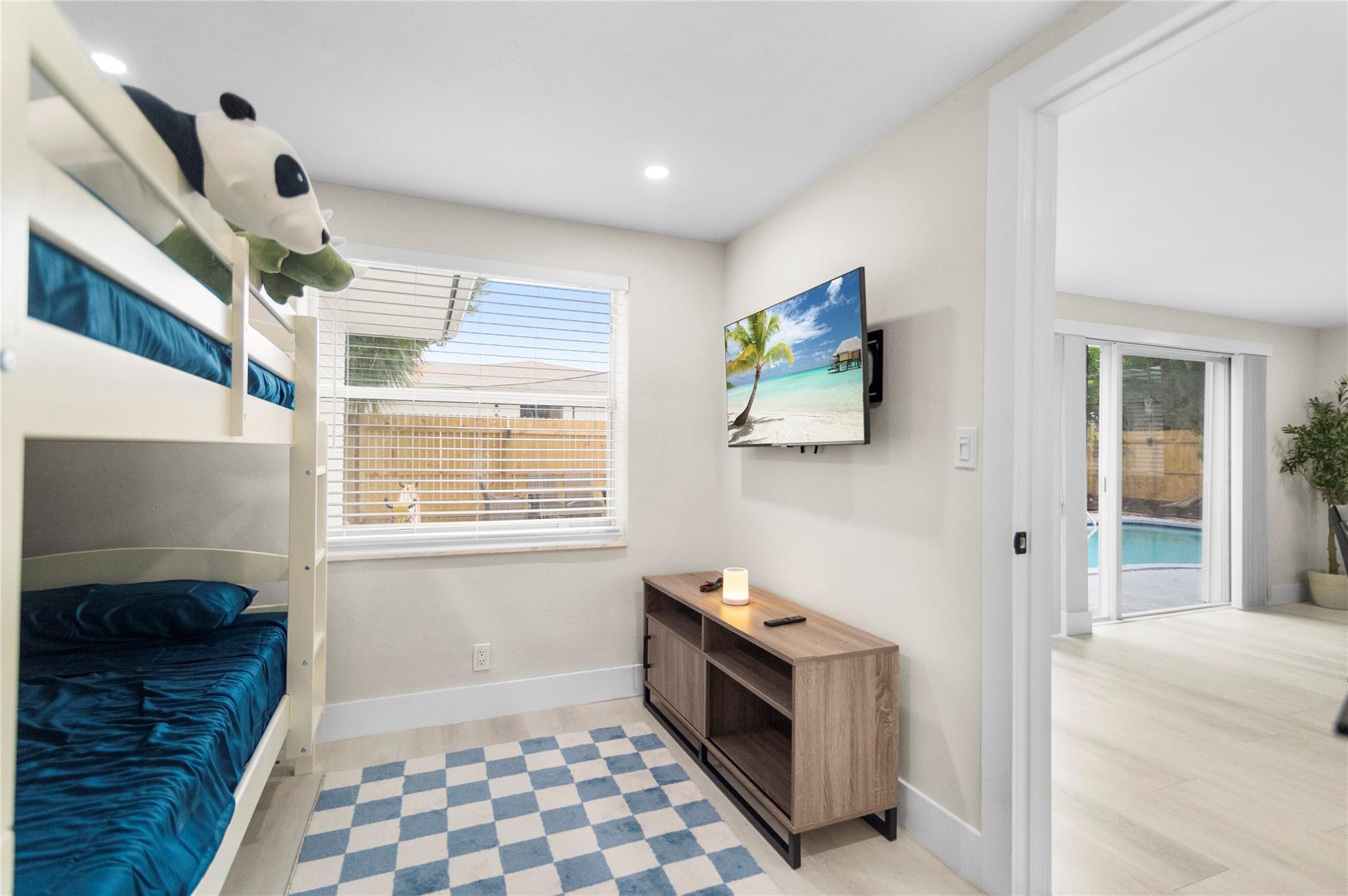 Beautifully renovated ranch-style home. Safe, family-friendly vibrant community. Fully renovated as of 2023 and is an ideal turn-key investment opportunity. Property comes fully furnished and stocked for immediate Airbnb use. Air-temperature pool with removable security fence, 3-hole putting green, shaded canopy, fully fenced backyard and two gated entrances. Primary features a private bathroom with walk-in shower and rainfall showerhead; secondary bathroom has a soaking tub. Open-concept living room offers indoor/outdoor living with direct access to both the patio and kitchen/dining room. Updated kitchen with new cabinets, soft-close drawers and doors, quartz counters and a breakfast bar that seats 3. Whether you’re looking to make this your home or a lucrative investment property