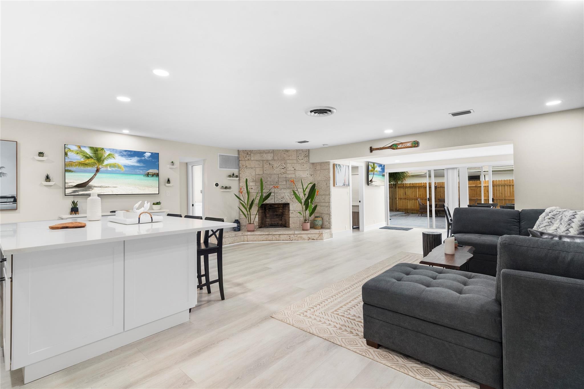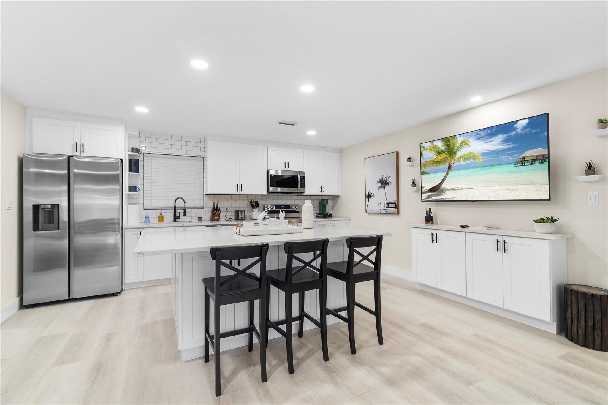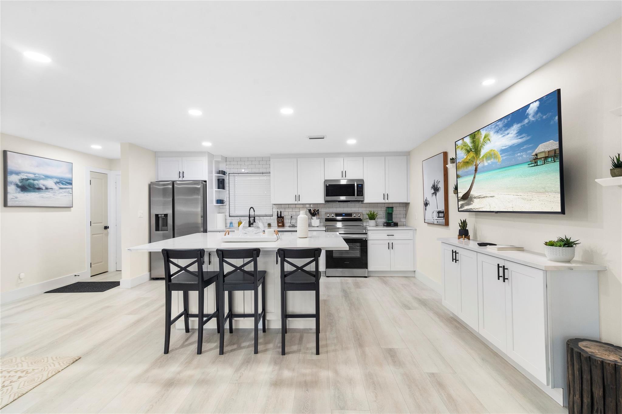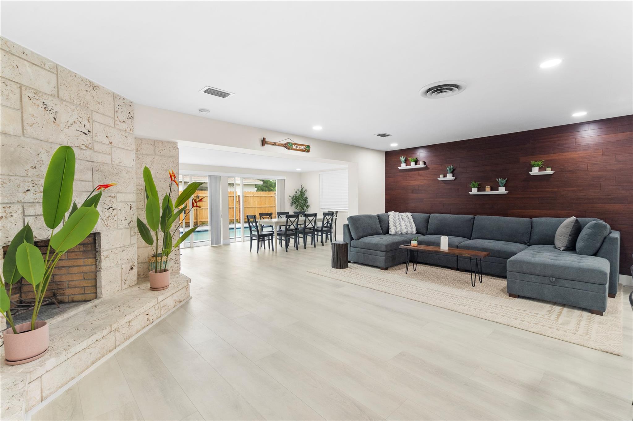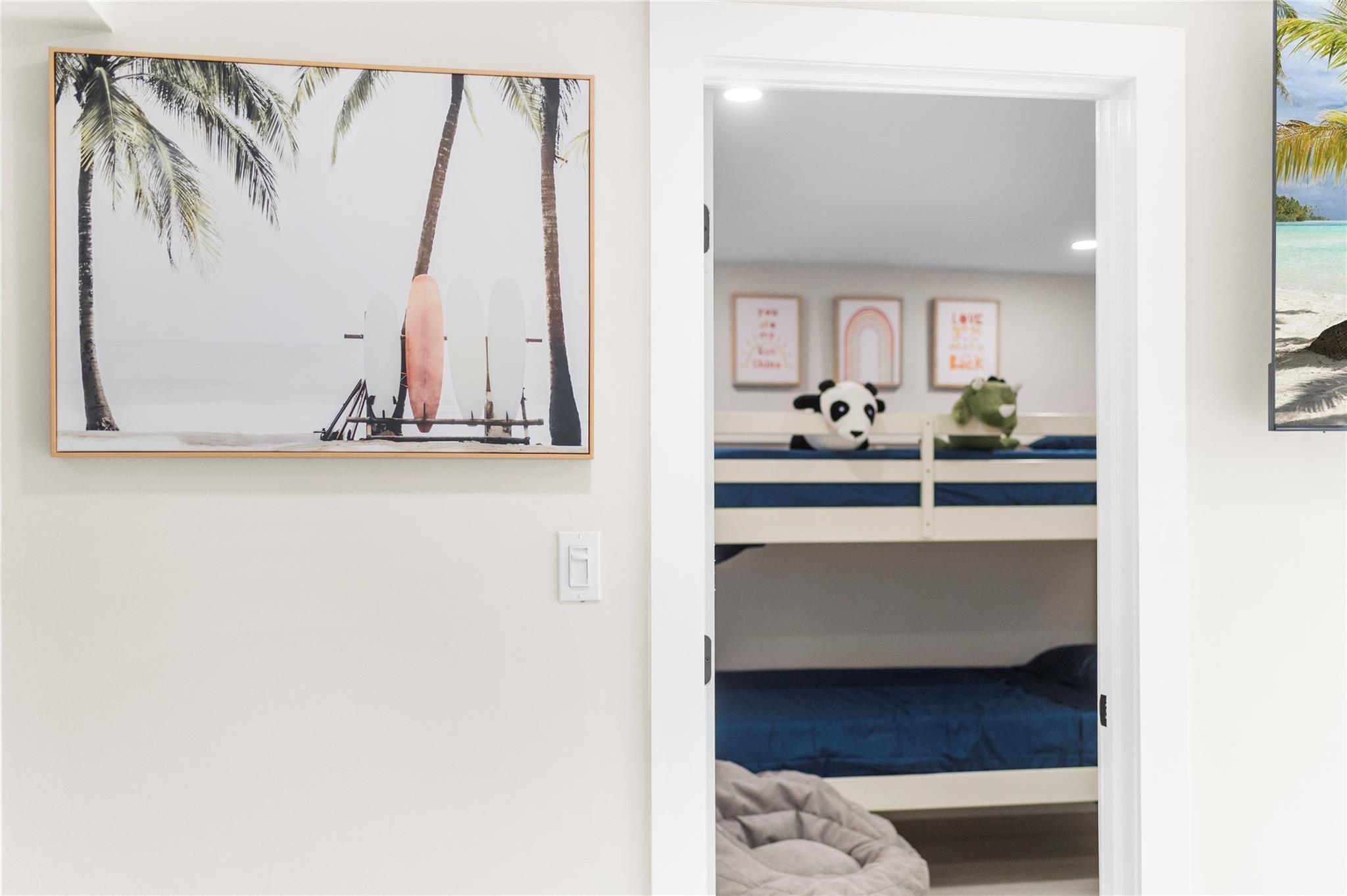 Beautifully renovated ranch-style home. Safe, family-friendly vibrant community. Fully renovated as of 2023 and is an ideal turn-key investment opportunity. Property comes fully furnished and stocked for immediate Airbnb use. Air-temperature pool with removable security fence, 3-hole putting green, shaded canopy, fully fenced backyard and two gated entrances. Primary features a private bathroom with walk-in shower and rainfall showerhead; secondary bathroom has a soaking tub. Open-concept living room offers indoor/outdoor living with direct access to both the patio and kitchen/dining room. Updated kitchen with new cabinets, soft-close drawers and doors, quartz counters and a breakfast bar that seats 3. Whether you’re looking to make this your home or a lucrative investment property