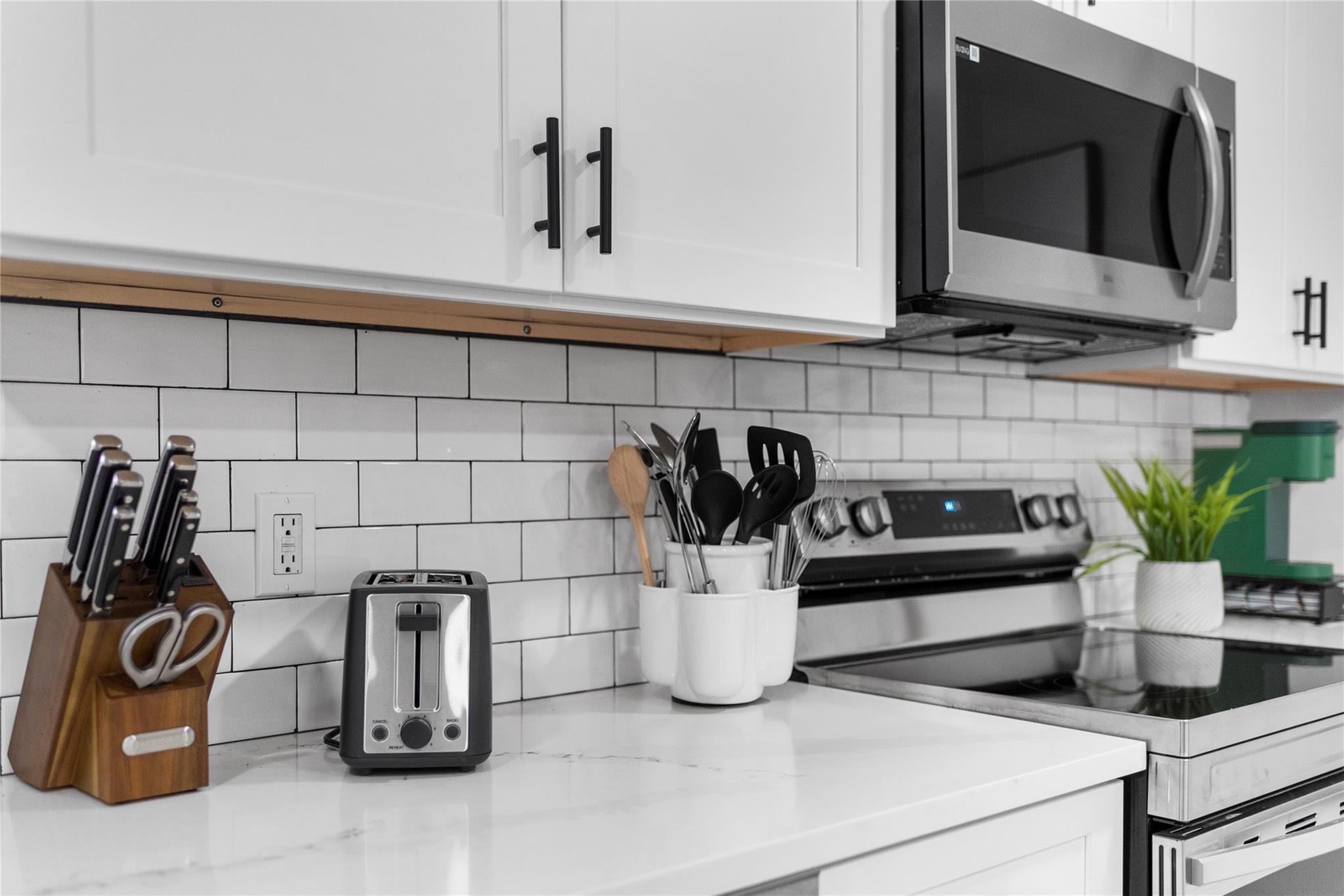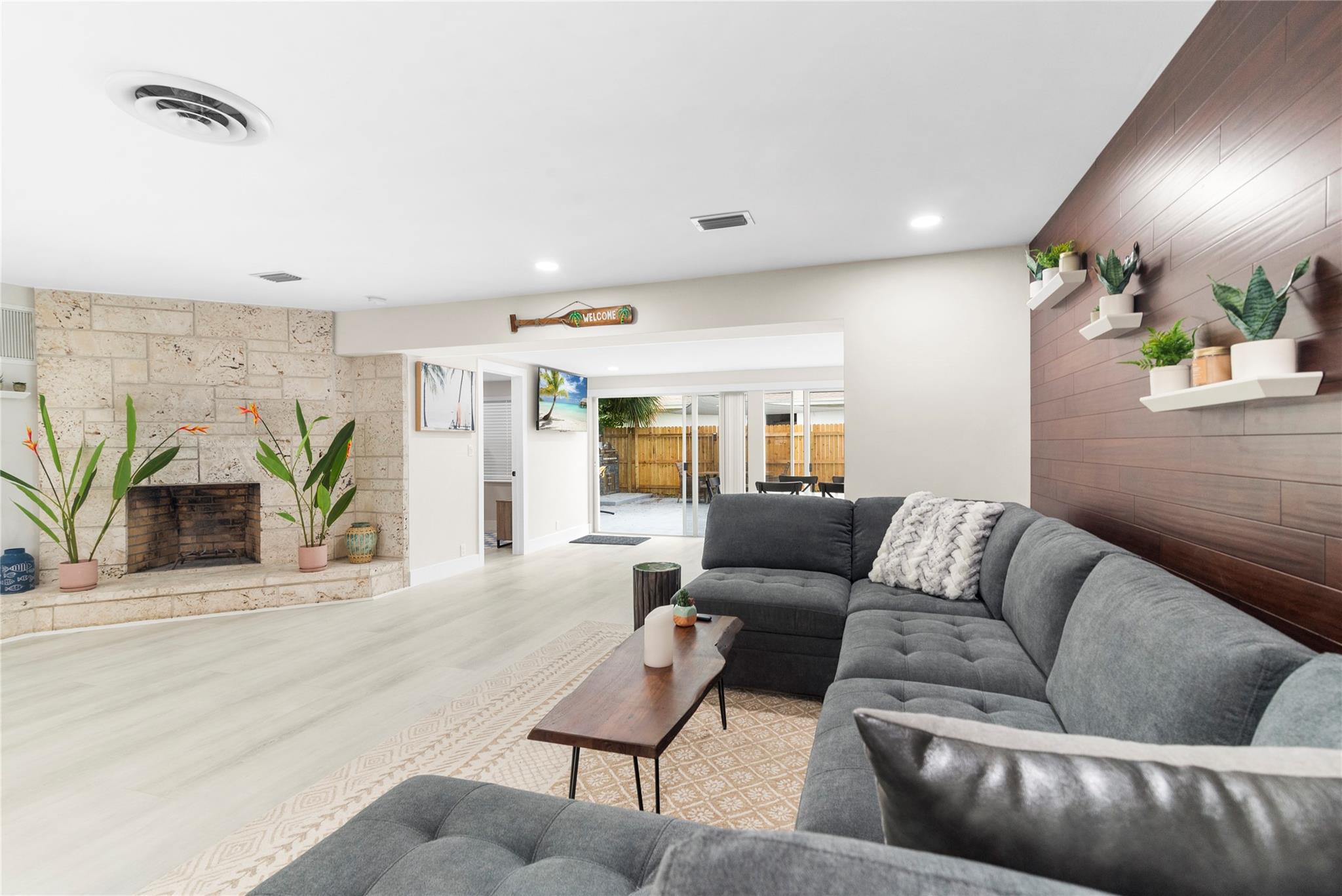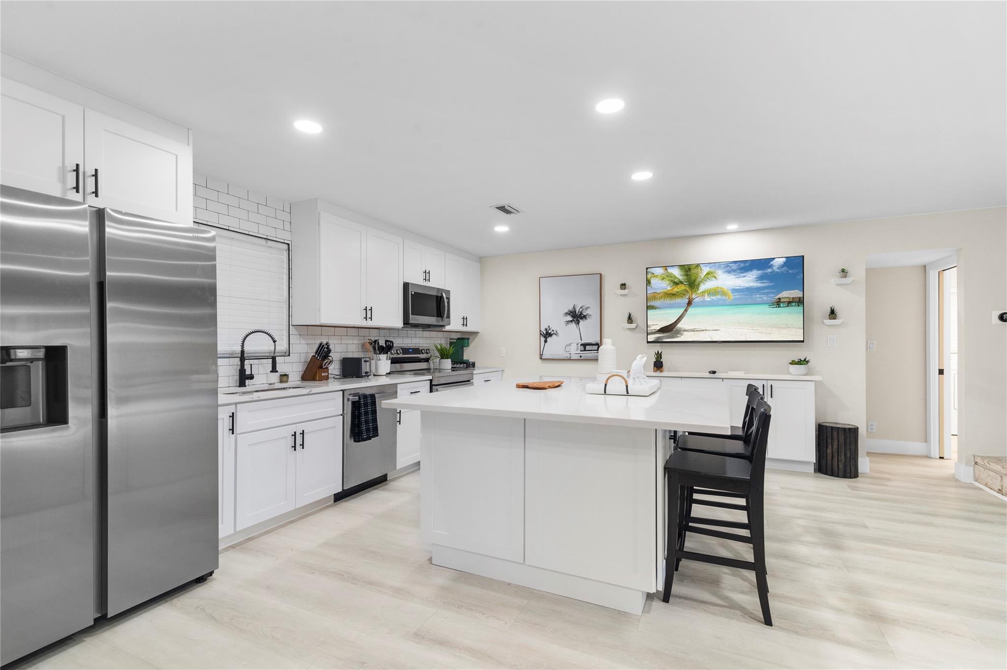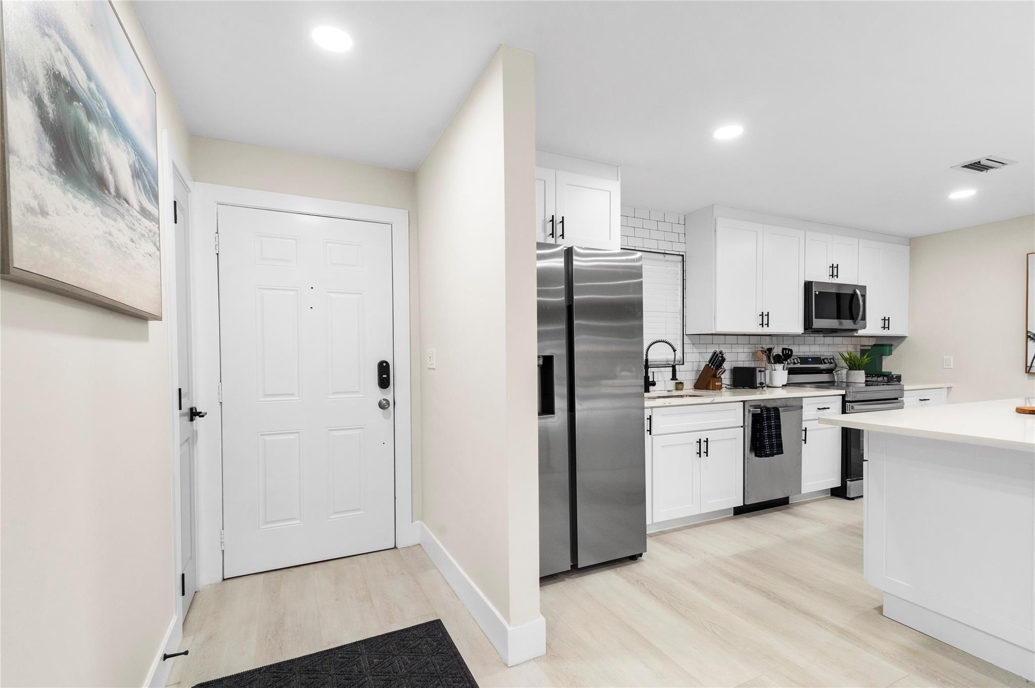 Beautifully renovated ranch-style home. Safe, family-friendly vibrant community. Fully renovated as of 2023 and is an ideal turn-key investment opportunity. Property comes fully furnished and stocked for immediate Airbnb use. Air-temperature pool with removable security fence, 3-hole putting green, shaded canopy, fully fenced backyard and two gated entrances. Primary features a private bathroom with walk-in shower and rainfall showerhead; secondary bathroom has a soaking tub. Open-concept living room offers indoor/outdoor living with direct access to both the patio and kitchen/dining room. Updated kitchen with new cabinets, soft-close drawers and doors, quartz counters and a breakfast bar that seats 3. Whether you’re looking to make this your home or a lucrative investment property