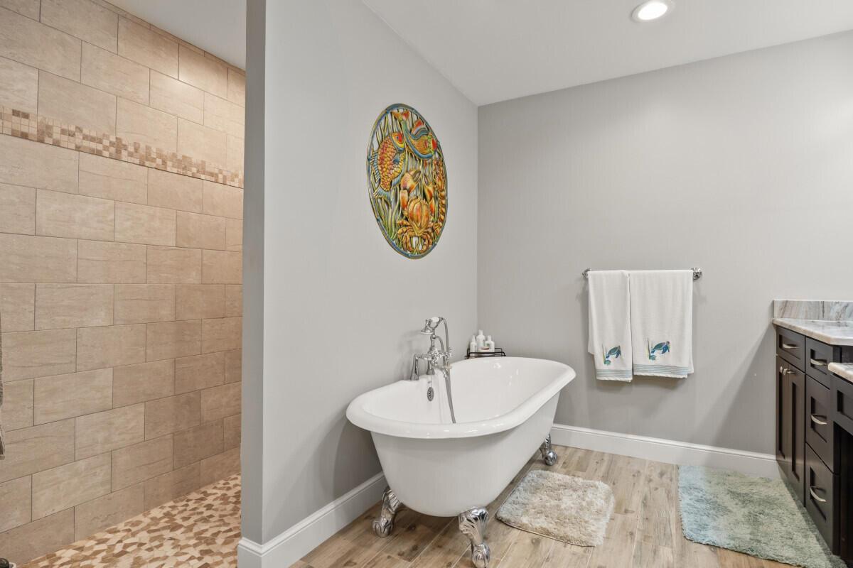 Welcome to Jupiter Beach Paradise! You will fall in love with this completely RENOVATED Bluffs home the moment you arrive All bathrooms have been completely renovated. The primary has a free standing tub with separate shower .The home has been painted inside/and out with new 6” baseboards, new shaker doors and smooth ceilings. You will also find all new light fixtures, fans, and washer/dryer kitchen appliances A/C and heating system. Walking distance to the Jupiter/Juno Beach, restaurants, shopping and Publix. Jupiter dog park right inside the neighbor.