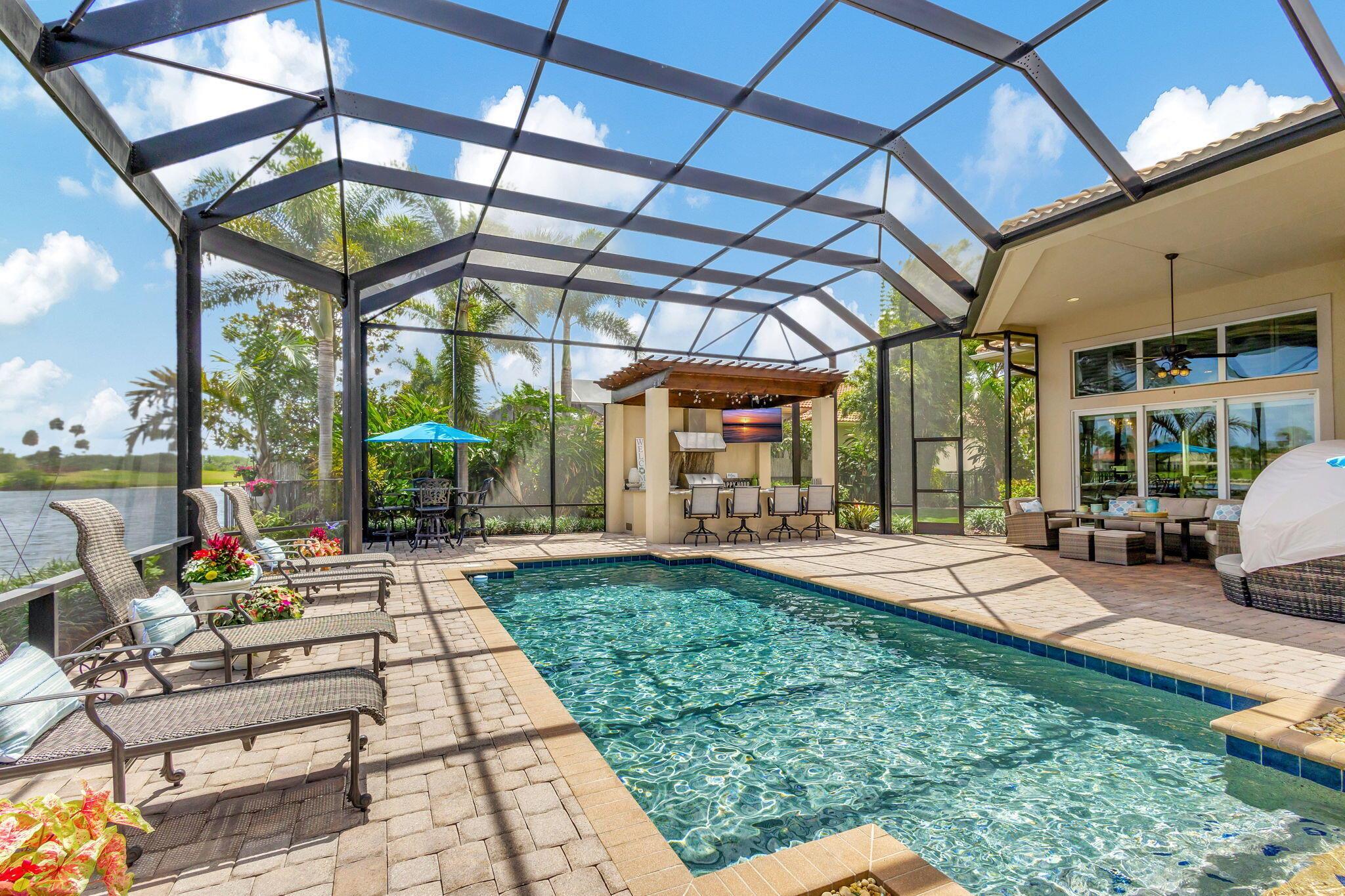 MAGNIFICENT AND RARE TRIFECTA VIEW OF GOLF, LAKE AND PRESERVE ON A PRIME LOT! THIS HOME OFFERS A FULL GOLF OR ASSOCIATE SPORTS MEMBERSHIP. SKIP THE 4 YEAR WAIT!!!ENJOY THE UNMATCHED LARGE OUTDOOR LIVING SPACE WITH A POOL, SPECTACULAR COVERED OUTDOOR KITCHEN AND BAR. THIS IS A GEM FOR ENTERTAINING.STEP INTO THIS EXPANDED CARINA MODEL 4/5 BEDROOM, 5 AND A HALF BATHS PLUS HOME OFFICE WITH MARBLE FLOORS AND 28FT CEILINGS IN THE GRAND ENTRY. THE SPACIOUS FIRST FLOOR MASTER BEDROOM INCLUDES A SITTING AREA , HIS AND HER BATHROOMS.THE FIRST FLOOR SECOND BEDROOM W/ENSUITE BATH HAS A PRIVATE OUTDOOR PATIO. JUPITER COUNTRY CLUB OFFERS AN EXCEPTIONAL LIFESTYLE OF GOLF, TENNIS, FITNESS CENTER, 2 POOLS, CLUBHOUSE AND DINING!