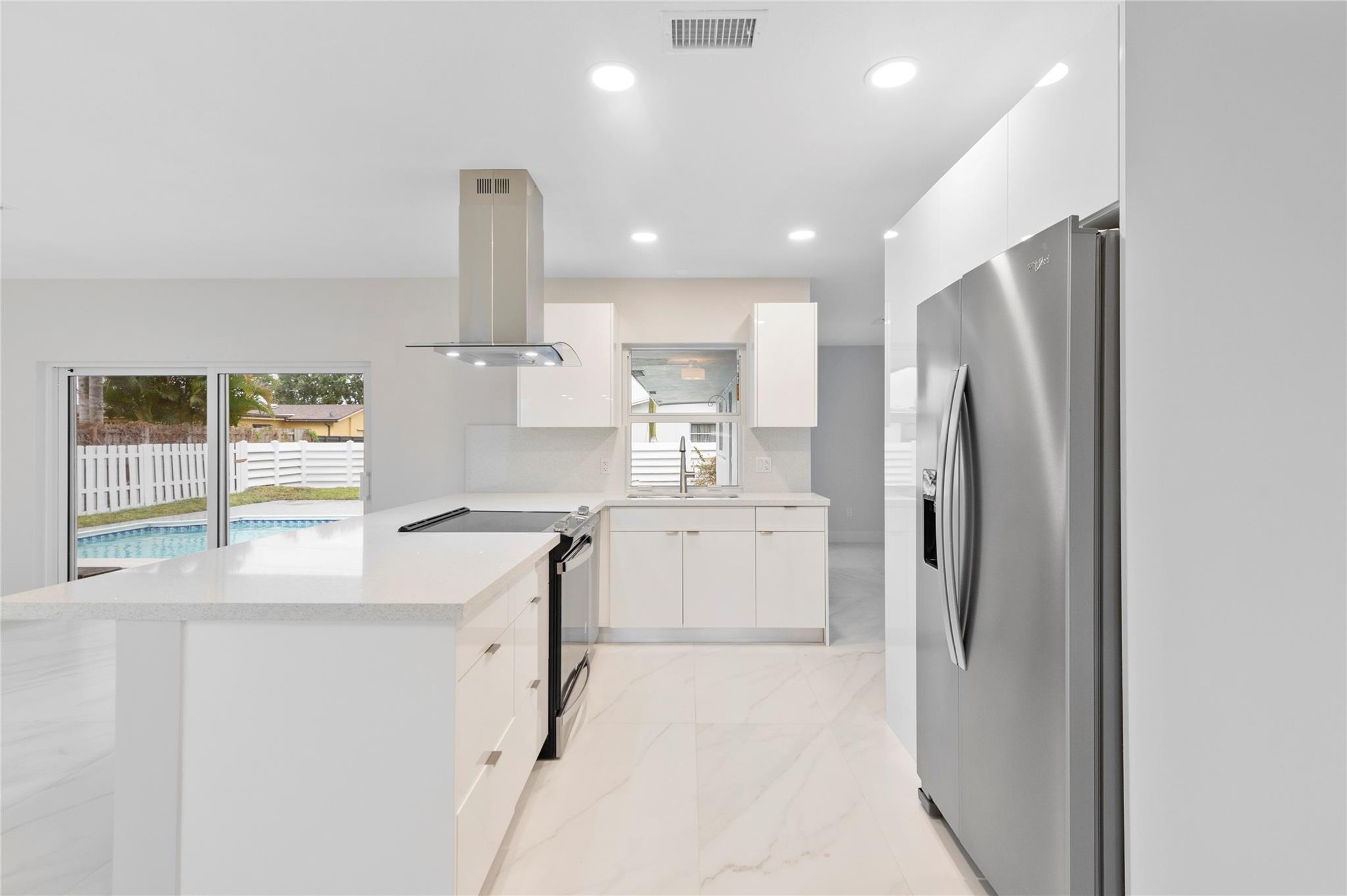 Beautifully updated 4 bedroom, 2 bathroom POOL home located on a prime corner lot with no HOA. Roof was replaced in 2020. Updates include tile flooring throughout with modern baseboards, fresh paint, new kitchen cabinets with quartz counters and stainless steel appliances with an over the range hood. Both bathrooms have new tile, vanities, mirrors, lights, fixtures and glass shower doors. Fully fenced in, private backyard. Walking distance to Windmill Park, The Coconut Creek Community Center and Coconut Creek Elementary School. Just 7 miles to the beach! NO HOA Approval.