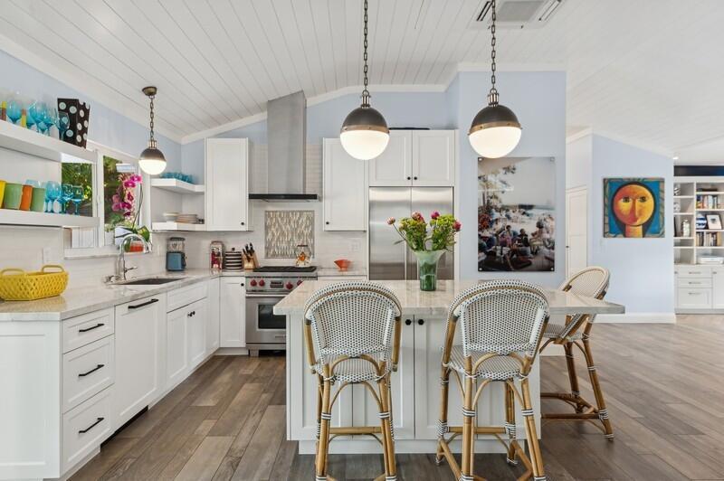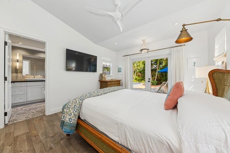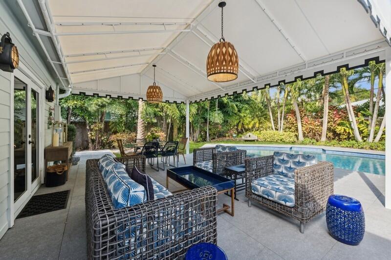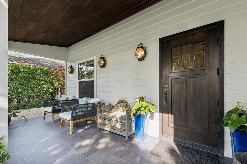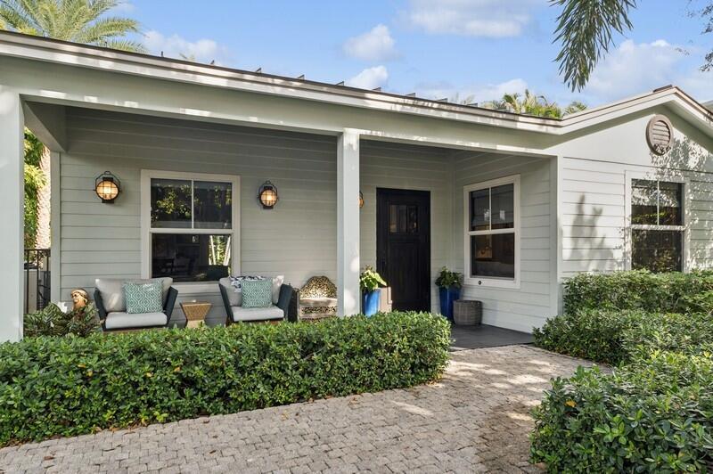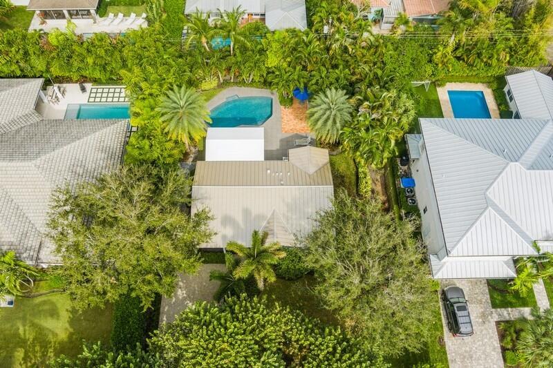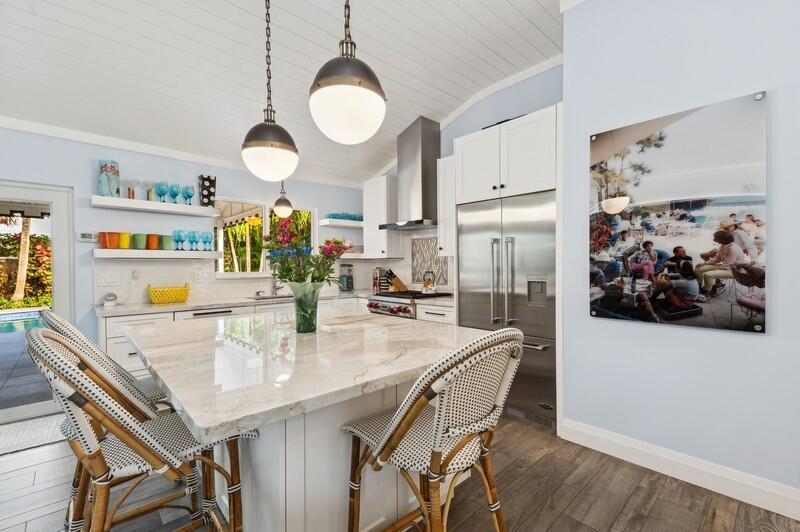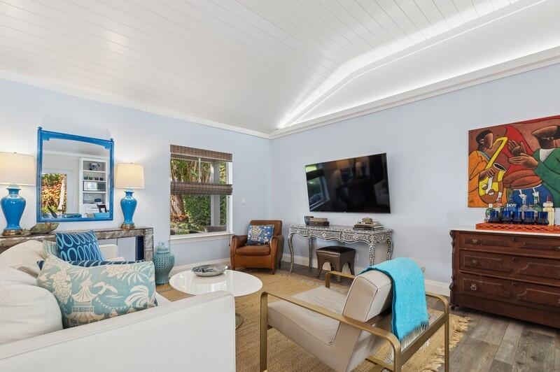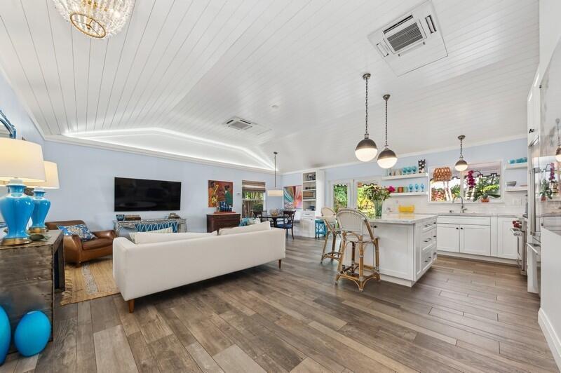 This fabulous 2-bedroom plus den home in the coveted Lake Ida neighborhood was impeccably remodeled in 2016 with no expense spared. Every detail of this home combines modern upgrades with timeless charm. Inside, the gorgeous porcelain tile ”wood” floors mud set and exquisite lighting by Restoration Hardware, Visual Comfort, and Hudson Valley create a warm and inviting ambiance. The chef’s dream kitchen features quartzite countertops, a Wolf gas range, a Miele dishwasher, and Fisher & Paykel refrigerator, seamlessly blending style and functionality. Modern updates include a durable metal roof, updated plumbing and electric systems, a 4-zone AC system, impact glass throughout, and a tankless water heater for energy efficiency and peace of mind. The second bathroom is enhanced by a skylight