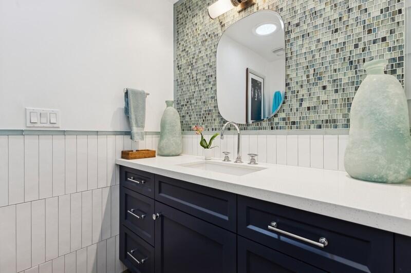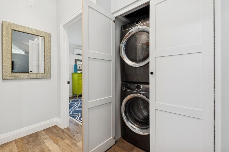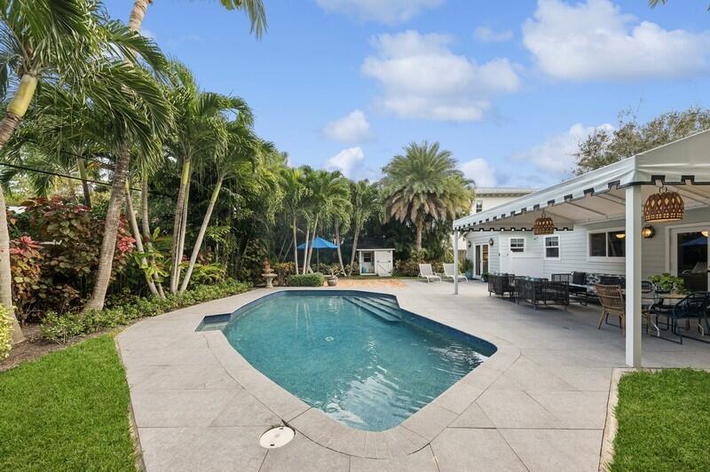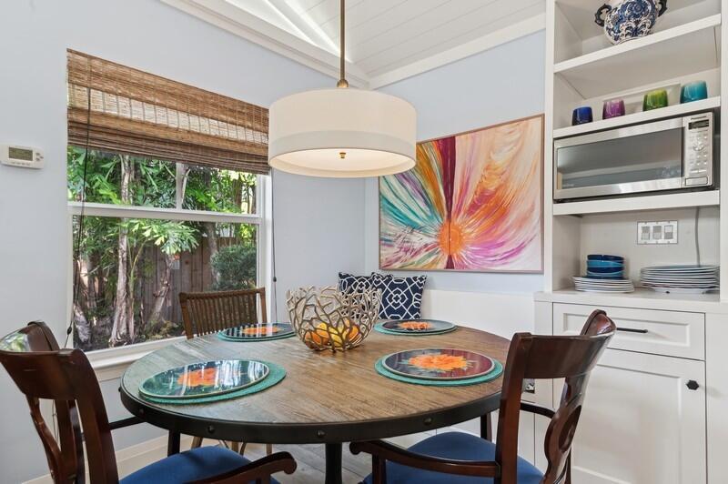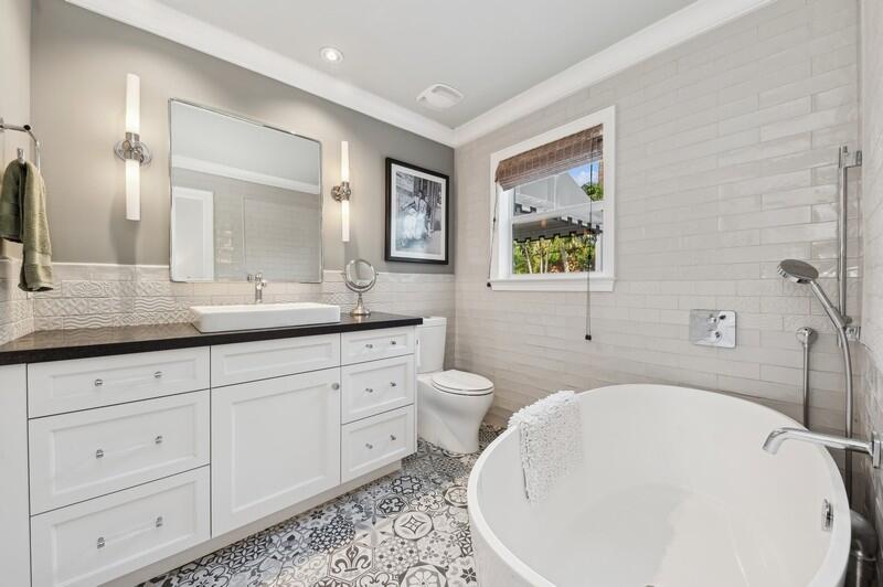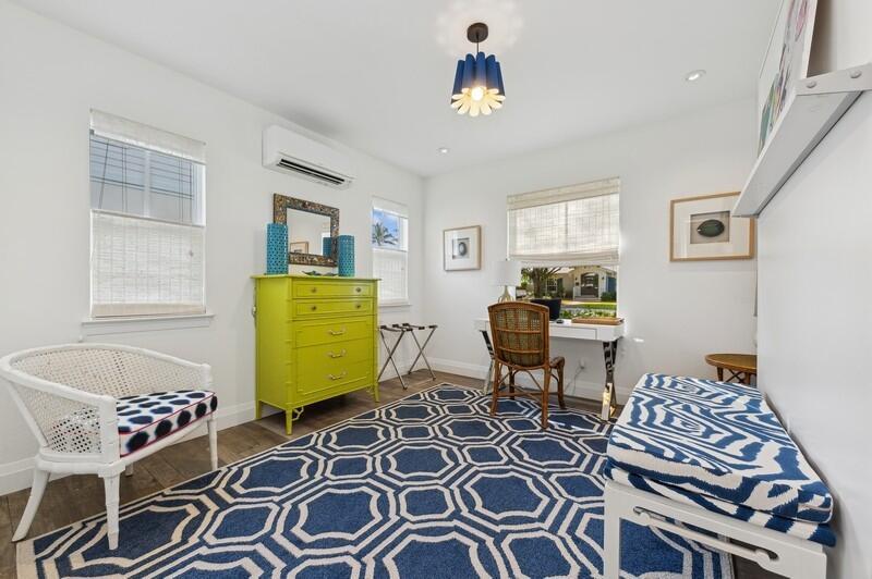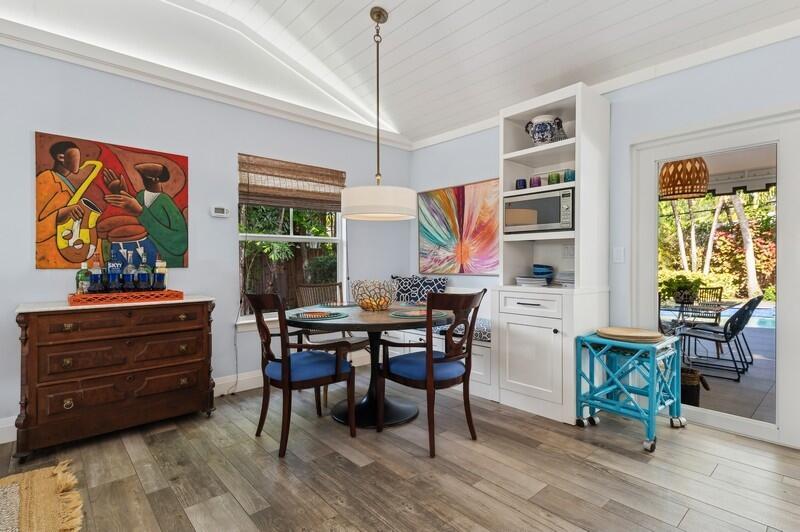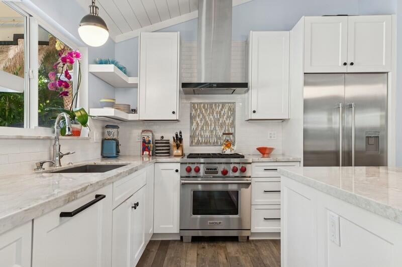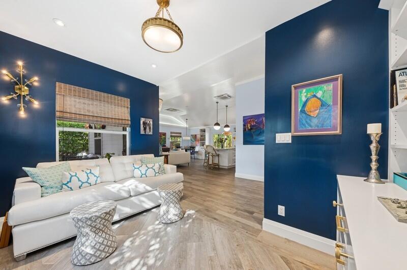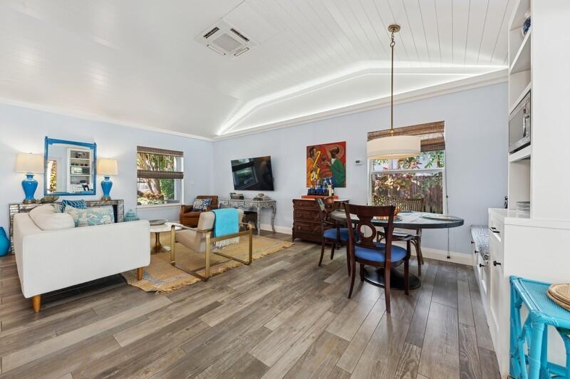 This fabulous 2-bedroom plus den home in the coveted Lake Ida neighborhood was impeccably remodeled in 2016 with no expense spared. Every detail of this home combines modern upgrades with timeless charm. Inside, the gorgeous porcelain tile ”wood” floors mud set and exquisite lighting by Restoration Hardware, Visual Comfort, and Hudson Valley create a warm and inviting ambiance. The chef’s dream kitchen features quartzite countertops, a Wolf gas range, a Miele dishwasher, and Fisher & Paykel refrigerator, seamlessly blending style and functionality. Modern updates include a durable metal roof, updated plumbing and electric systems, a 4-zone AC system, impact glass throughout, and a tankless water heater for energy efficiency and peace of mind. The second bathroom is enhanced by a skylight