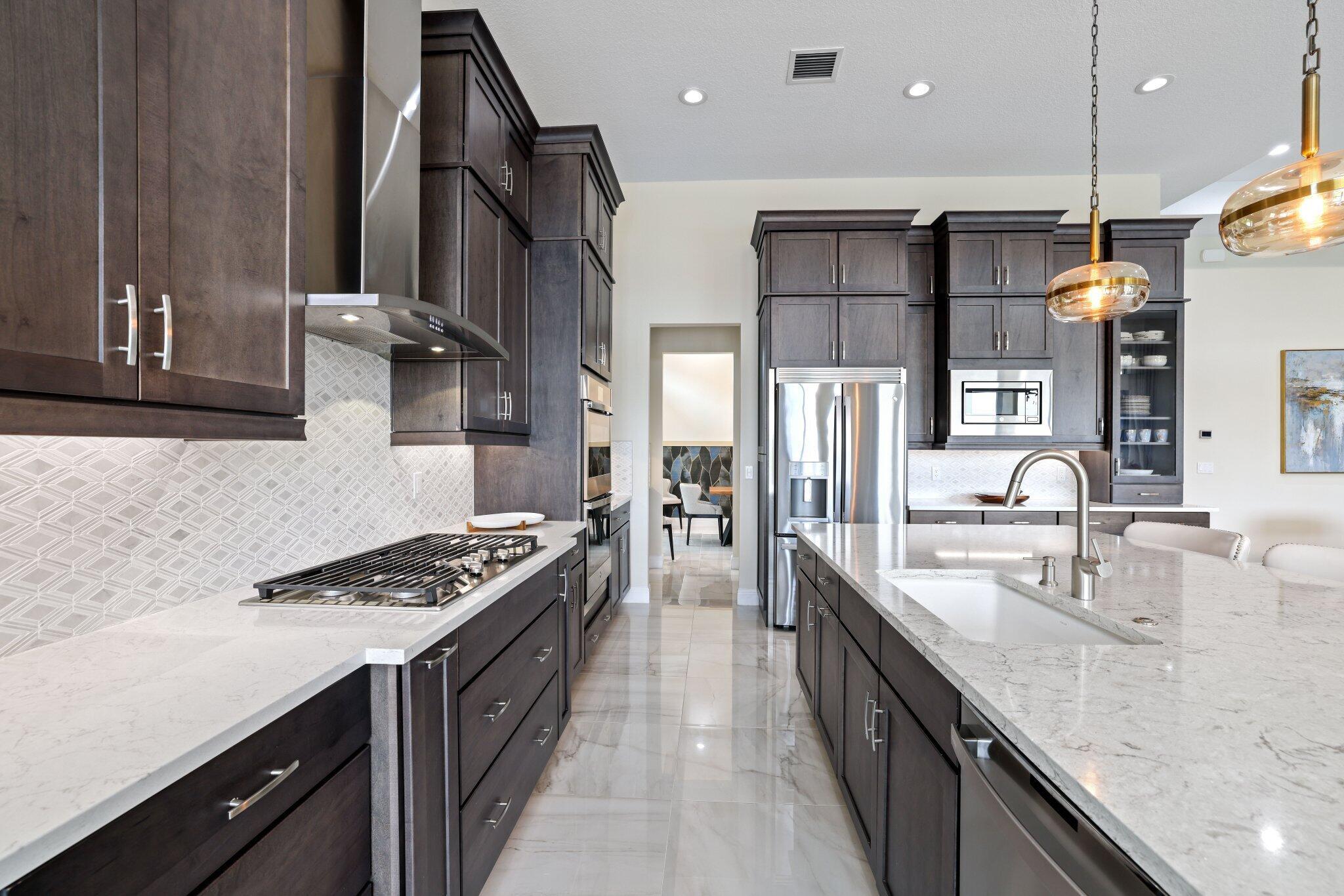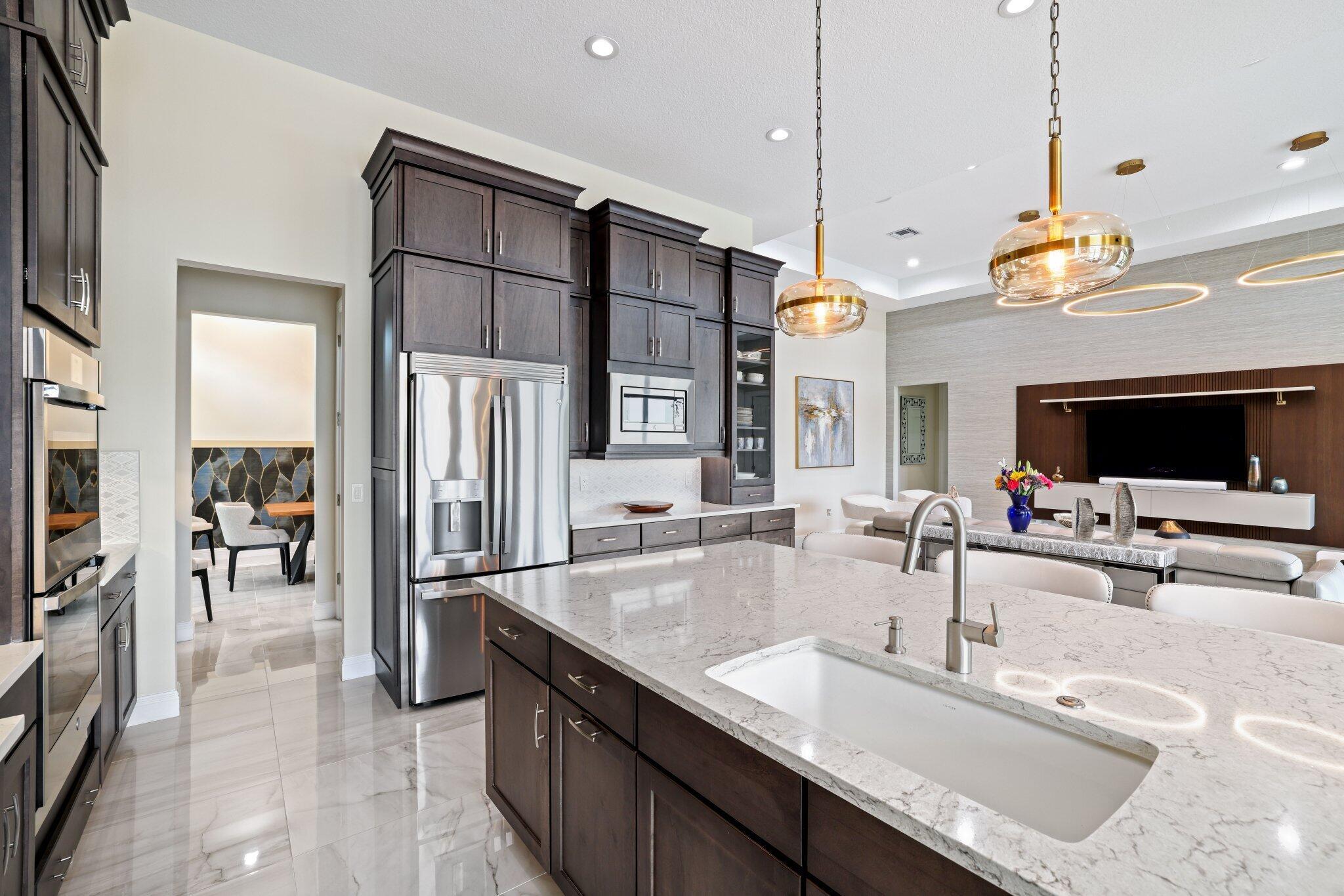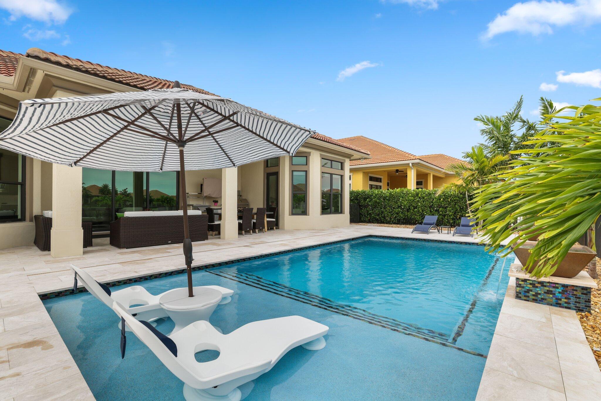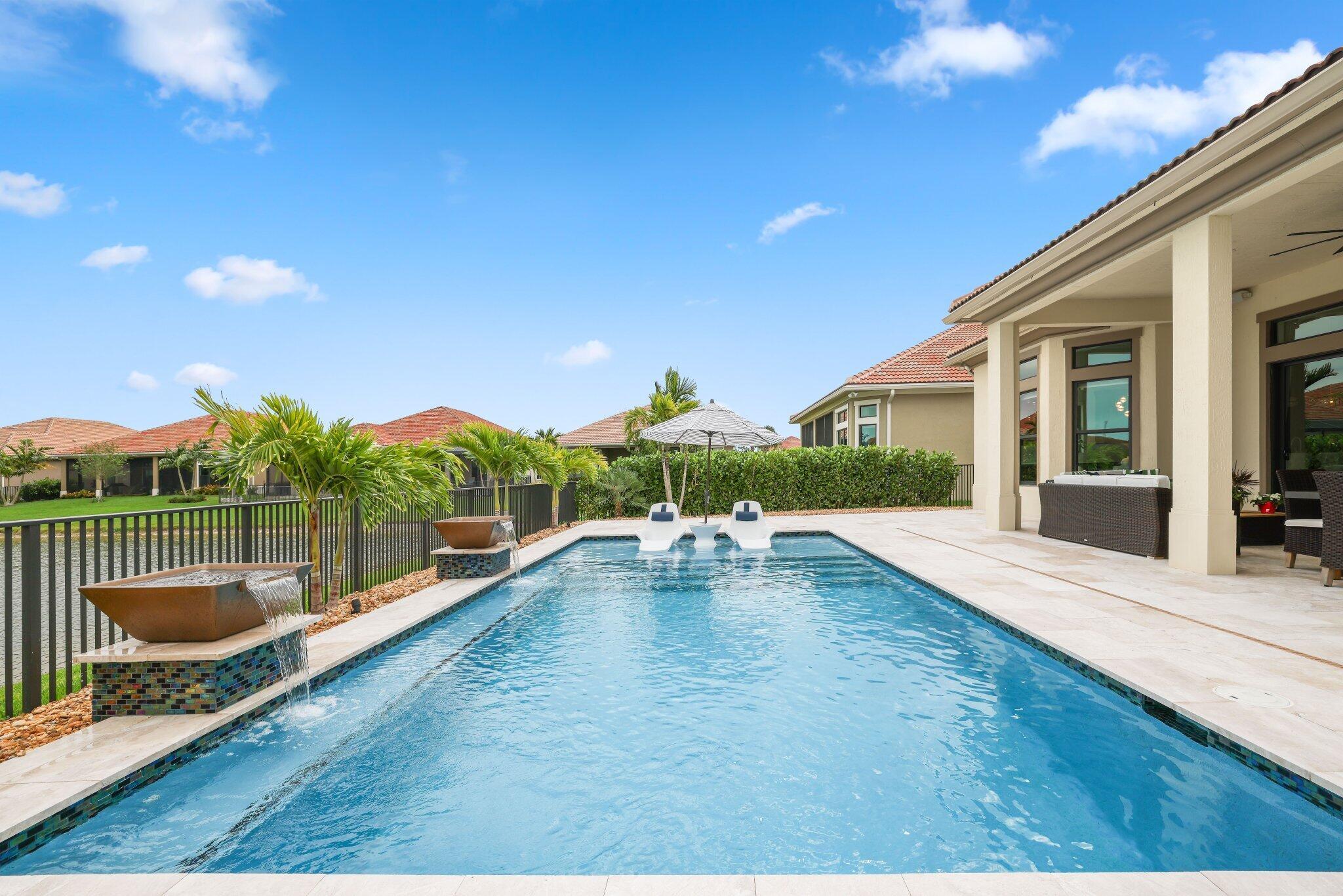 Welcome to this Elegant Waterfront Pool residence located in the community of Four Seasons Parkland. This designer-appointed Coral model home offers a luxurious Florida living experience at its best. This captivating home features 3 bedrooms, an office/Den and 2.5 bathrooms, and boasts a generous 2896 square feet of living space. As you step inside the foyer, the home’s large marble porcelain flooring creates a grand first impression, leading you into the spacious living areas. The heart of this home is the gourmet kitchen, which is adorned with top-of-the-line appliances. The primary bedroom suite is a retreat in itself, offering a peaceful sanctuary with a lavish ensuite bathroom. The heated salt chlorinated pool and fenced backyard offer a private oasis with fabulous water views.