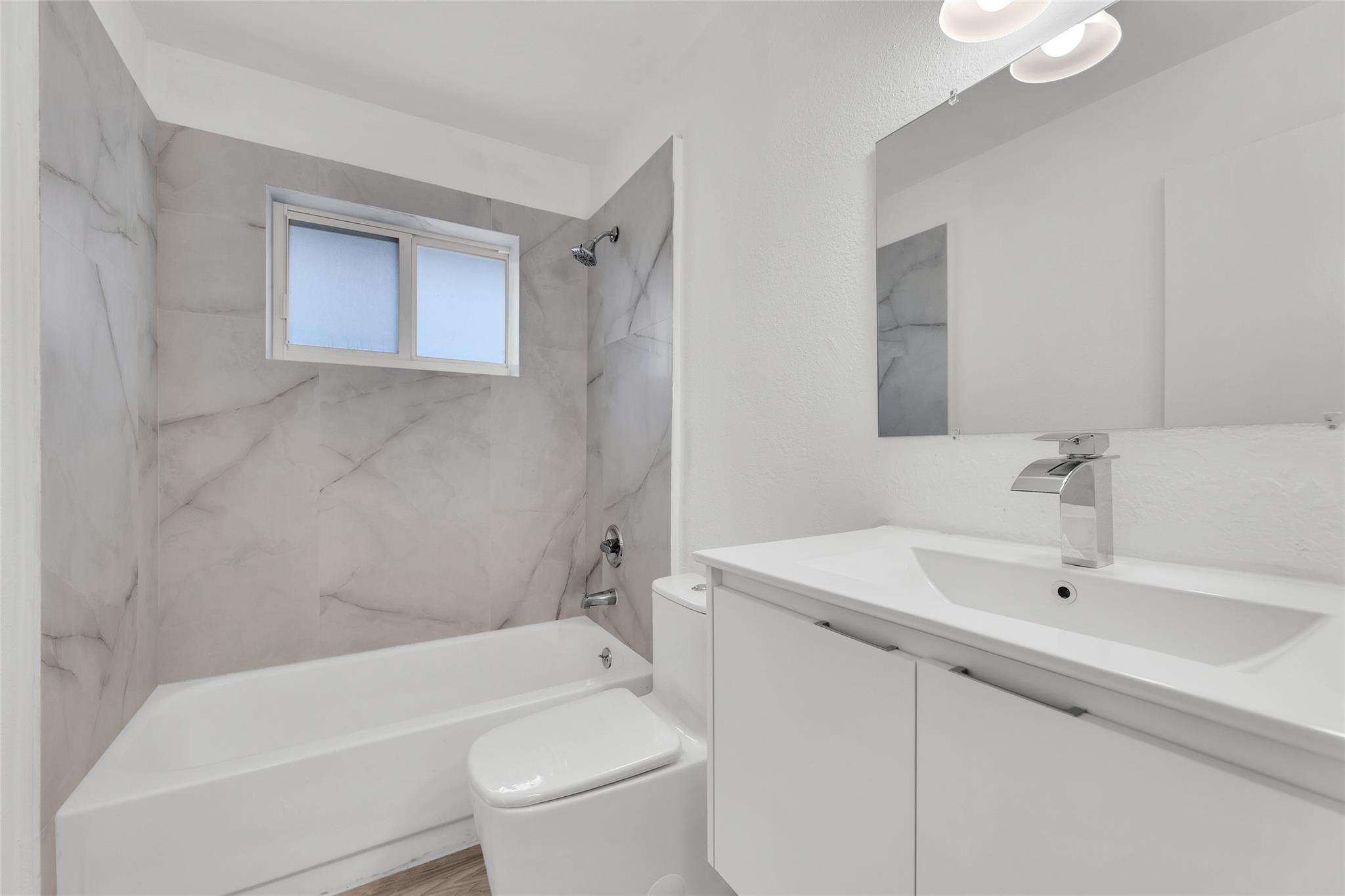 Charming 2-bedroom, 2-bathroom home with a spacious back yard. PRICED TO SELL!!! This newly renovated property features +/- 1,170 square feet of living space with modern finishes and an abundance of natural light. Property features impact windows and doors, fenced in yard and large driveway from ample parking. Centrally located in Oakland Park with easy access to Federal Highway and Interstate 95.(some photos may be virtually staged)