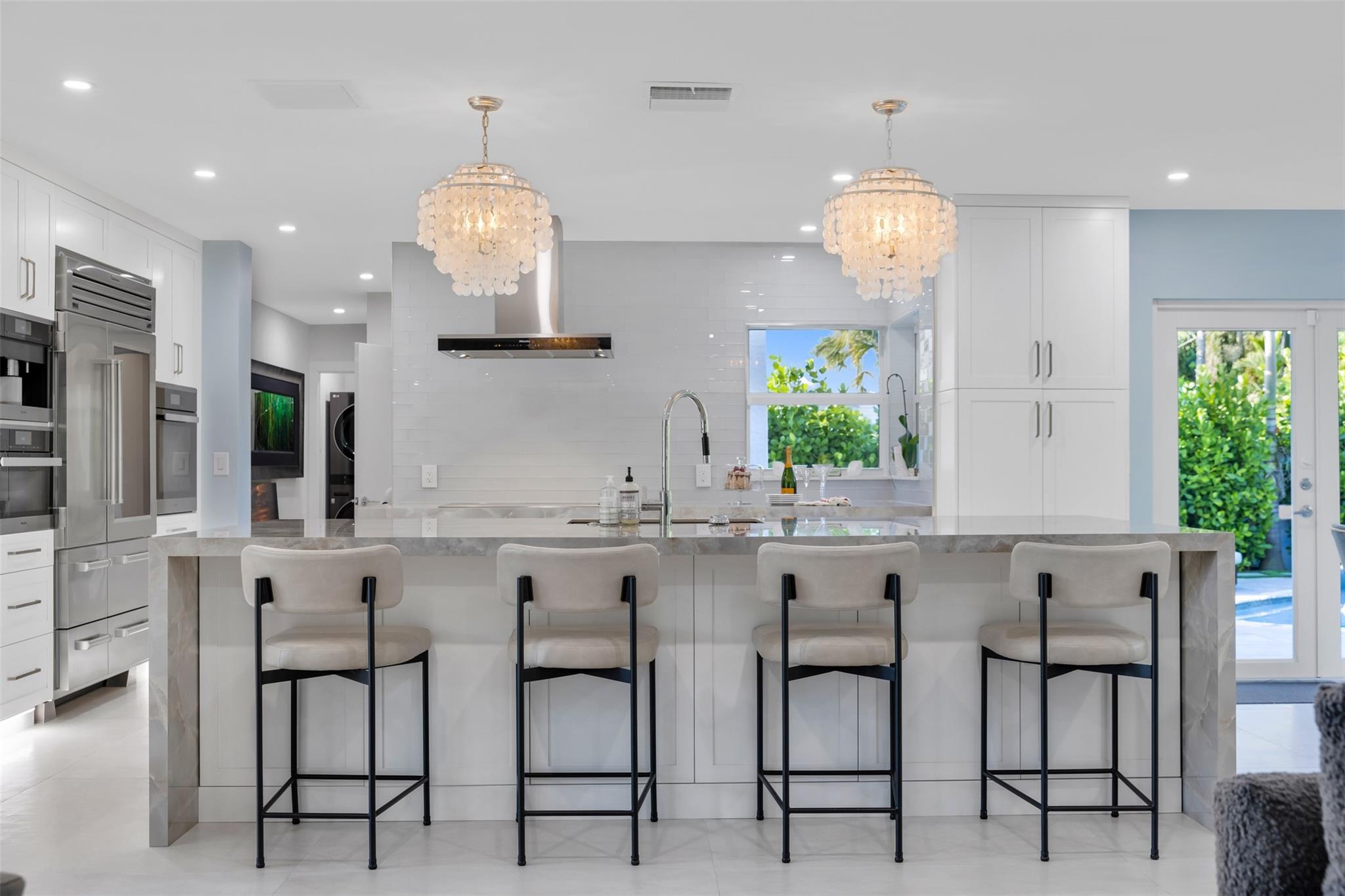 Discover the epitome of South Florida elegance in prestige Coral Ridge. This 3 bedroom, 3.5 bathroom private luxury residence offering a sprawling layout, designer chefs kitchen with a 131″ countertop, and seamless indoor-outdoor flow. Entertain effortlessly with a tropical backyard featuring a heated saltwater pool, outdoor dining, and a chic lounge area, 4-hole putting green. Each bedroom comes with its own spa-like bathroom, a cabana bathroom and laundry room. The private second-floor primary suite boasts a terrace, custom walk-in closet, and a luxurious bathroom. a/c controlled two-car garage and a large circular driveway fits up to 8 cars, this home seamlessly blends luxury and convenience. Located minutes away from upscale shops and fine dining, this home is South Florida living!