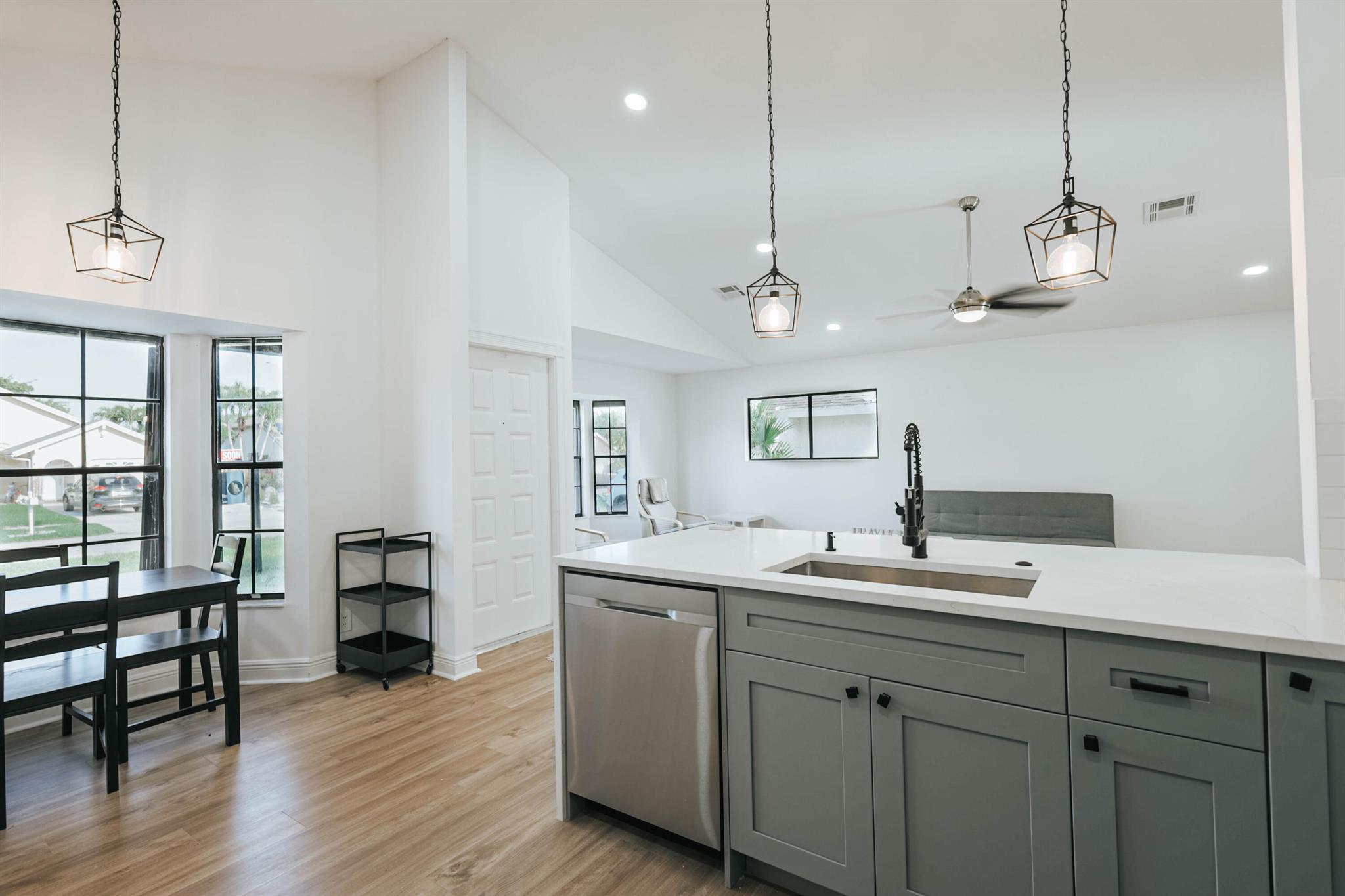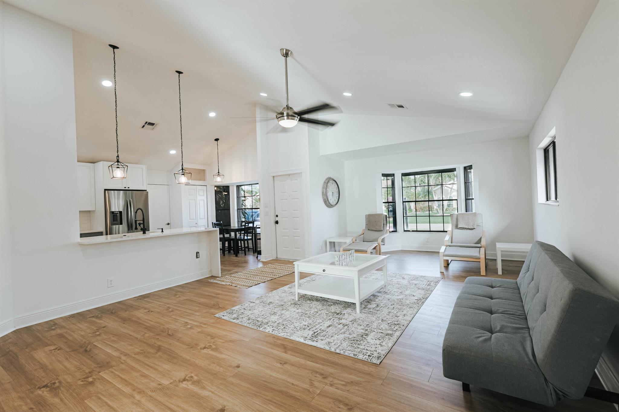 Rarely available in Boca Raton. This impeccable property was totally redone with brand new kitchen and floors. A brand new AC unit was just installed (2024), roof is 2020, Water Heater 2022 and new sprinkler system. SS Appliances with transferrable warranty and quartz countertop. The house has 3 bedrooms and 2 Bathrooms with, good size lot with permanent view to a green field. Open floor living room with panoramic view, light fixture above kitchen island make it super cozy at night. Good closet space through out the house, walk-in closet in the master bedroom. Hurricane shutters in all windows & doors that gives you a discount in your insurance. Very quiet and safe community with low HOA. New sprinkler system. Close to A rated schools. It’s a must see.