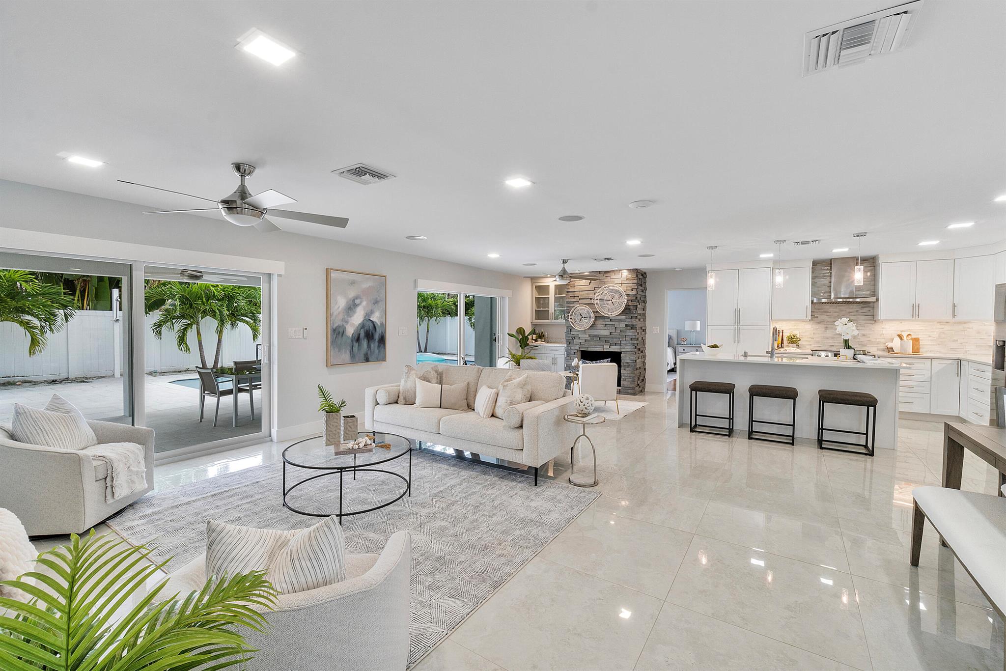 Welcome to your dream home in Lighthouse Point! Renovated in 2022, this property offers modern luxury and comfort with premium amenities. Just minutes from Frank McDonough Park, it boasts unparalleled craftsmanship and attention to detail. Inside, enjoy an open concept layout with porcelain tile and wood flooring leading to a custom-designed kitchen. Three spacious bedrooms, including a luxurious master suite, provide ample relaxation space. Step outside to your tropical oasis with a 300 sq ft patio, new pool, and summer kitchen. Impact windows, surround sound, and a cozy fireplace make it an ideal retreat. An oversized two-car garage with a workshop area offers ample storage and flexibility for hobbies. Don’t miss this opportunity in one of Lighthouse Point’s most coveted neighborhoods.