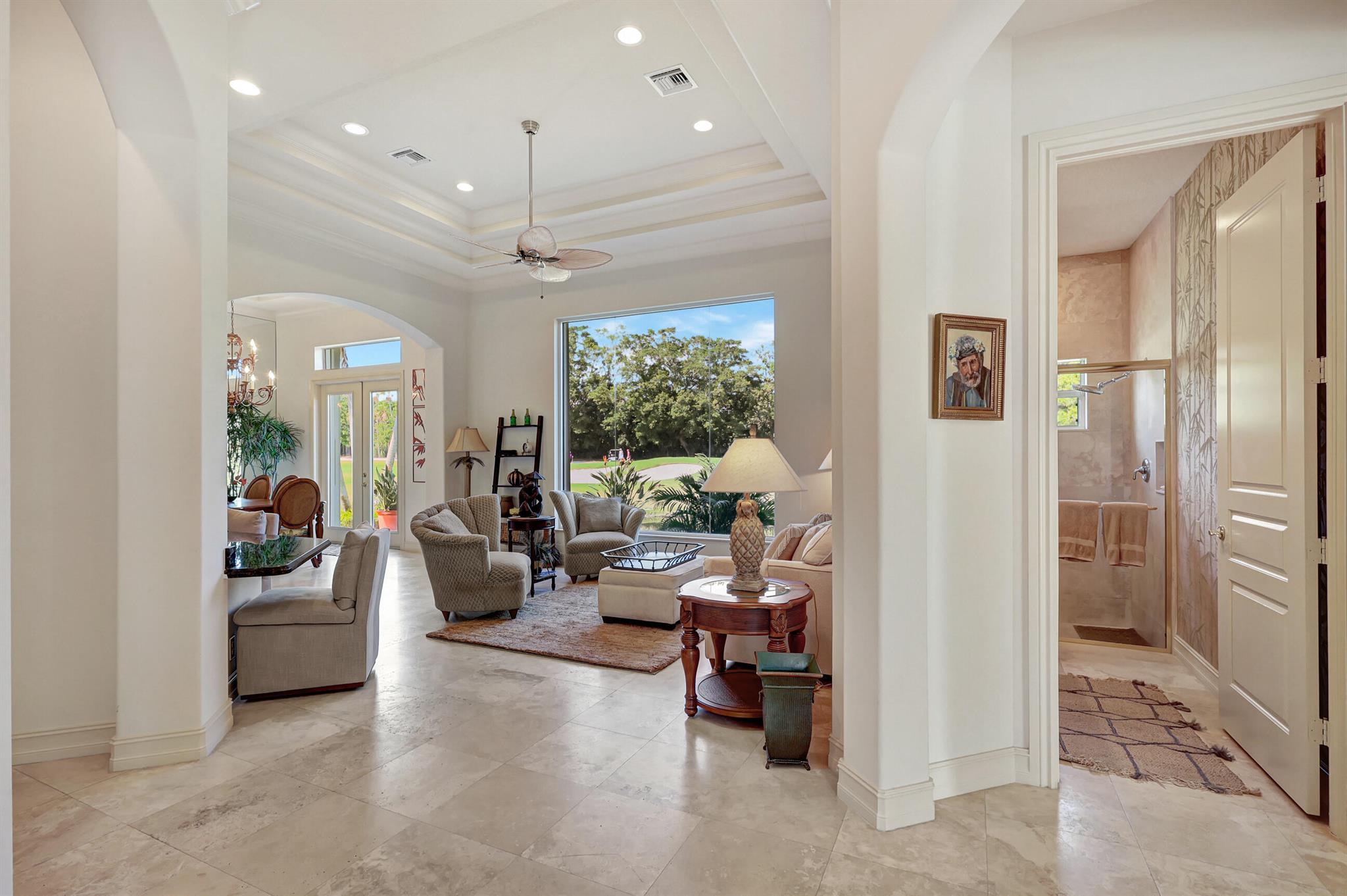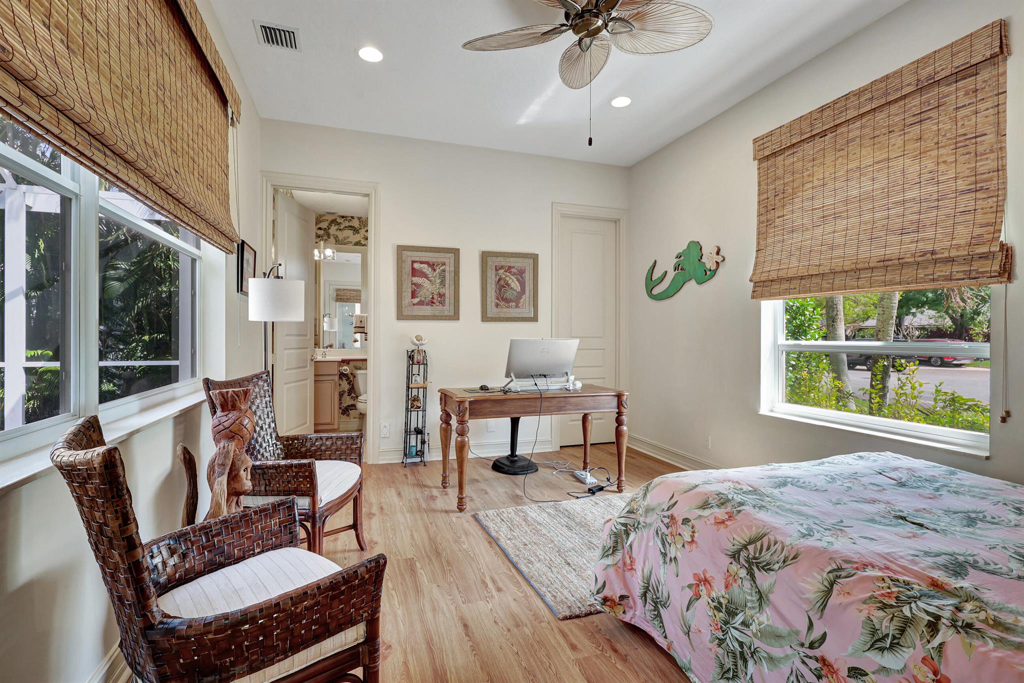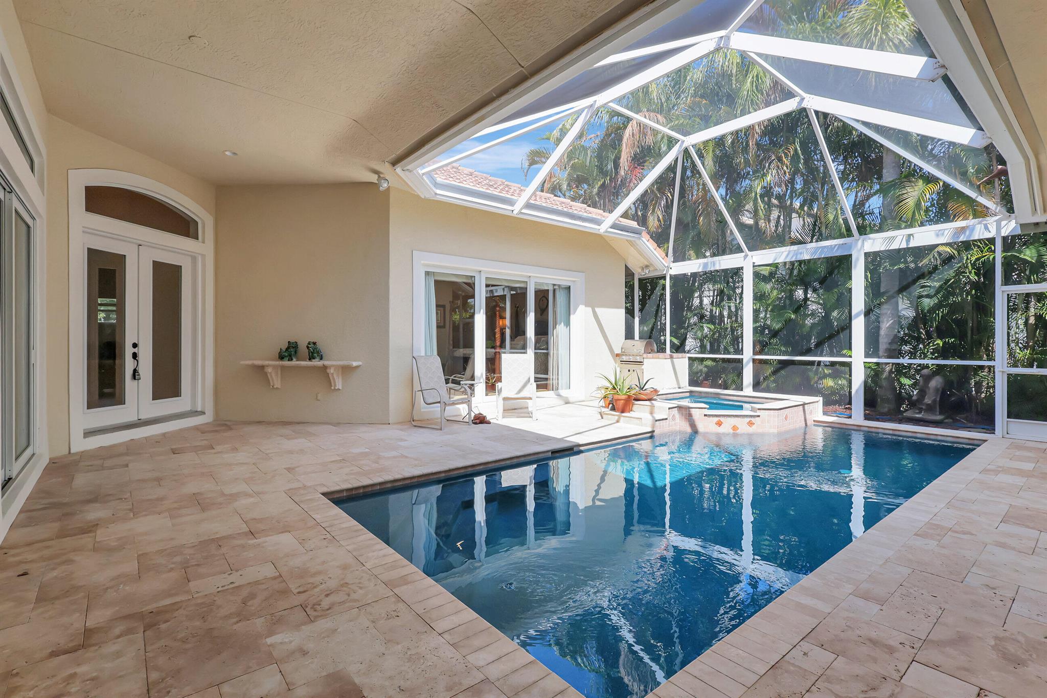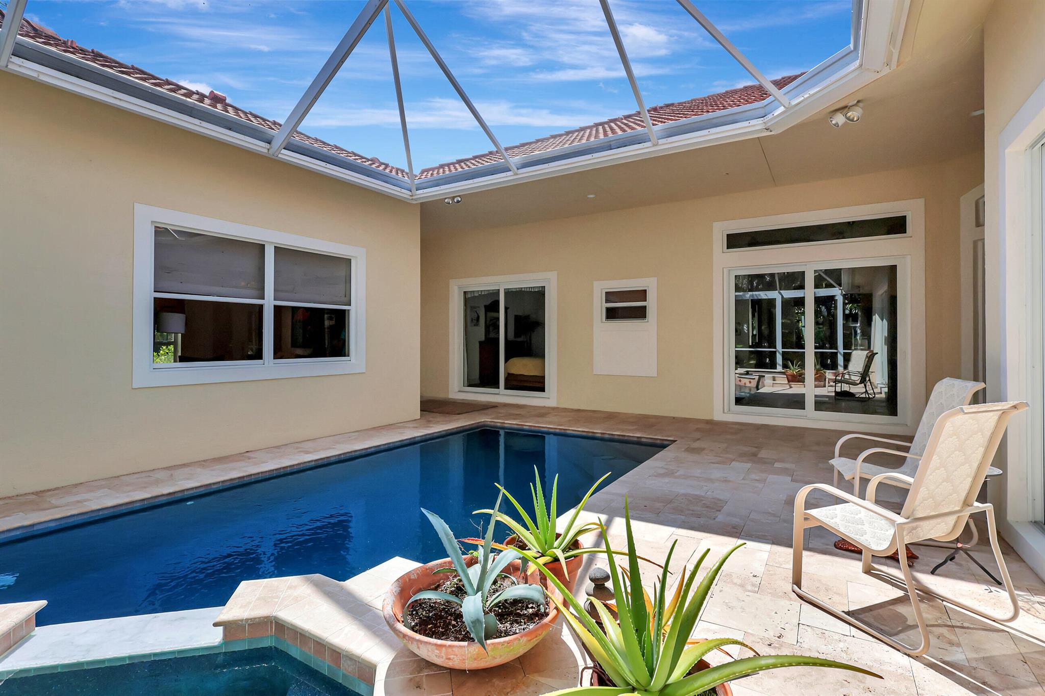 Beautiful One Story 4 Bedroom,4 Bath PGA National Courtyard Home on a Quiet Cul-De-Sac. Beautifully designed for easy entertaining & guests. Main home has 3 Beds & 3 baths. Separate Guest House has full bath & walk in closet. Many updates by current owners including IMPACT GLASS, saltwater pool & spa w/ new pool heater & new Travertine decking. New Travertine back patio overlook the 4th Green of the Fazio golf course. Spacious closets including his & hers in Primary Bedroom. Walk-in kitchen pantry. Family room open to kitchen. Entertaining bar w/ wine frig. Gas cooking, Travertine Floors, Volume Ceilings, Crown Molding.Whole House Generator, new A/C, updated landscaping. House is quiet & private. Membership available but not mandatory. Furniture negotiable.
