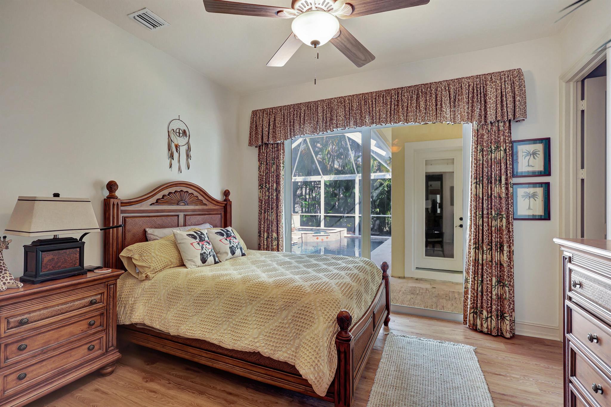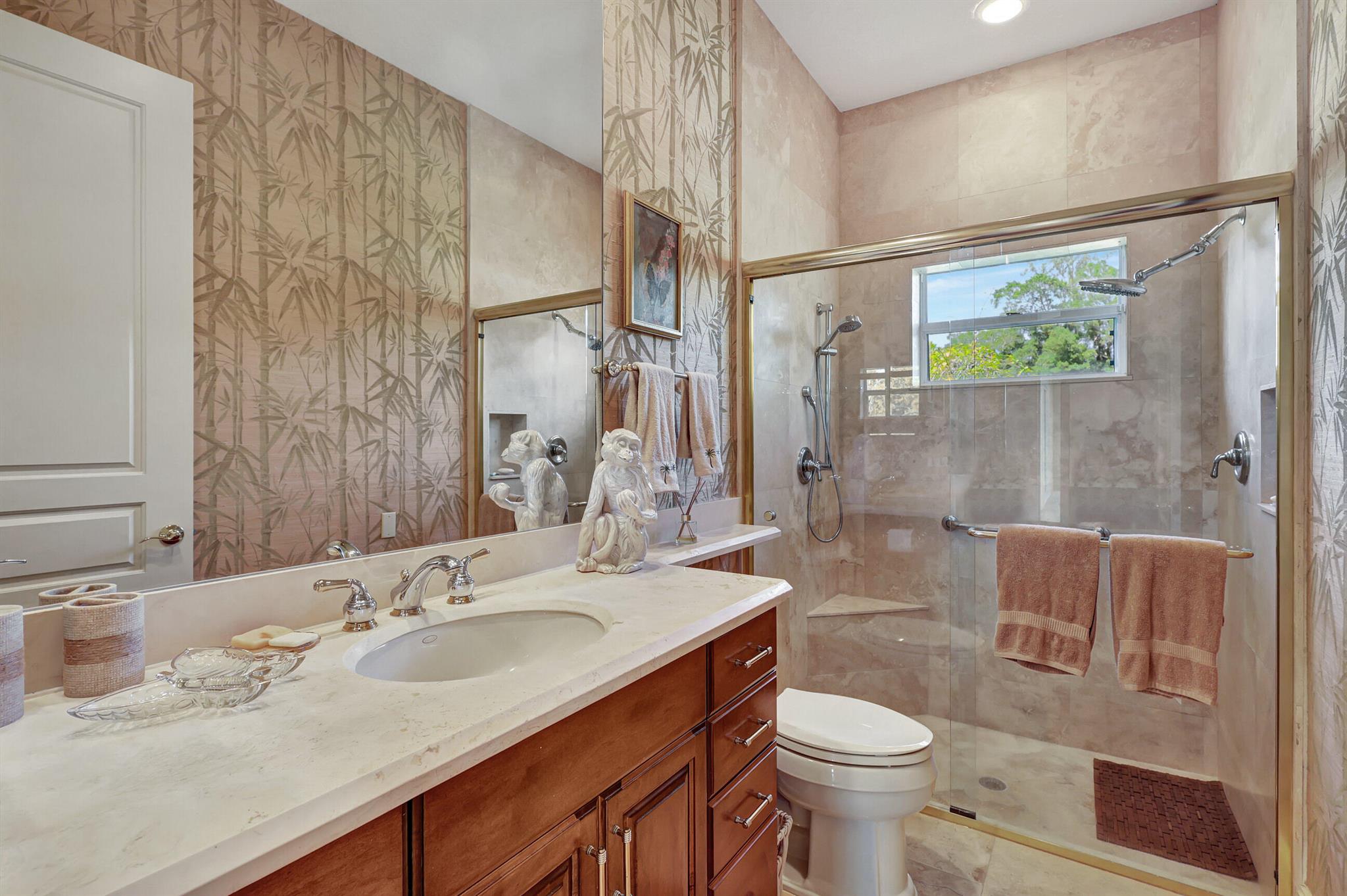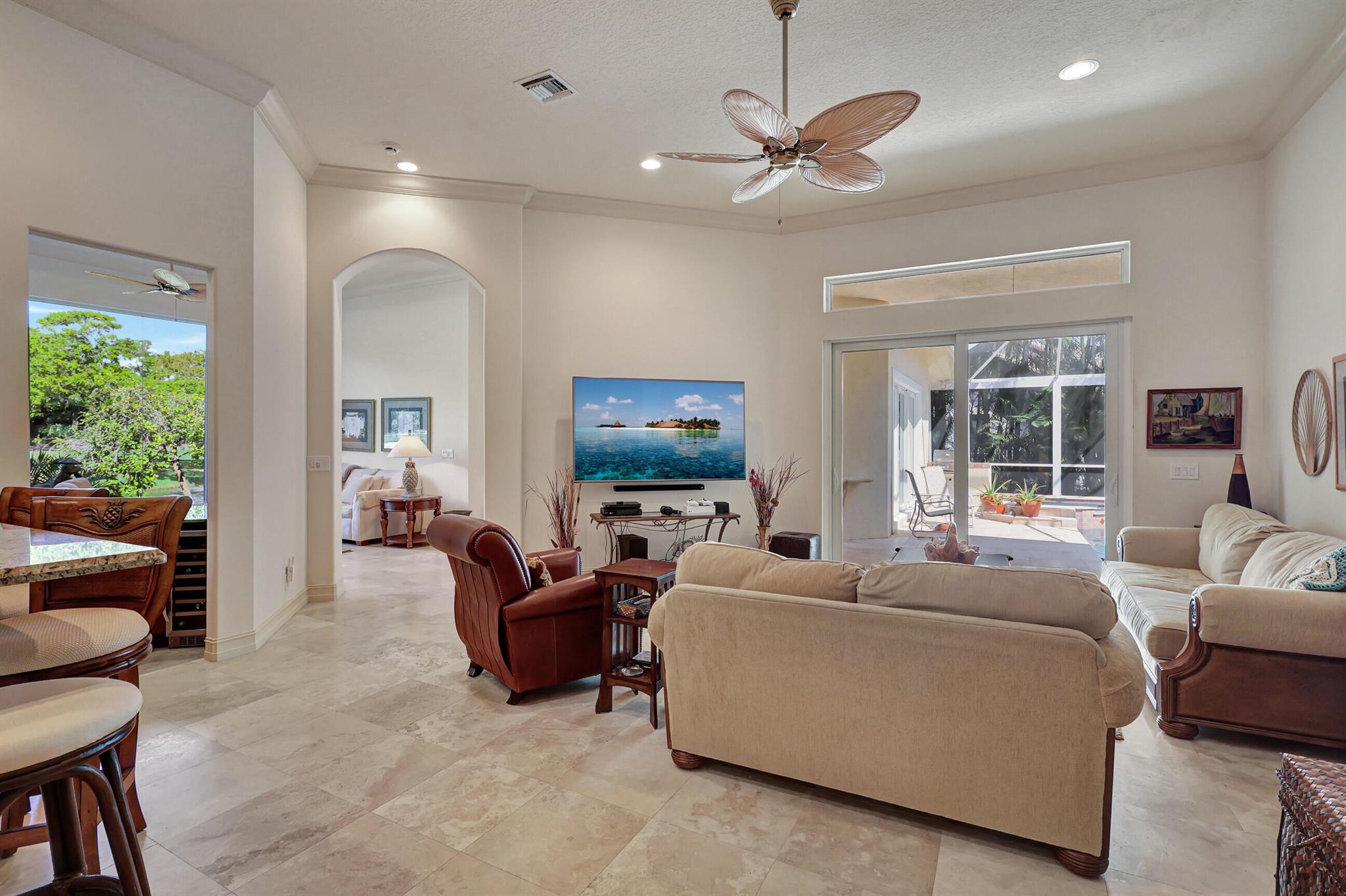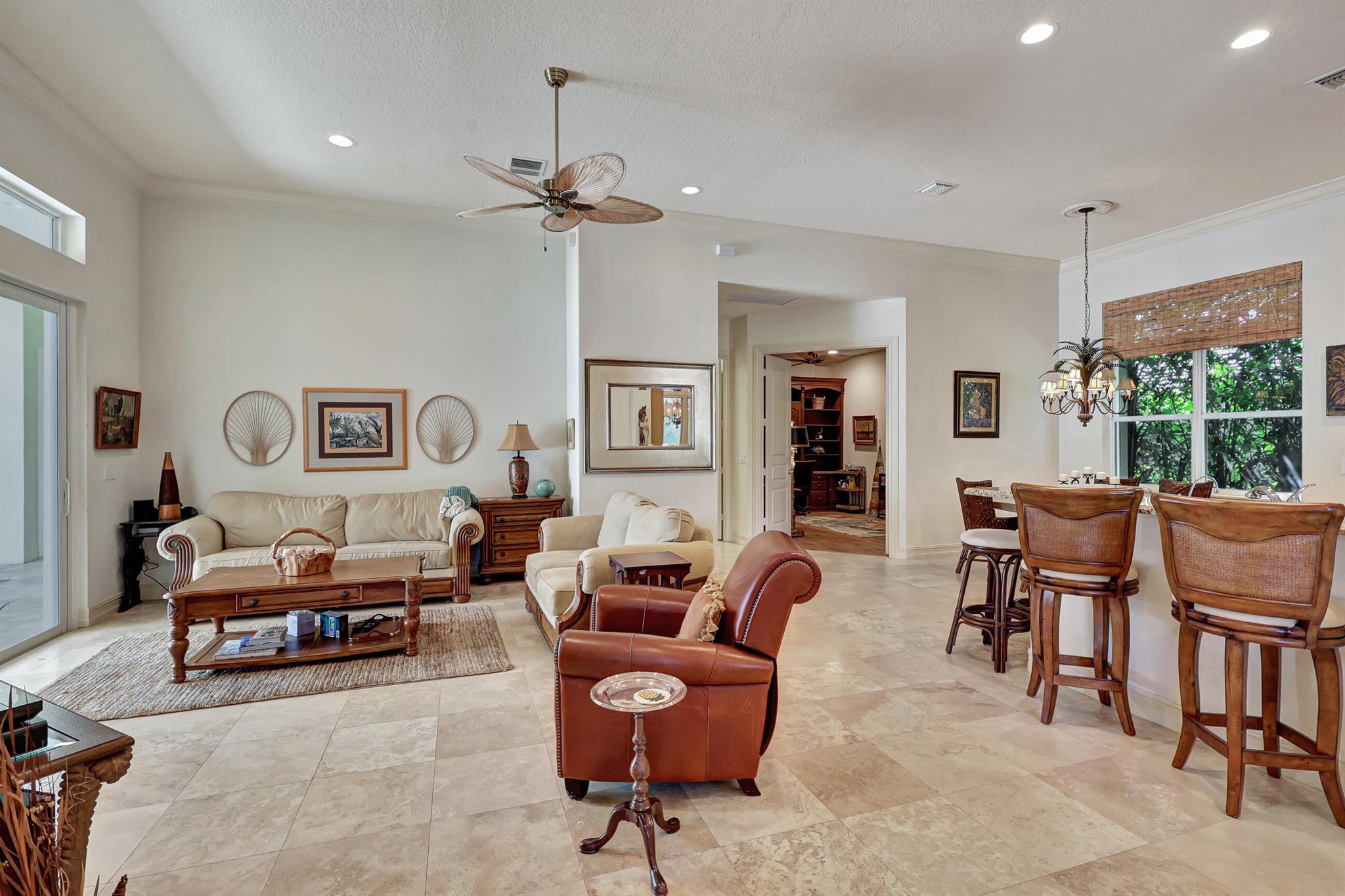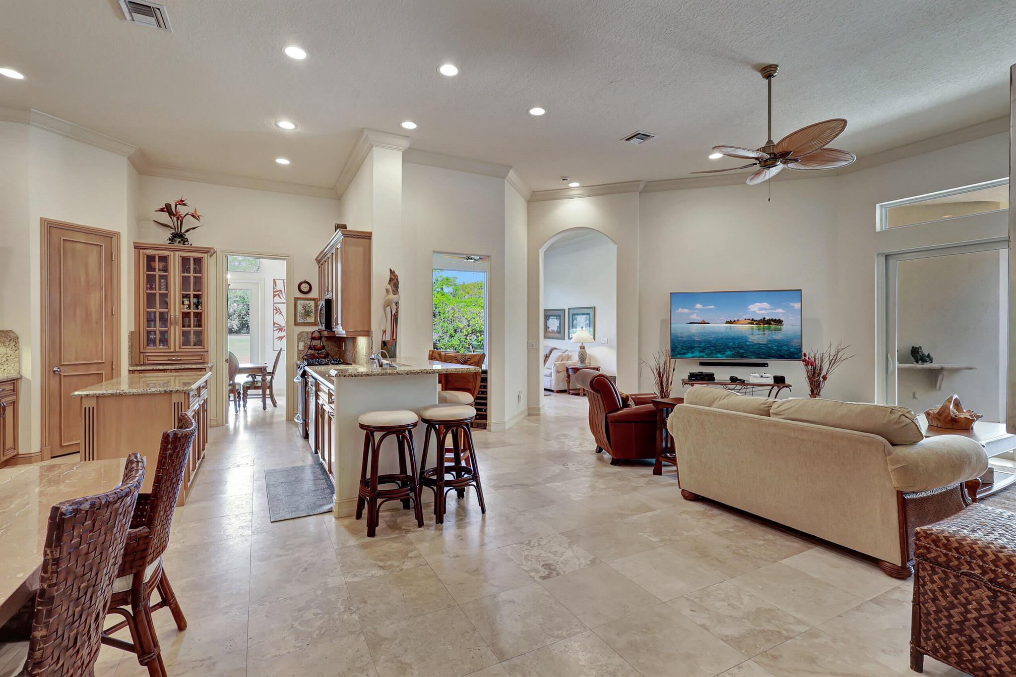 Beautiful One Story 4 Bedroom,4 Bath PGA National Courtyard Home on a Quiet Cul-De-Sac. Beautifully designed for easy entertaining & guests. Main home has 3 Beds & 3 baths. Separate Guest House has full bath & walk in closet. Many updates by current owners including IMPACT GLASS, saltwater pool & spa w/ new pool heater & new Travertine decking. New Travertine back patio overlook the 4th Green of the Fazio golf course. Spacious closets including his & hers in Primary Bedroom. Walk-in kitchen pantry. Family room open to kitchen. Entertaining bar w/ wine frig. Gas cooking, Travertine Floors, Volume Ceilings, Crown Molding.Whole House Generator, new A/C, updated landscaping. House is quiet & private. Membership available but not mandatory. Furniture negotiable.