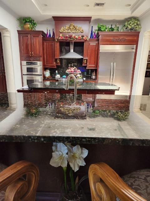 Completely updated Beach area home half a block from the beach. Top of line Kitchen Aide appliances, 48 inch refrigerator, Gas stove , Kitchen Aid oven and Mircowave , Gas dryer and brand new washing machine, Large soaking tub in primary Bed. Tankless water heater, Generator and a block wall completely around house for added security, Ring security, Renovated pool and new pool pump, Marble floors throughout 4/2.5 rooms, , 3000 plus sq ft house, Completely wired for internet and cable t.v. 2 zones air conditions, Decorative of stone columns thru out house and a large stone fireplace. Brand new hurricane impact windows installed, Plus Accordion shutters throughout house. New 1 car awning installed.
