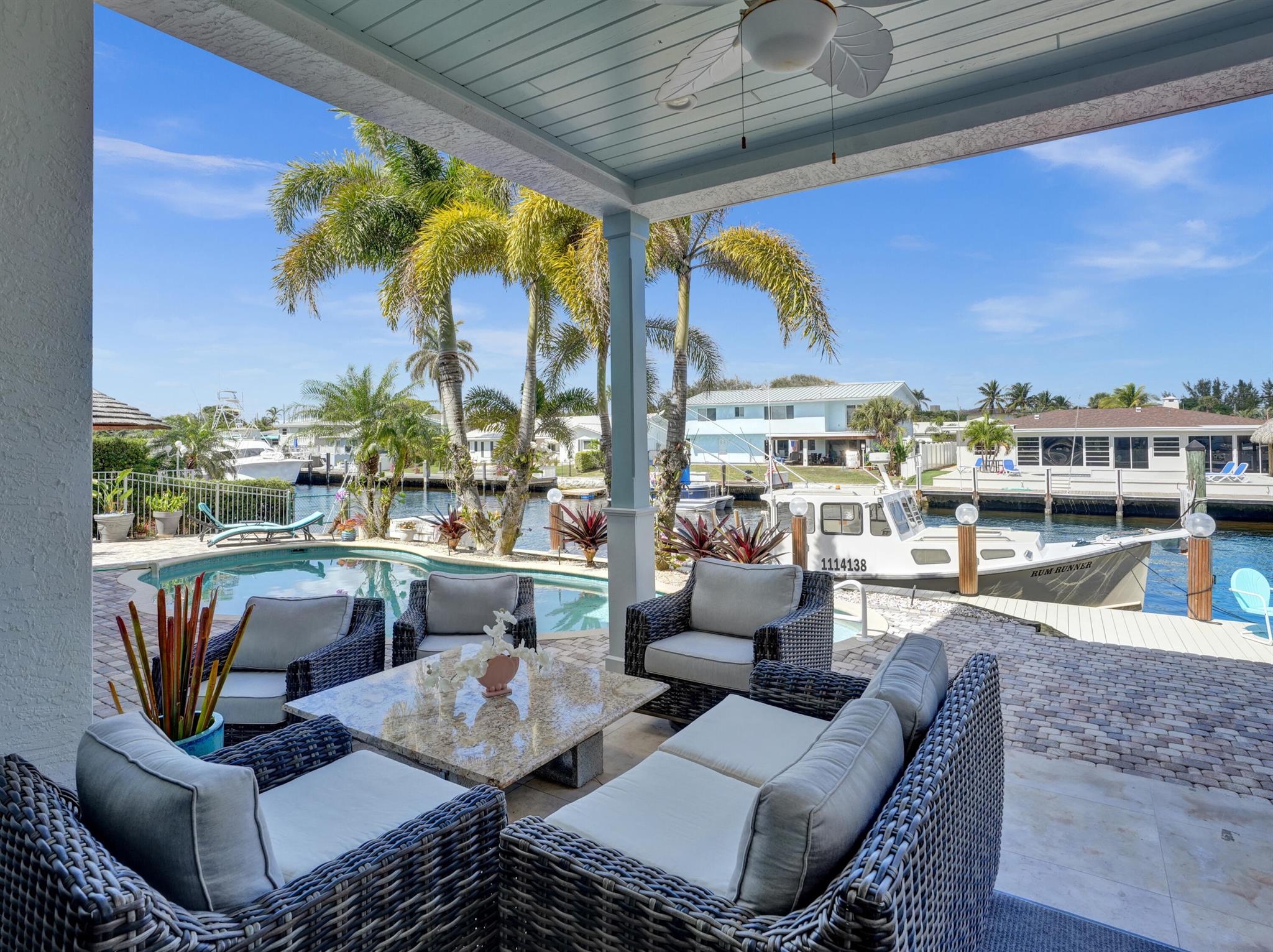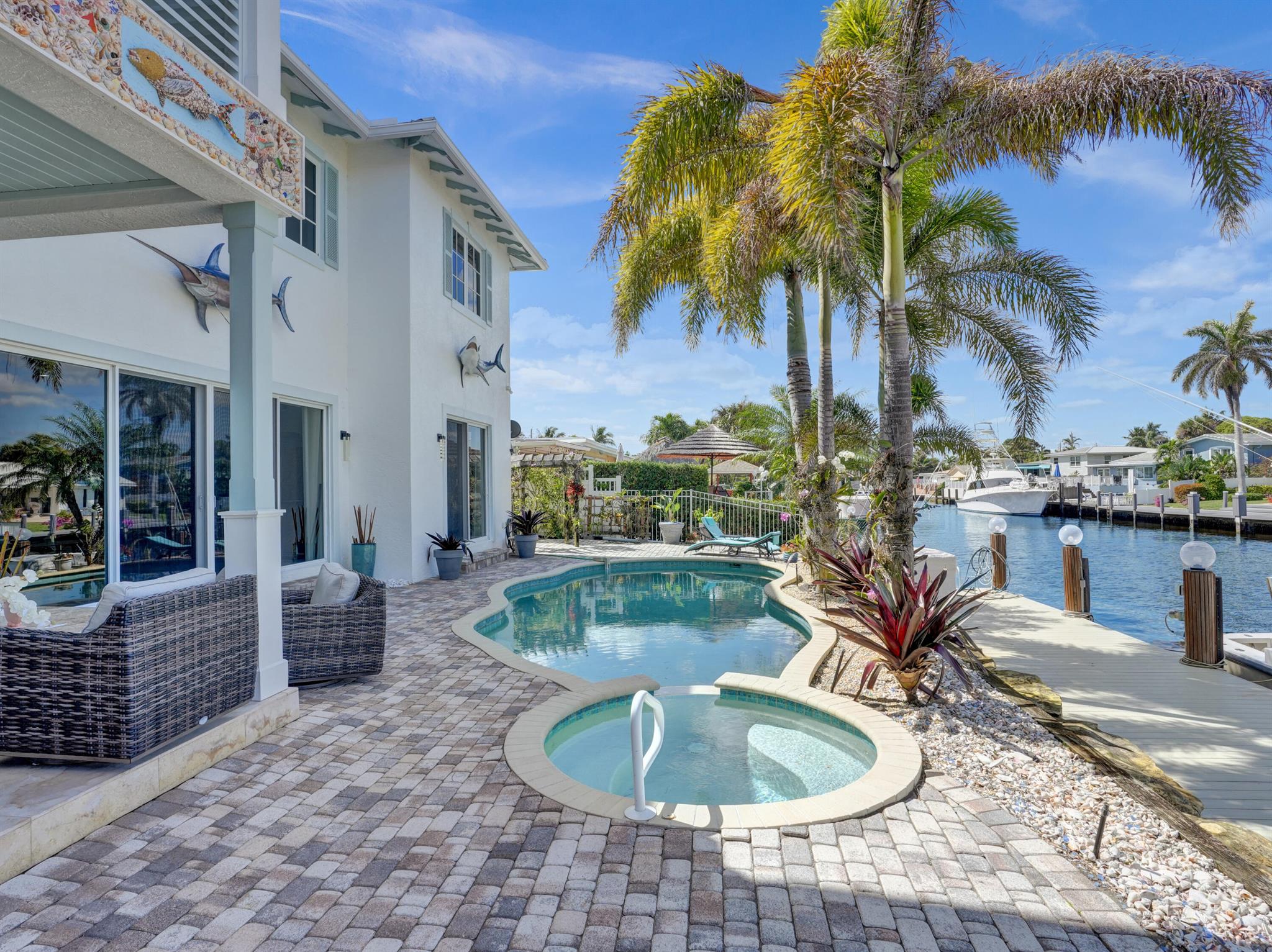 Stunning Coastal estate home on an ocean access canal, no fixed bridges. This beautiful 5 bedroom, 4.5 bathroom property impresses with 2 master suites, one on the ground and one on the second level. The spectacular chef’s kitchen with KitchenAid gas stove and pantry, was recently installed and creates an inviting open concept, perfect for entertaining. The ground floor also hosts a beautiful bar, spacious living room, formal dining room and office as well as the first master suite and an additional powder room. On the second floor the home opens to an impressive sized loft, adorned with rich hard wood floors and 3 additional bedrooms. The master suite is complete with 3 walk-in closets, elegant wood beams, morning bar and private balcony. The home is equipped with hurricane impact window