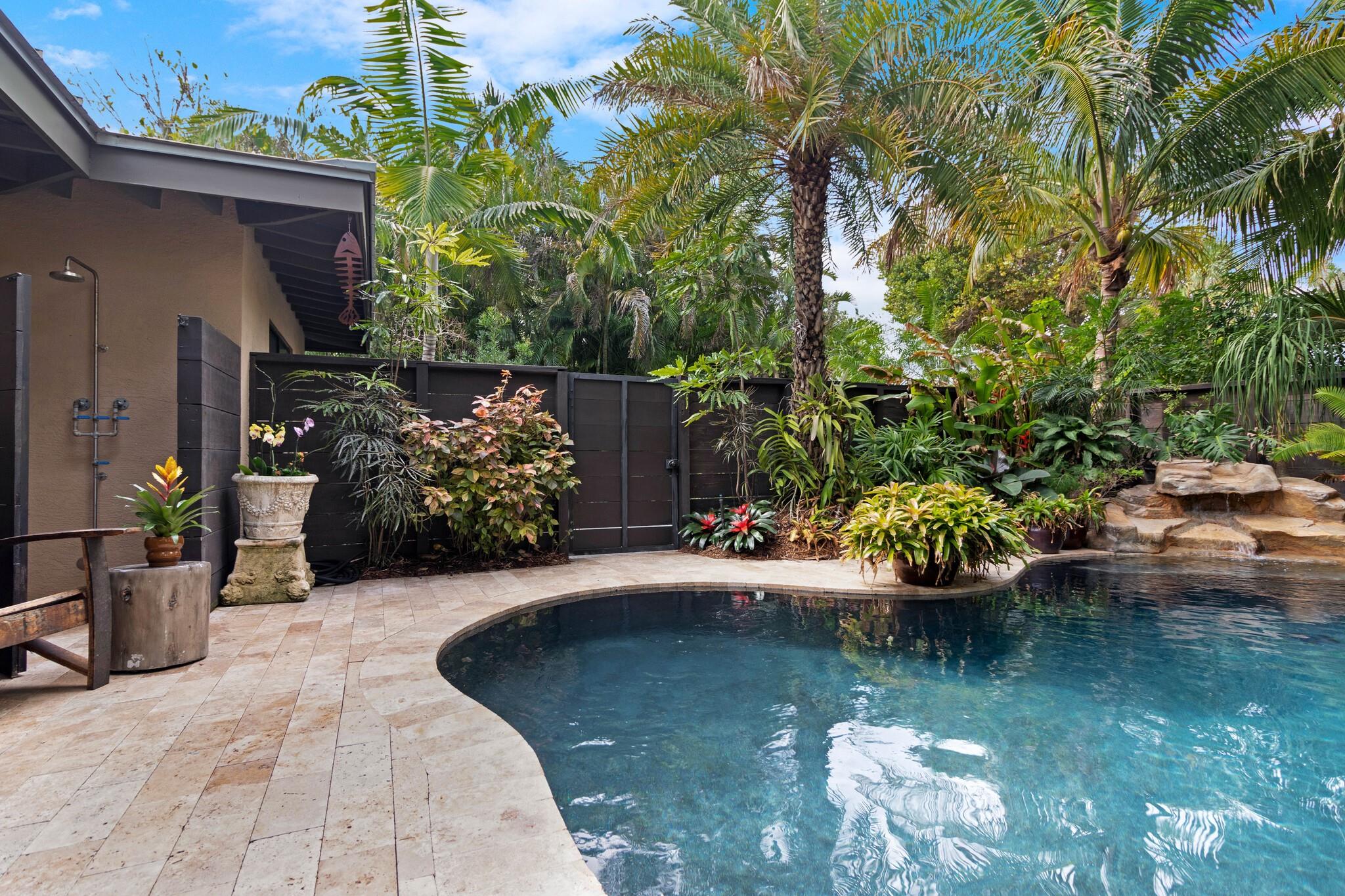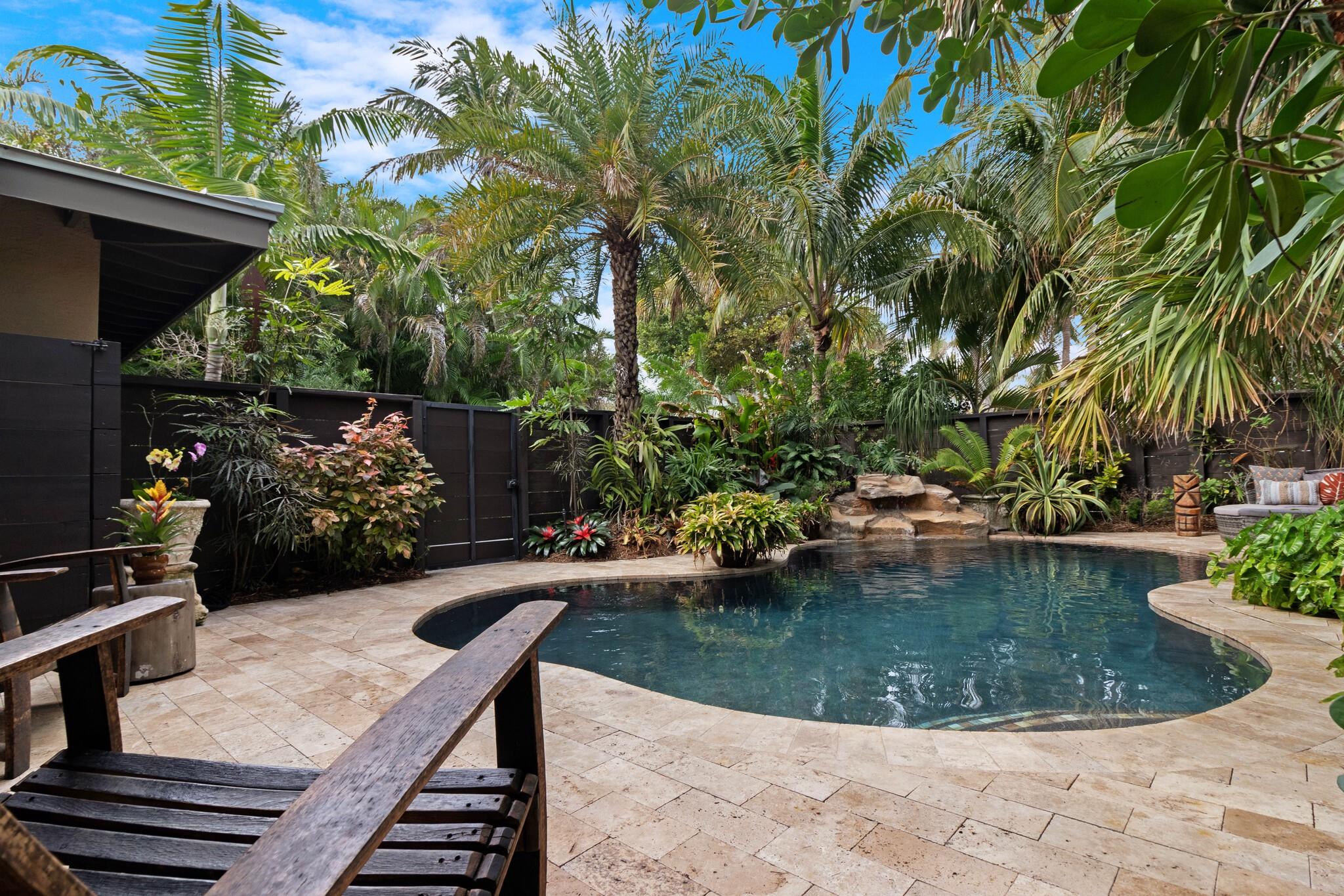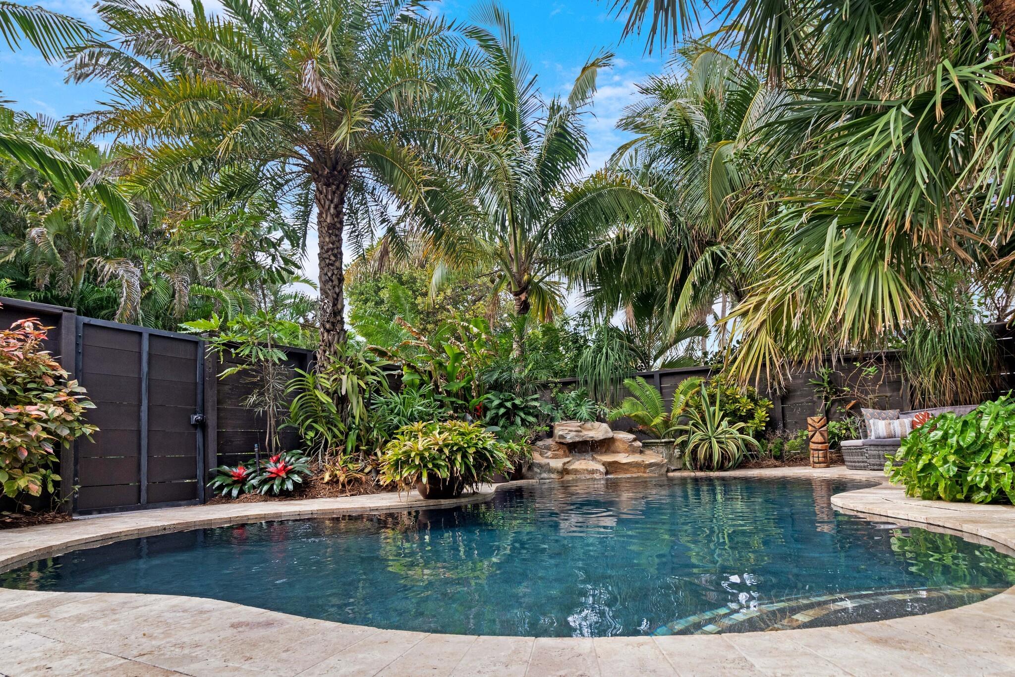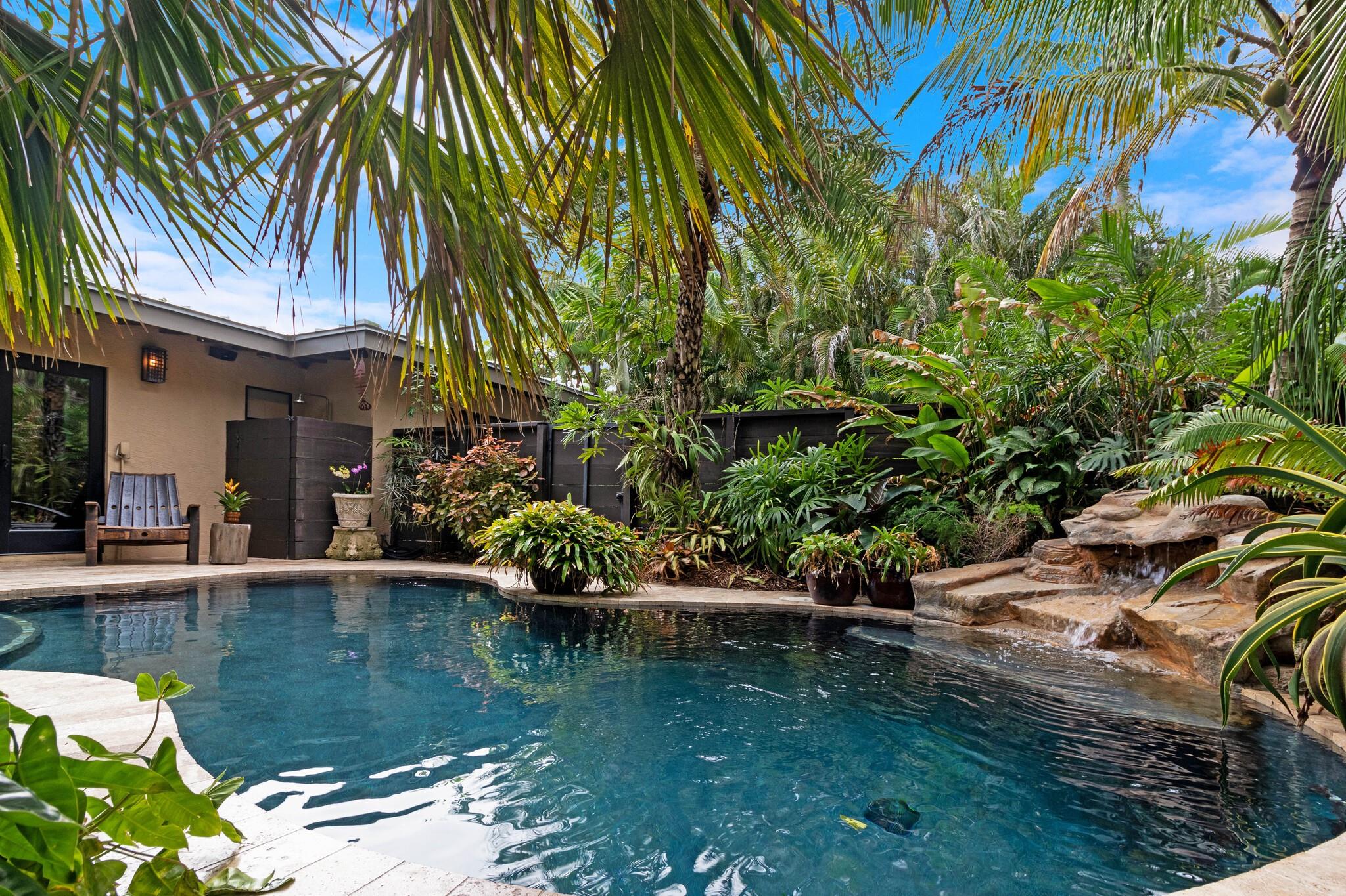 Welcome to the personal resort of your dreams! Wake in your private tropical oasis, enjoy the beach a 1/2 block away, lounge by the waterfall of your saltwater lagoon pool & entertain in your backyard living/dining paradise! Impeccably designed 2/2 plus office & cozy 1/1 guest house fully remodeled in 2018. Attention to every artistic detail. Chef’s kitchen with 6 burner gas cooktop, double ovens, wine cooler, pot filler & luxury fixtures. Breathtaking fireplace. Solid oak floors, impact windows, custom closets, designer shades & new aluminum roof/electric/plumbing (including underground)/HVAC. Whole-property gas generator, jaw-dropping landscaping, outdoor shower & new pavers/irrigation/landscape lighting/mosquito spray system. Guesthouse perfect for vacation rentals or envious friends.