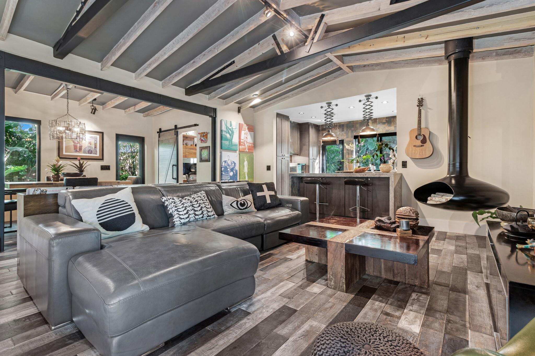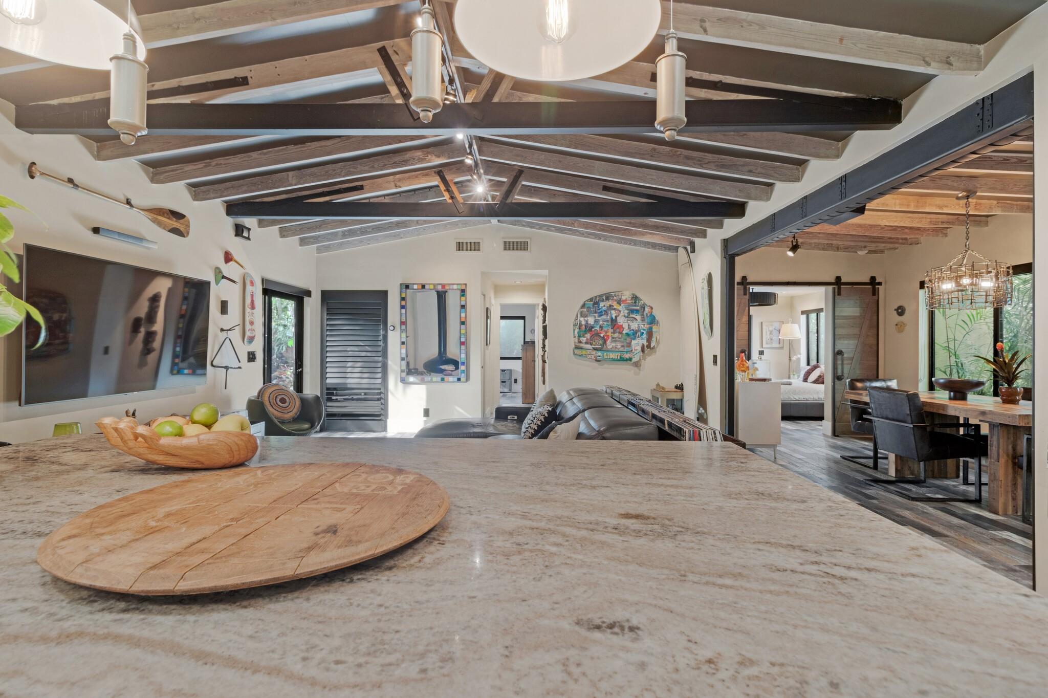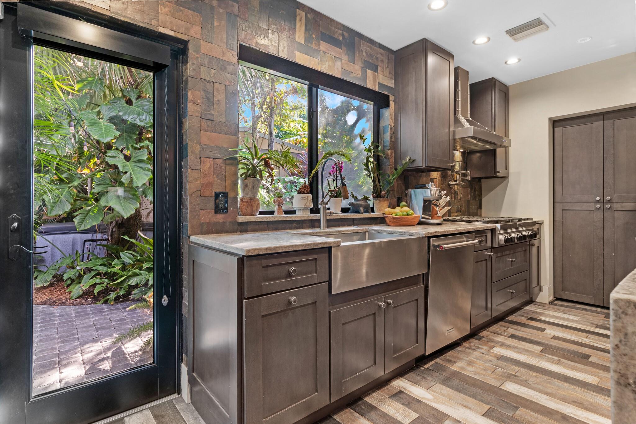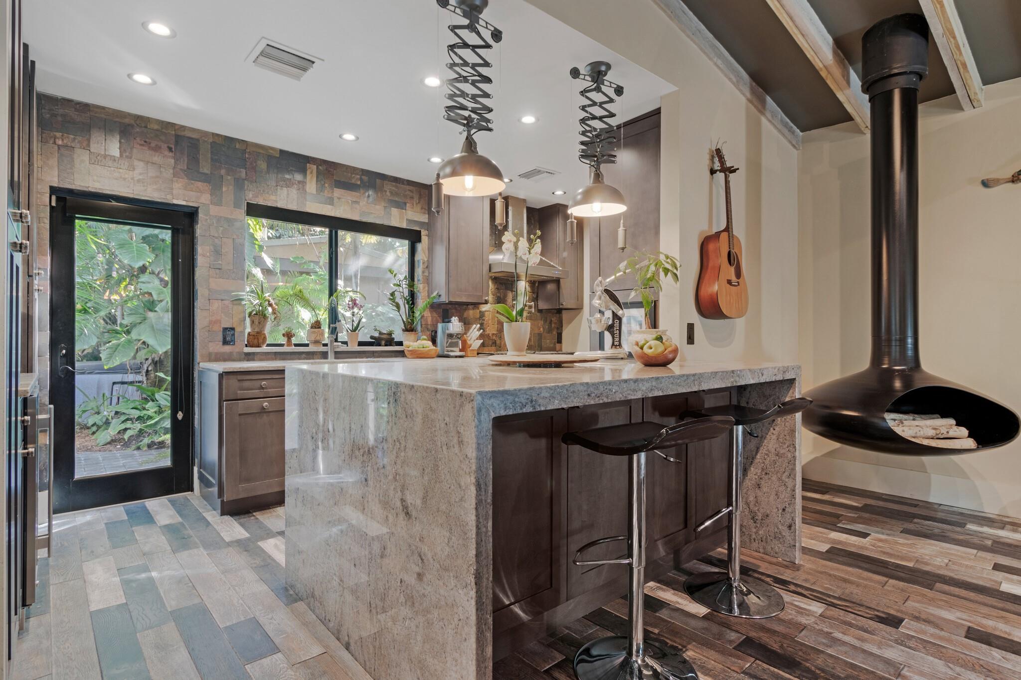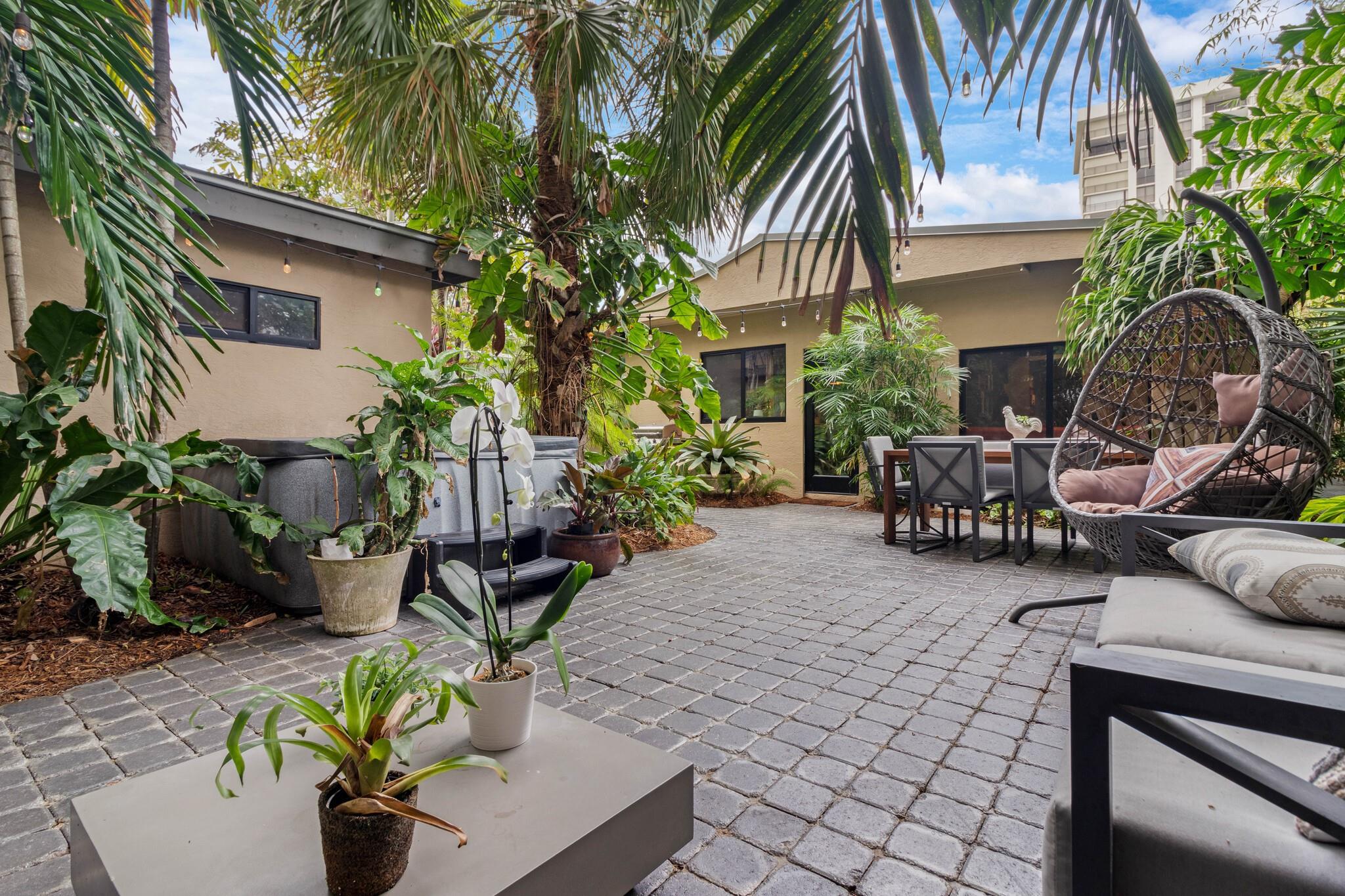 Welcome to the personal resort of your dreams! Wake in your private tropical oasis, enjoy the beach a 1/2 block away, lounge by the waterfall of your saltwater lagoon pool & entertain in your backyard living/dining paradise! Impeccably designed 2/2 plus office & cozy 1/1 guest house fully remodeled in 2018. Attention to every artistic detail. Chef’s kitchen with 6 burner gas cooktop, double ovens, wine cooler, pot filler & luxury fixtures. Breathtaking fireplace. Solid oak floors, impact windows, custom closets, designer shades & new aluminum roof/electric/plumbing (including underground)/HVAC. Whole-property gas generator, jaw-dropping landscaping, outdoor shower & new pavers/irrigation/landscape lighting/mosquito spray system. Guesthouse perfect for vacation rentals or envious friends.