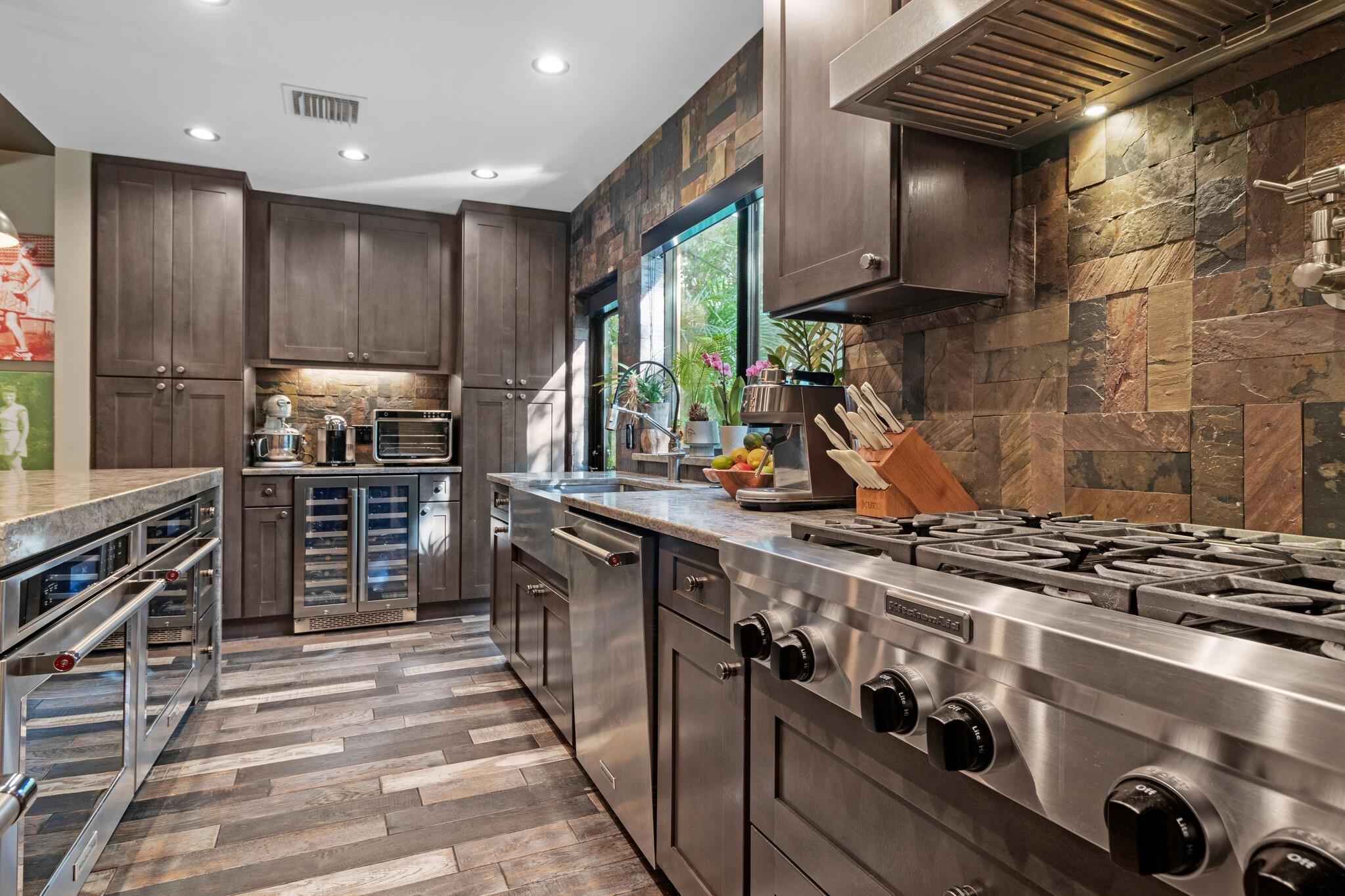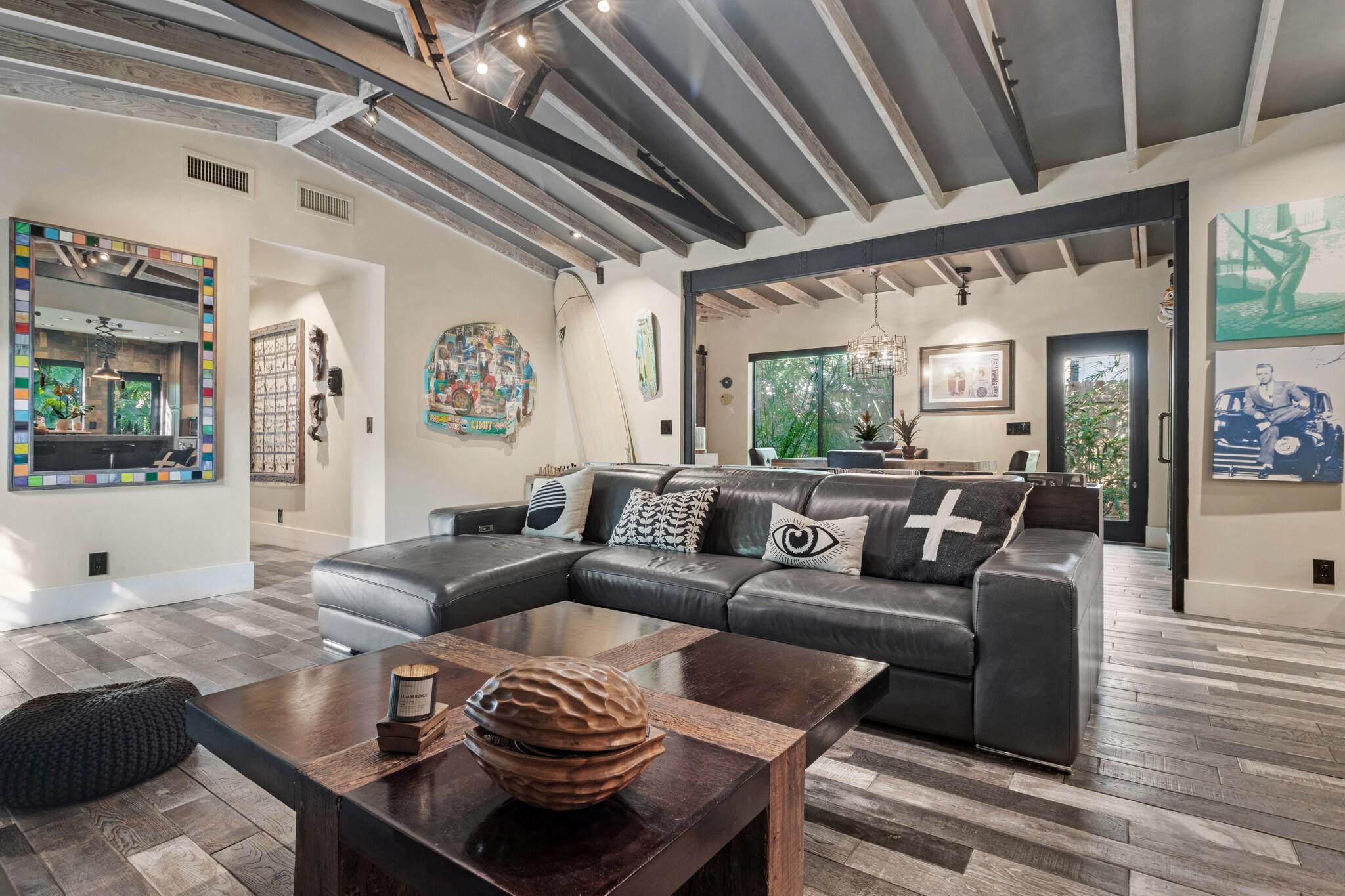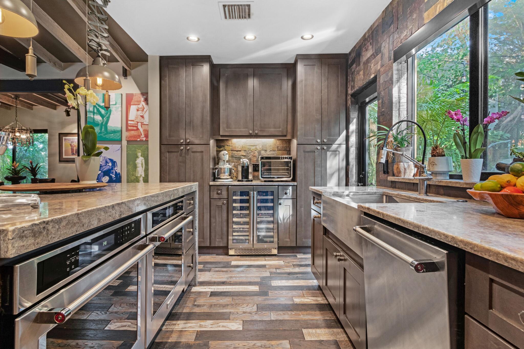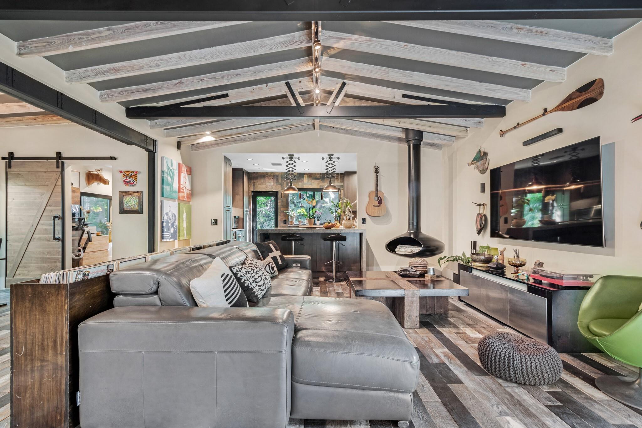 Welcome to the personal resort of your dreams! Wake in your private tropical oasis, enjoy the beach a 1/2 block away, lounge by the waterfall of your saltwater lagoon pool & entertain in your backyard living/dining paradise! Impeccably designed 2/2 plus office & cozy 1/1 guest house fully remodeled in 2018. Attention to every artistic detail. Chef’s kitchen with 6 burner gas cooktop, double ovens, wine cooler, pot filler & luxury fixtures. Breathtaking fireplace. Solid oak floors, impact windows, custom closets, designer shades & new aluminum roof/electric/plumbing (including underground)/HVAC. Whole-property gas generator, jaw-dropping landscaping, outdoor shower & new pavers/irrigation/landscape lighting/mosquito spray system. Guesthouse perfect for vacation rentals or envious friends.