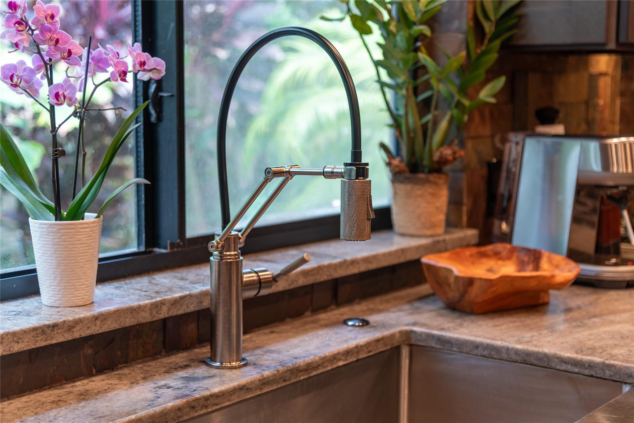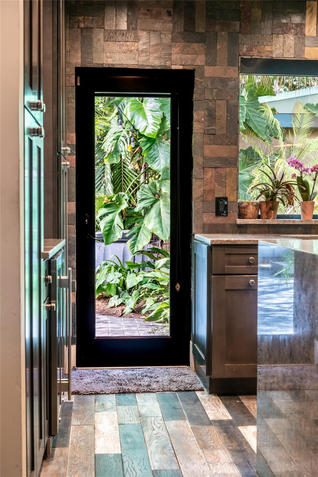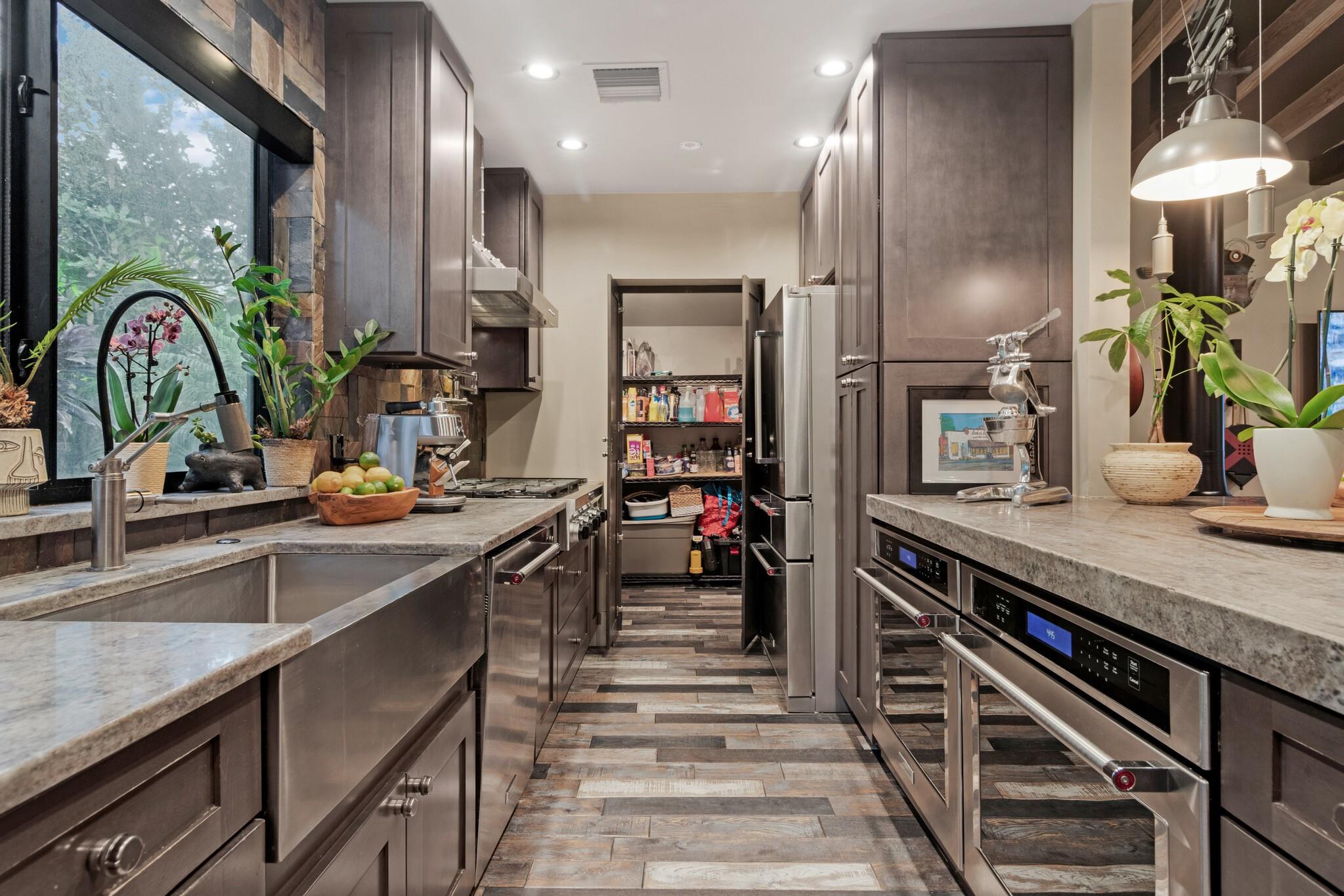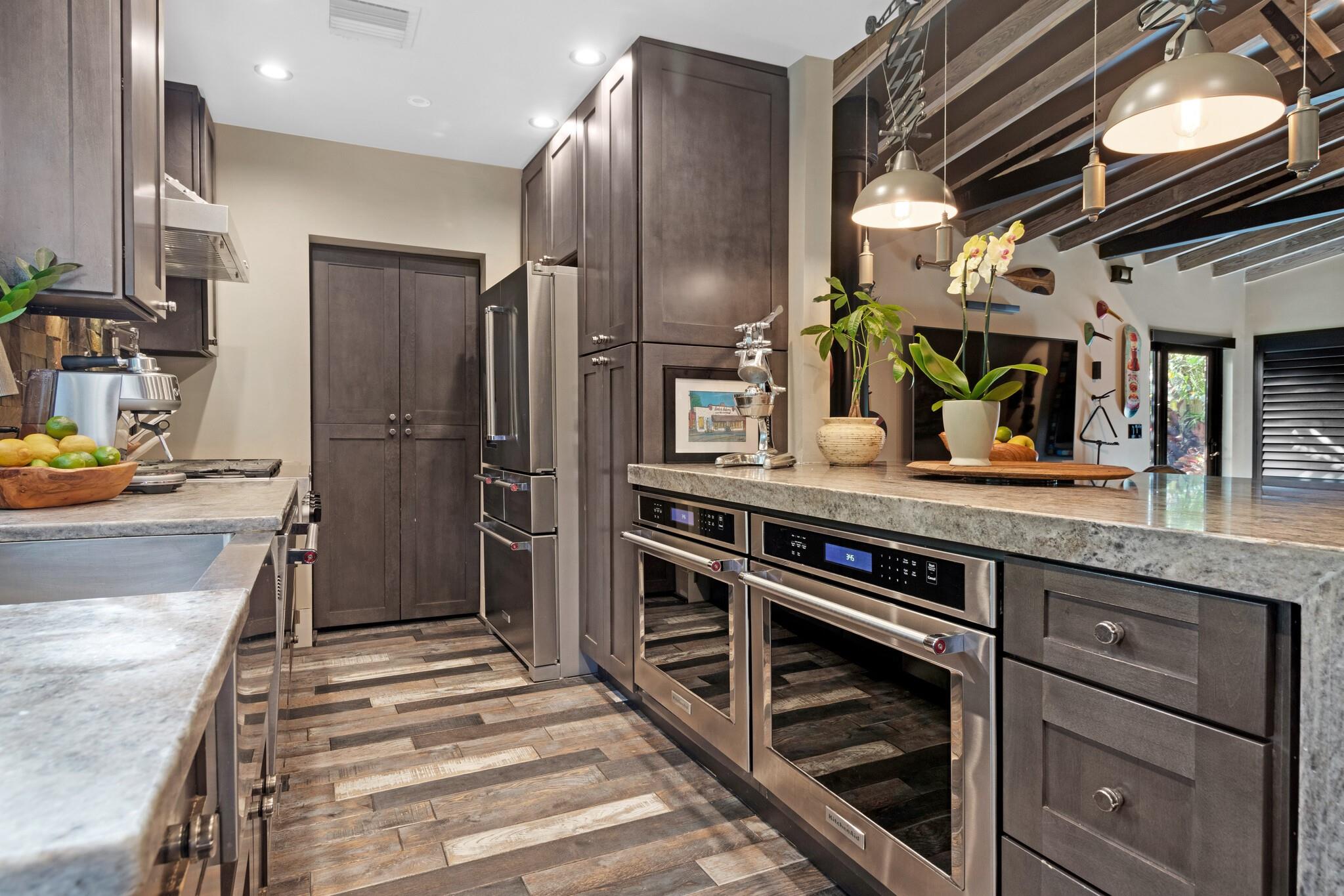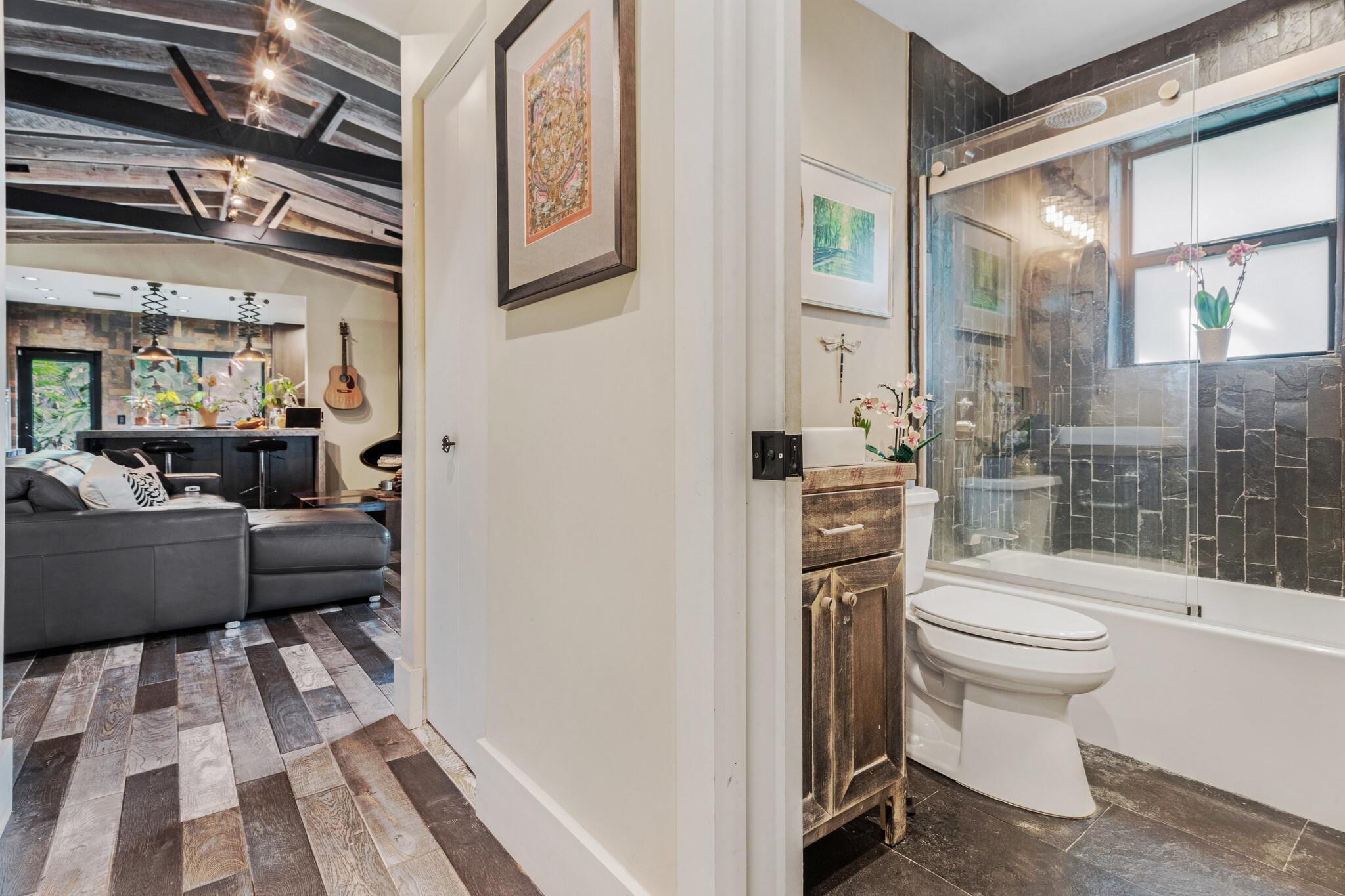 Welcome to the personal resort of your dreams! Wake in your private tropical oasis, enjoy the beach a 1/2 block away, lounge by the waterfall of your saltwater lagoon pool & entertain in your backyard living/dining paradise! Impeccably designed 2/2 plus office & cozy 1/1 guest house fully remodeled in 2018. Attention to every artistic detail. Chef’s kitchen with 6 burner gas cooktop, double ovens, wine cooler, pot filler & luxury fixtures. Breathtaking fireplace. Solid oak floors, impact windows, custom closets, designer shades & new aluminum roof/electric/plumbing (including underground)/HVAC. Whole-property gas generator, jaw-dropping landscaping, outdoor shower & new pavers/irrigation/landscape lighting/mosquito spray system. Guesthouse perfect for vacation rentals or envious friends.