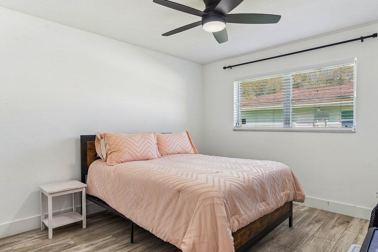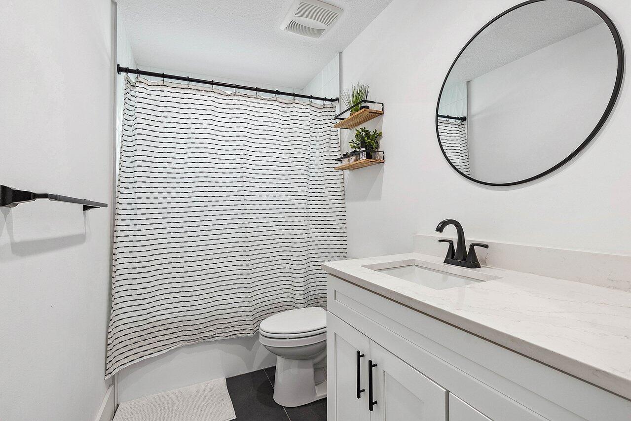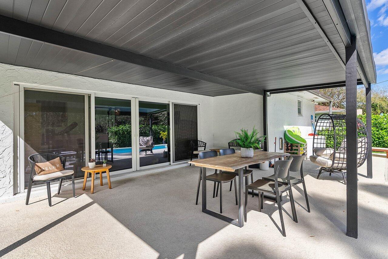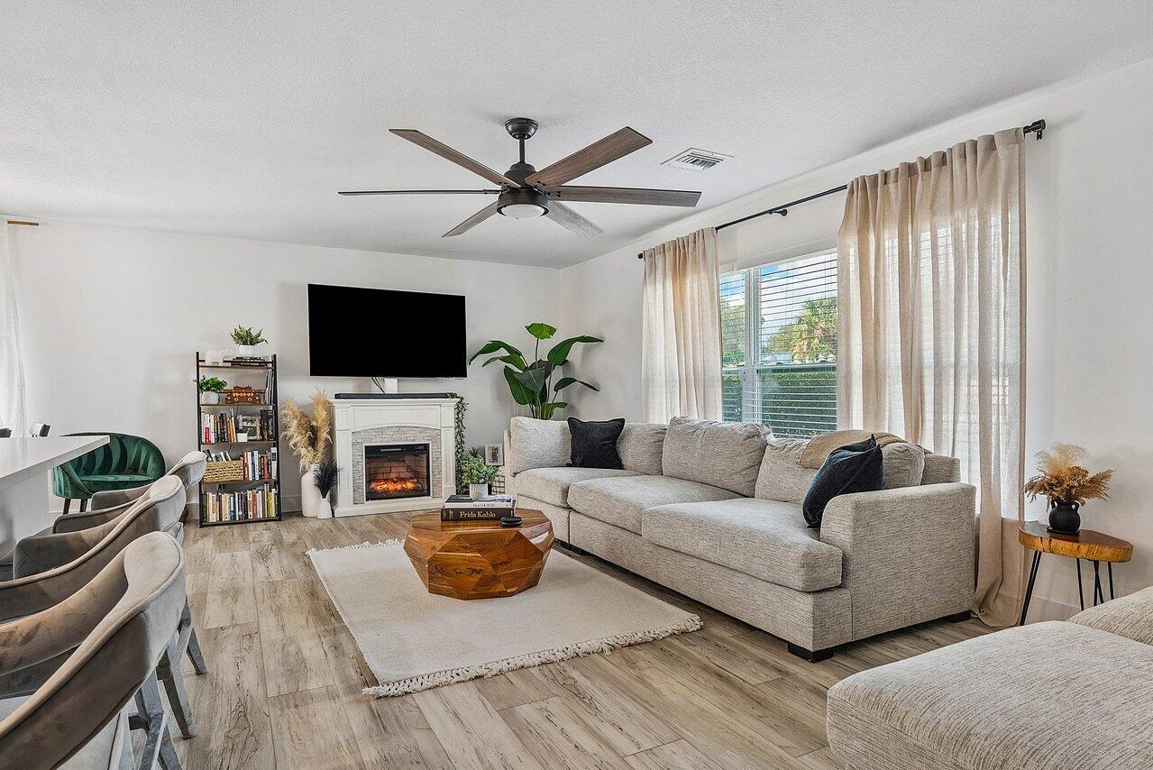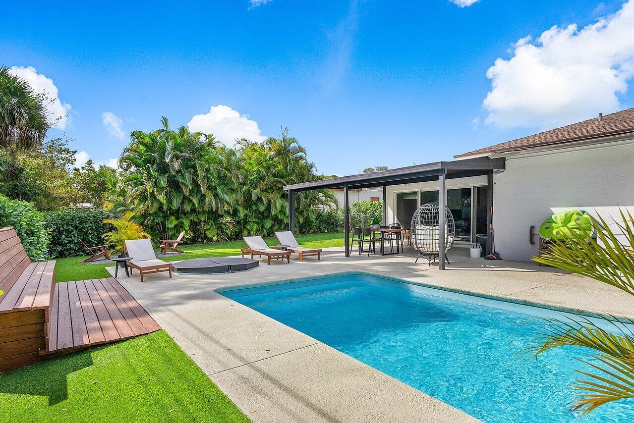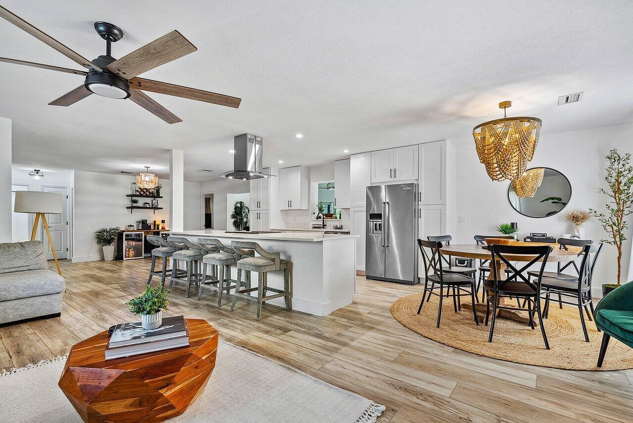 Welcome to paradise! This meticulously remodeled 3-bedroom, 2-bathroom CBS block home with 6 year old roof is a vision of modern luxury. Step inside and be greeted by the elegance of white shaker cabinets and quartz countertops, accented with sleek black matte finishes. Entertain with the newer smart range, dishwasher and enjoy other smart appliances including the washer and dryer. Every inch of this home has been meticulously cared for, evident in the attention to detail and showcased in the newer front and interior doors. Enjoy the comfort of luxury flooring complimented by newer tile throughout the home. Majority of the windows and doors are hurricane impact.