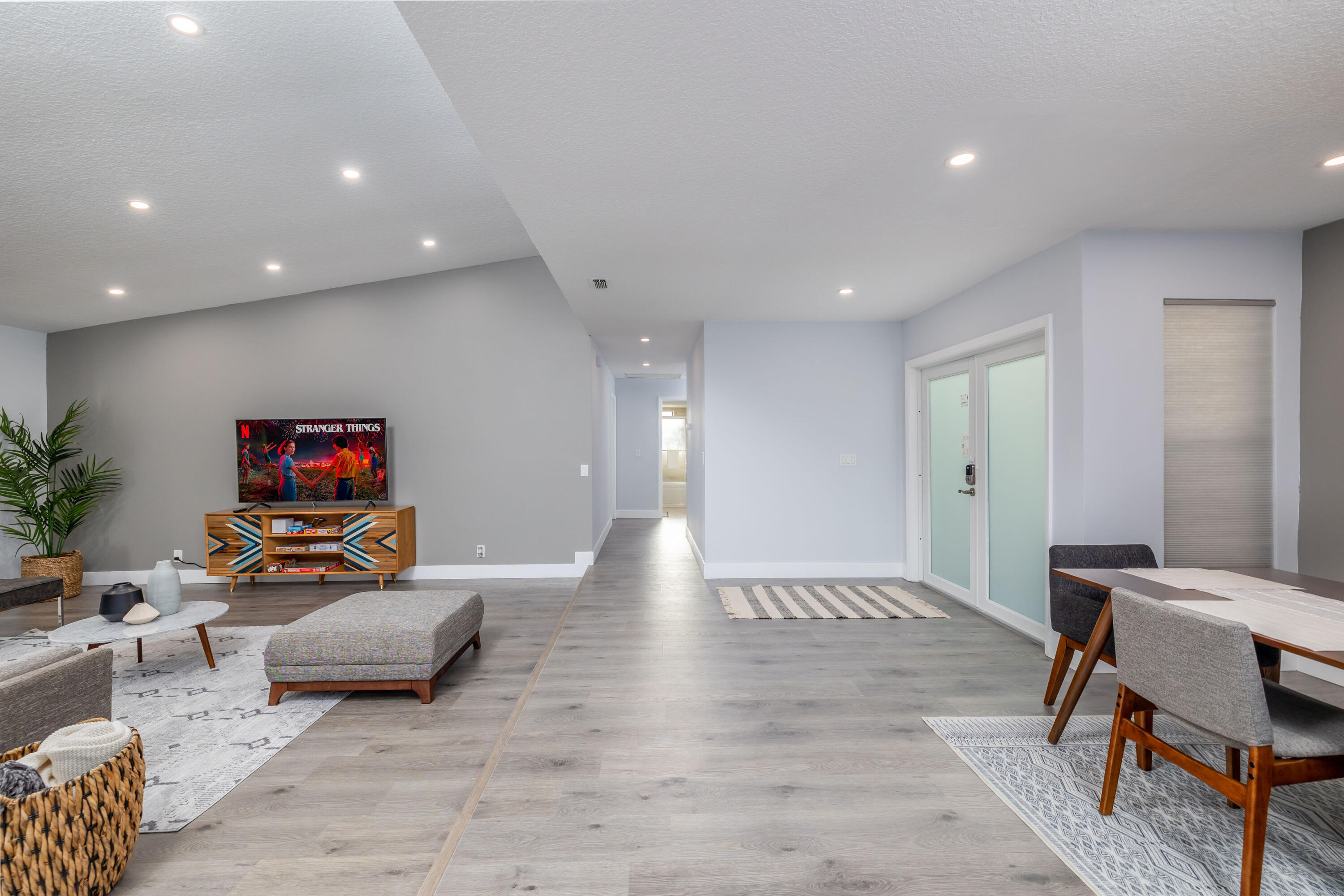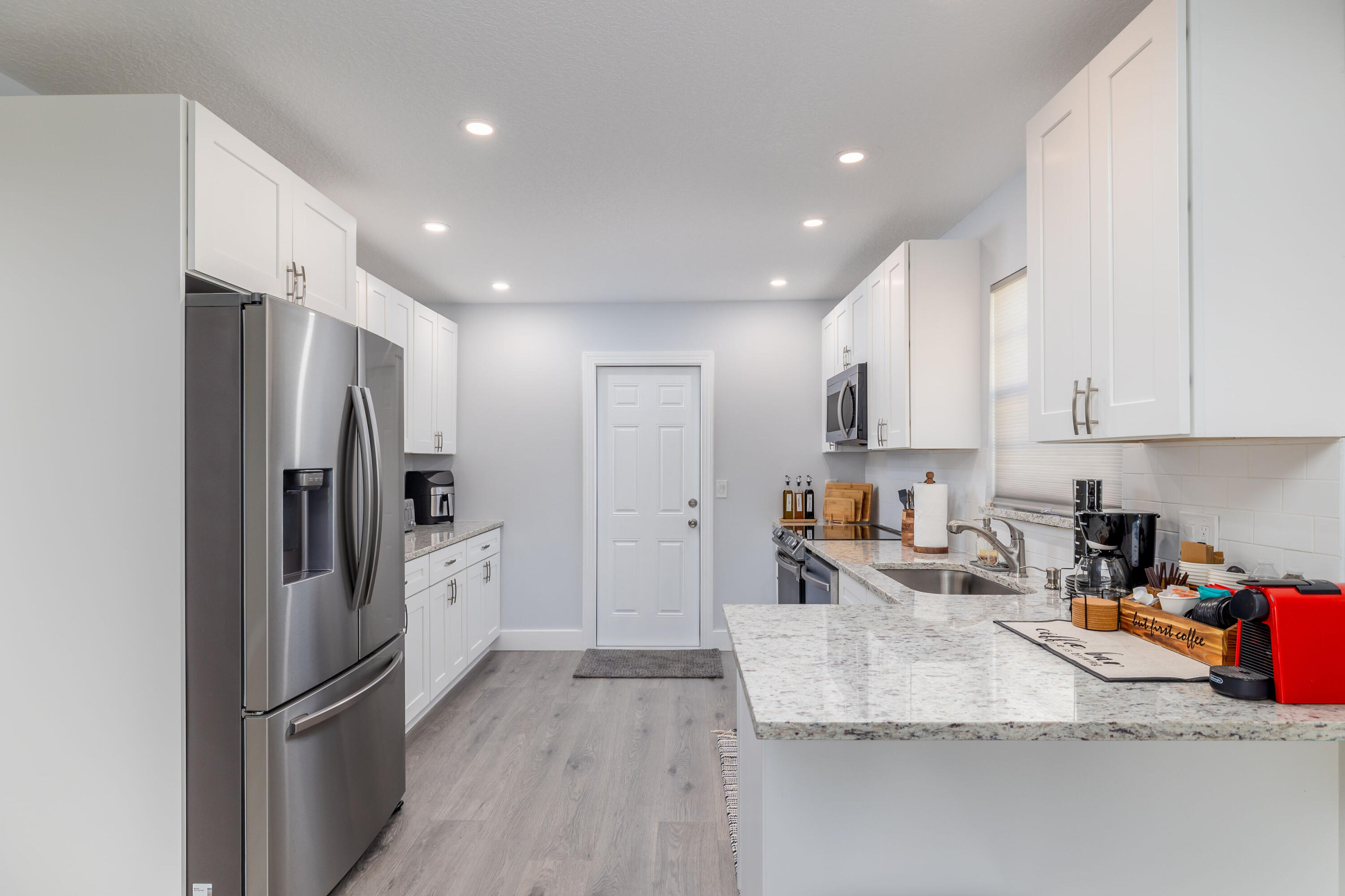 Welcome to Wellington’s epitome of elegance and comfort! This meticulously renovated 3/2 single-family home, situated on a spacious quarter-acre lot, exudes modern aesthetics and thoughtful design. With no HOA restrictions, indulge in a luxurious lifestyle. Step inside to discover an abundance of natural light accentuating the seamless blend of sophistication and warmth. The gourmet kitchen, a culinary masterpiece with quartz countertops, white shaker cabinets, and top-of-the-line stainless steel appliances, sets the stage for memorable family moments and stylish entertaining. The allure extends outdoors to an expansive yard, perfect for your personal touch and envisioning a tranquil pool oasis. A decorative driveway welcomes residents and guests, creating an aesthetic appeal.