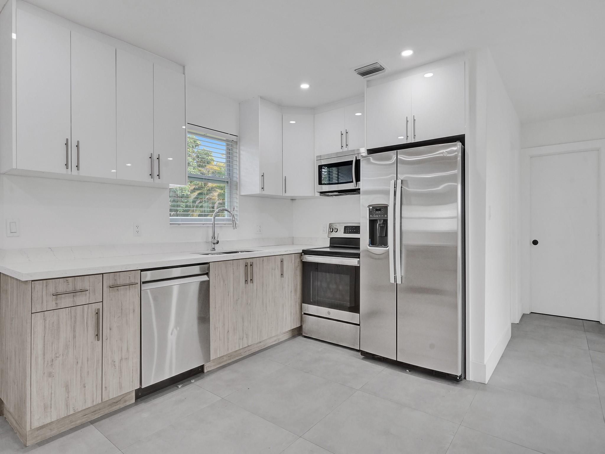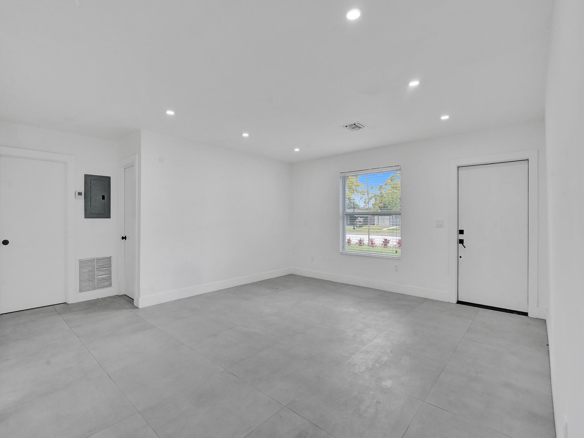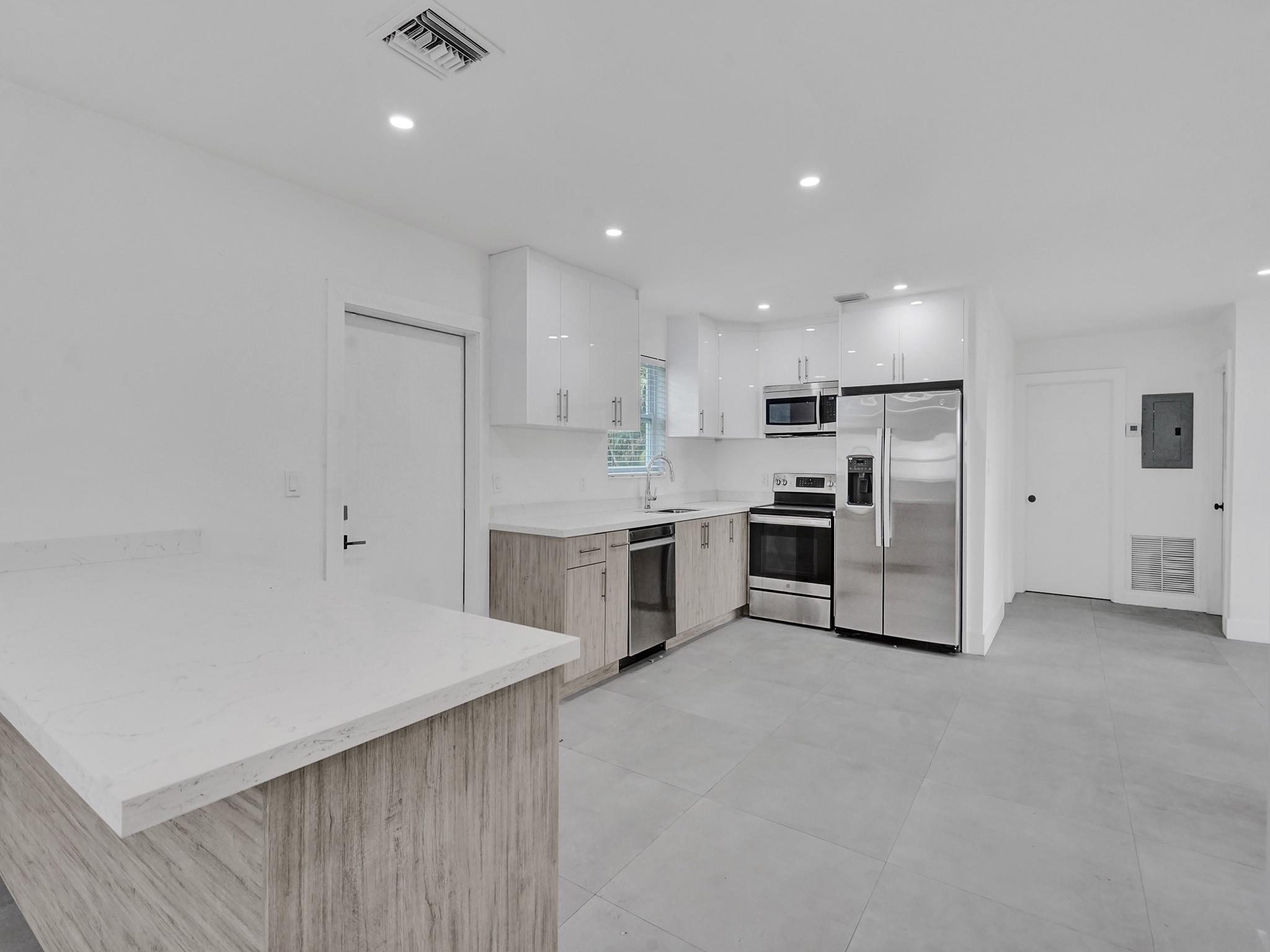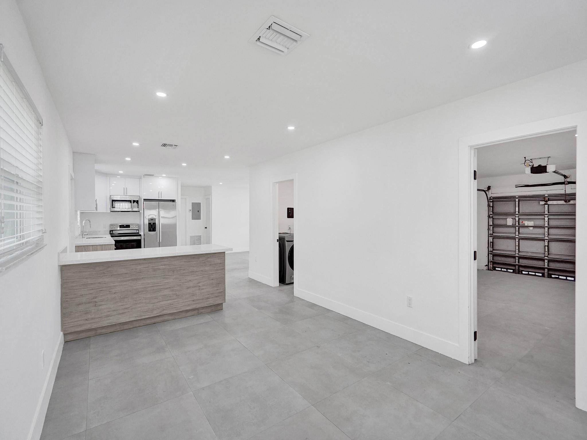 Single-family home 2 bedrooms 2 Bathrooms 2 Car garage (Converted to a room) Drivway and Large Fenced backyard with deck on the water. Completely renovated and upgraded (Modern Concept): New kitchen with quartz countertops New Backsplash, New stainless-steel appliances, laundry/Storage room with Full-size washer and Dryer, New Tile floors throughout, 50×50 porcelain, All new bathrooms, Frameless shower glasses Freshly painted inside and outside, New water heater, New Central AC, Tile floors in the Garage. Landscaping and more… Great location near, Shopping, Dining, and Transportation. NO HOA.