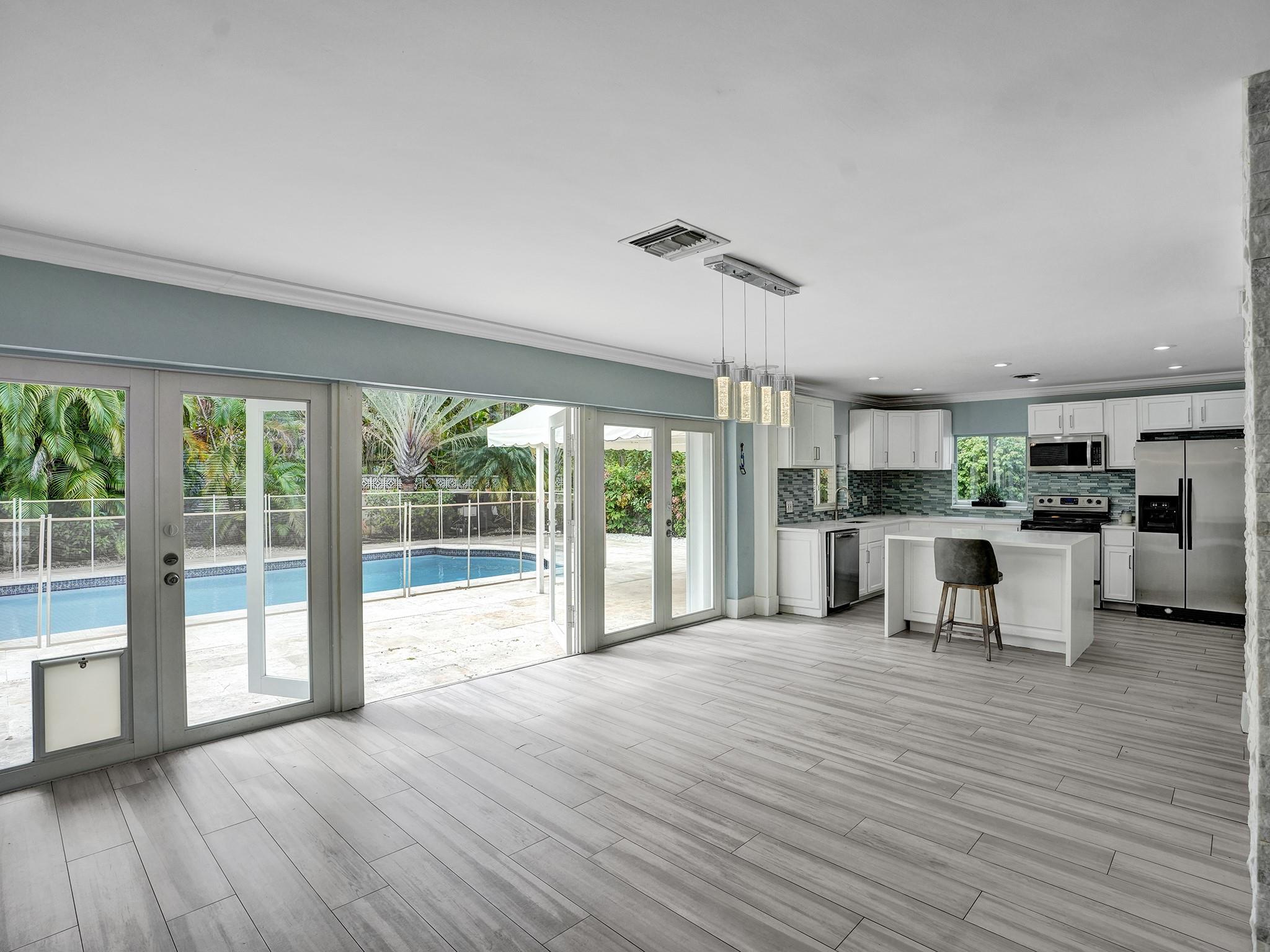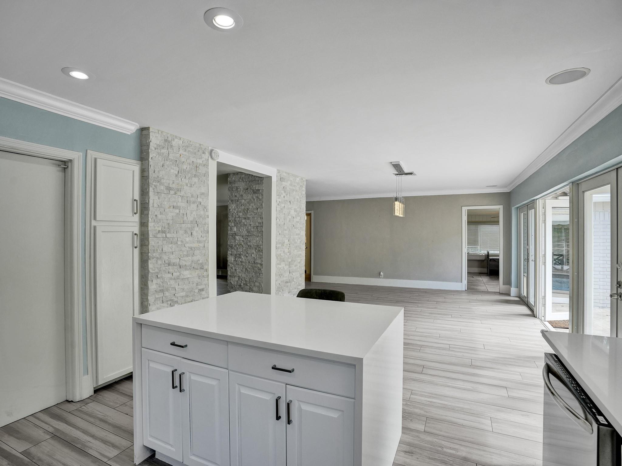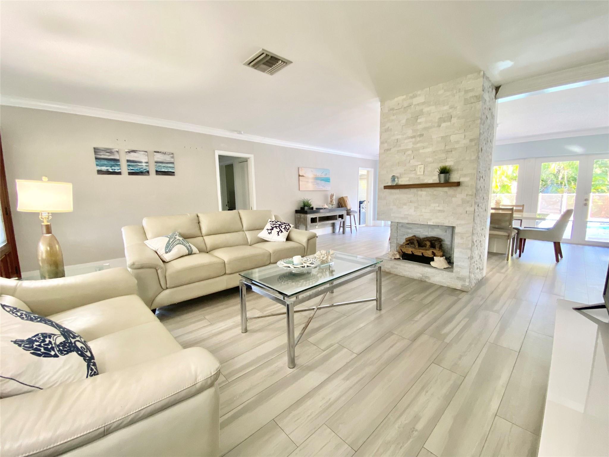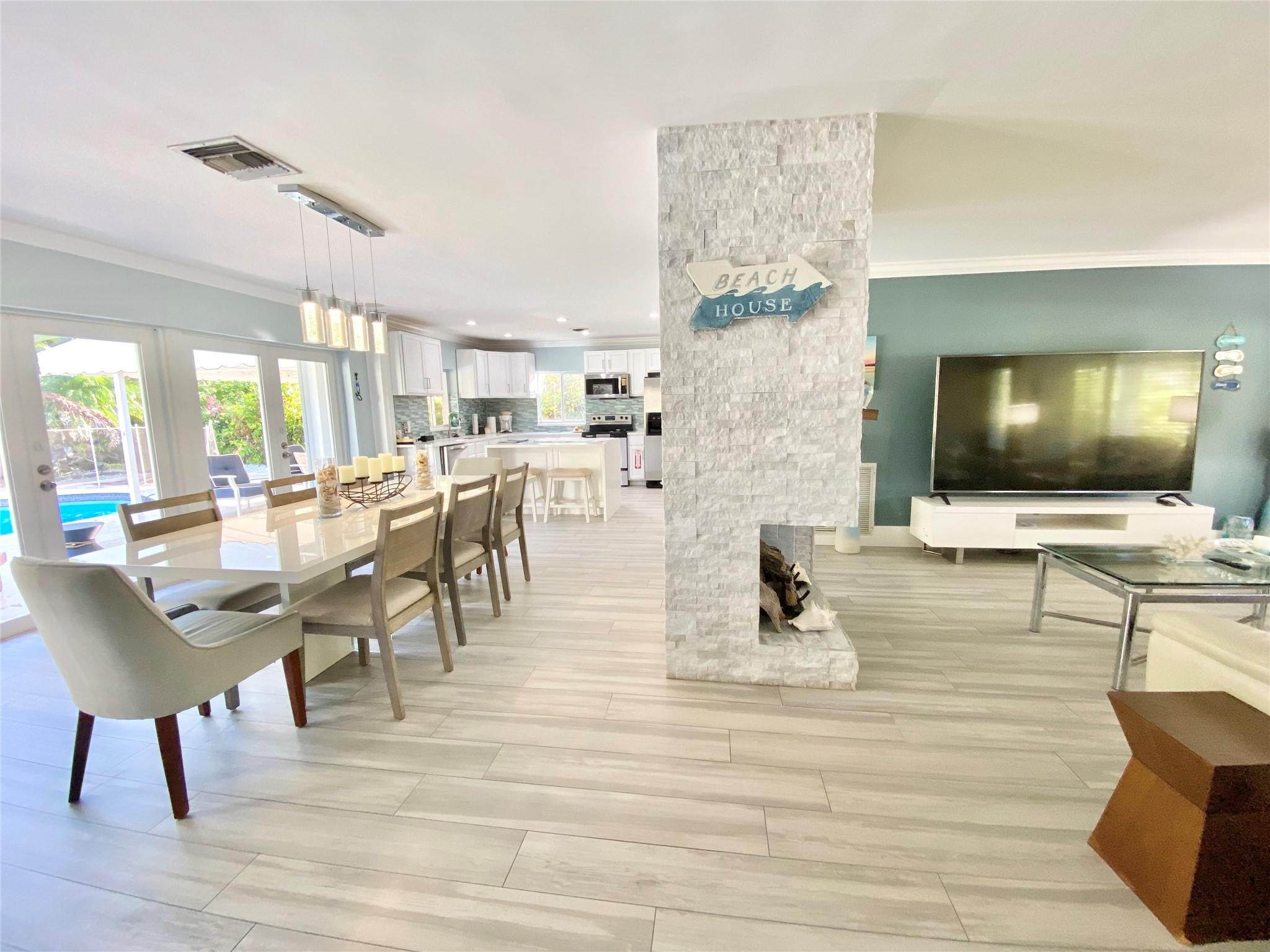 Imagine living in a serene retreat located in a quiet community nestled between the beach and the intracoastal waterway on the northern edge of state park with nothing but preserve beyond your backyard. This mid-century ranch has been updated with wood-like porcelain tile floors, recessed lighting, a light bright white kitchen with elegant stone and tile details, updated guest bathroom with double vanity and spacious living and dining areas surrounding the hearth of the home, a stone covered gas fireplace. This 2 bedroom, 2.5 bathroom home includes plans for expansion to convert to a 4 bedroom, 3 bathroom with over 3000 SF. The backyard just might be the star of the show with a covered patio, newly refinished heated pool and fire pit area. This is an opportunity to create your own enclave.