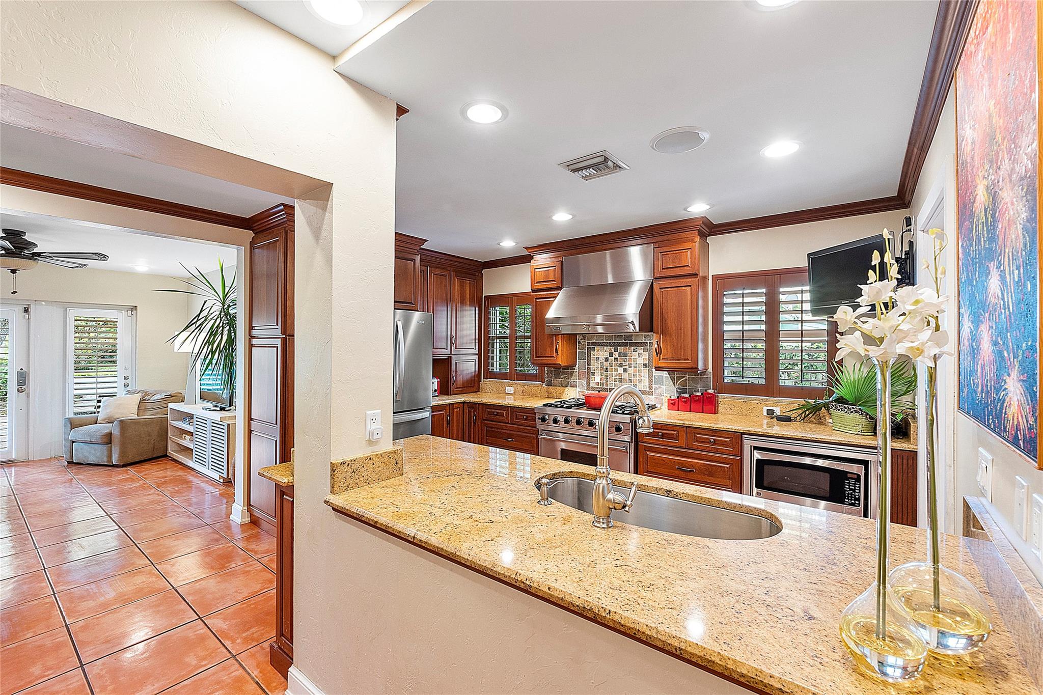 Nestled in the heart of River Oaks, one of the most sought-after neighborhoods, NO HOA , East of I-95. This home offers a rare oversized fenced-in backyard! Just minutes from downtown, Las Olas, and Ft Lauderdale airport, and a few miles to the beach, this location offers the best of both worlds: tranquility and proximity to urban amenities. The 1-story, 4 bed/3 bath home was renovated with care in 2008 by meticulous owners, it exudes warmth and character at every corner. Imagine mornings in the gourmet kitchen with a Viking gas stove and stainless-steel appliances, or evenings at the coffee/wine bar, perfect for intimate gatherings, outdoor entertaining or the possibility of a pool oasis. Also features an inside laundry room & a metal roof.